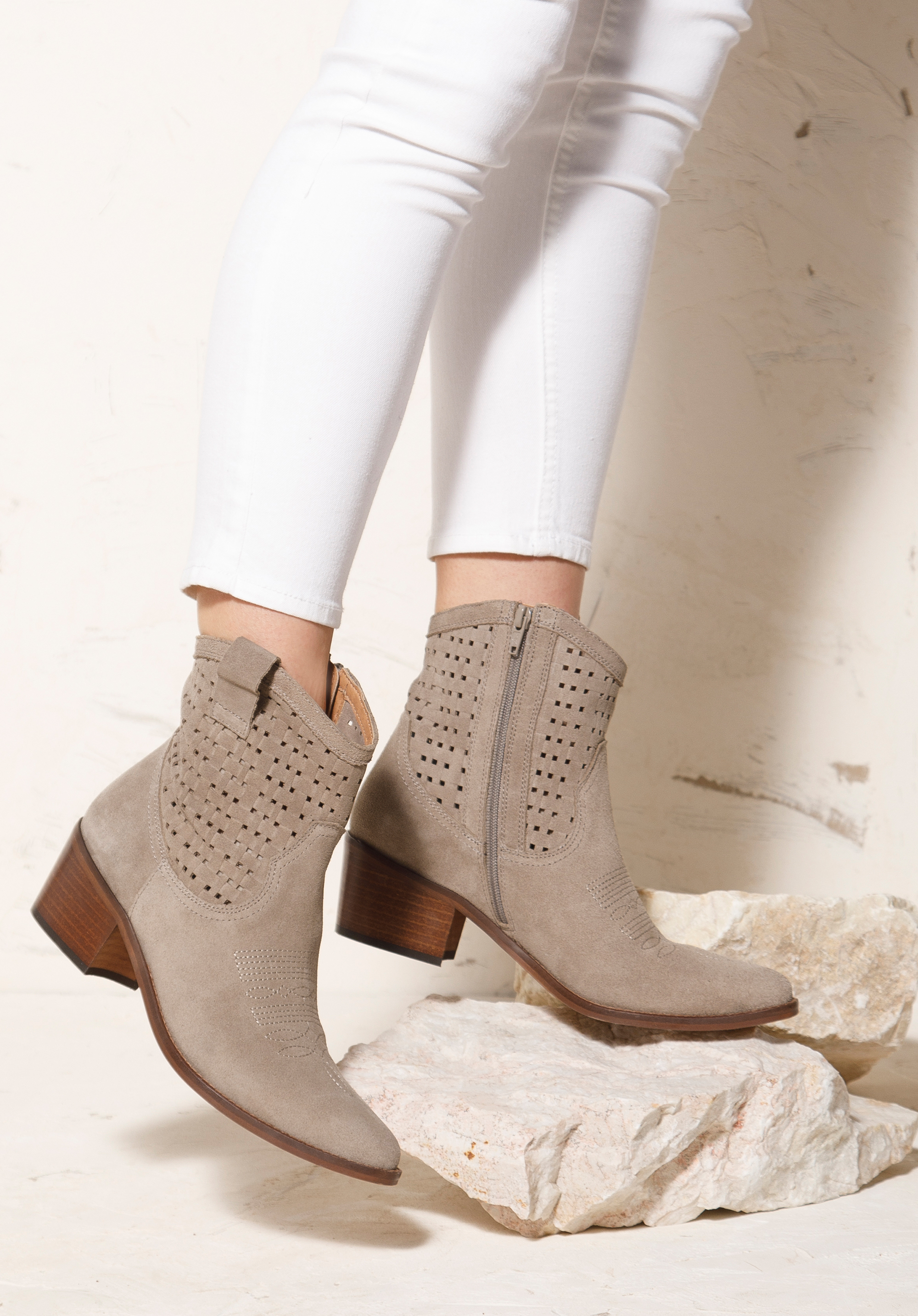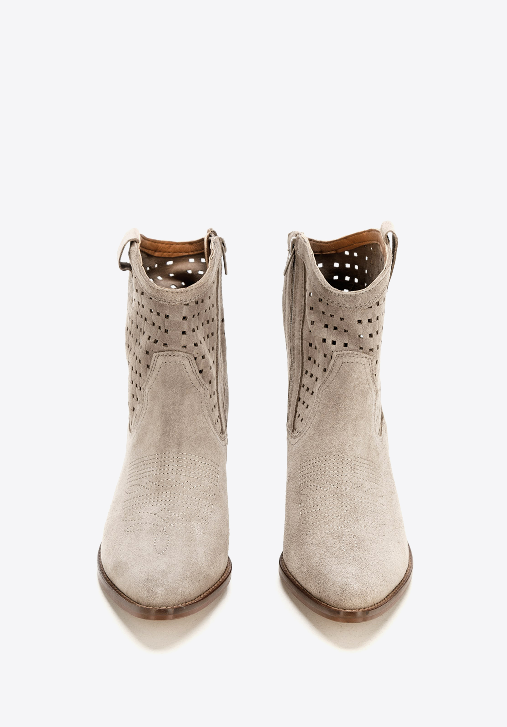 Ажурні замшеві ковбойські чоботи з вишивкою Колір: бежевий