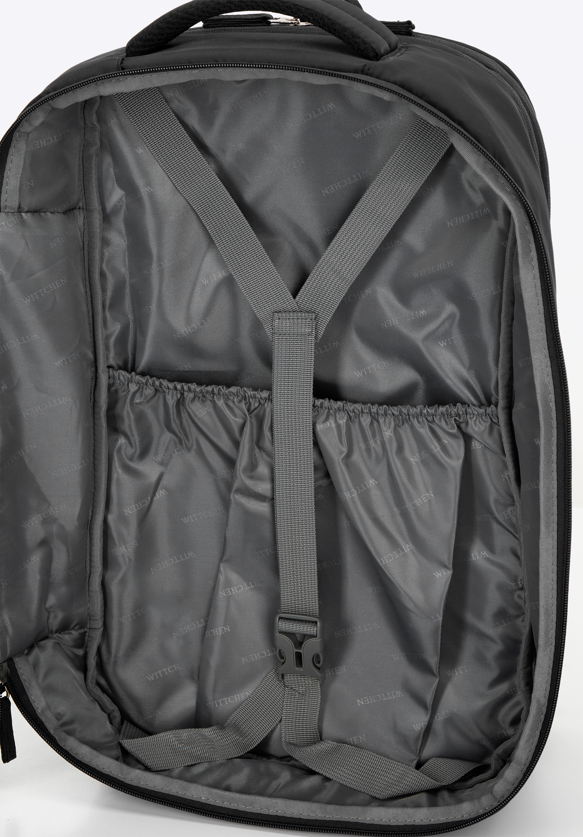 - Основне відділення: Відділення відкривається у стилі валізи, має три еластичні кишені для менших речей. Фіксуючі ремені забезпечують організованість вмісту та легкий доступ.