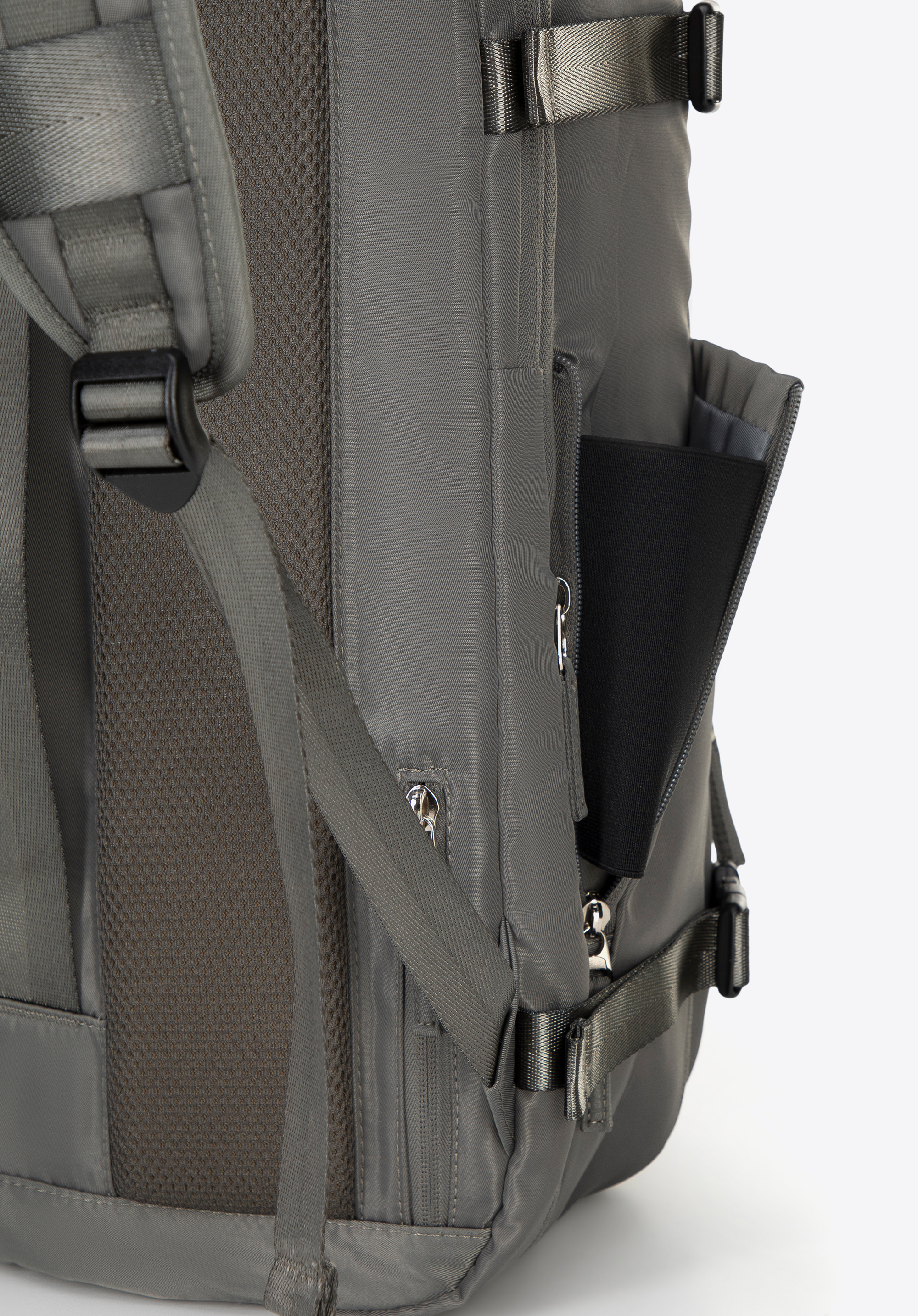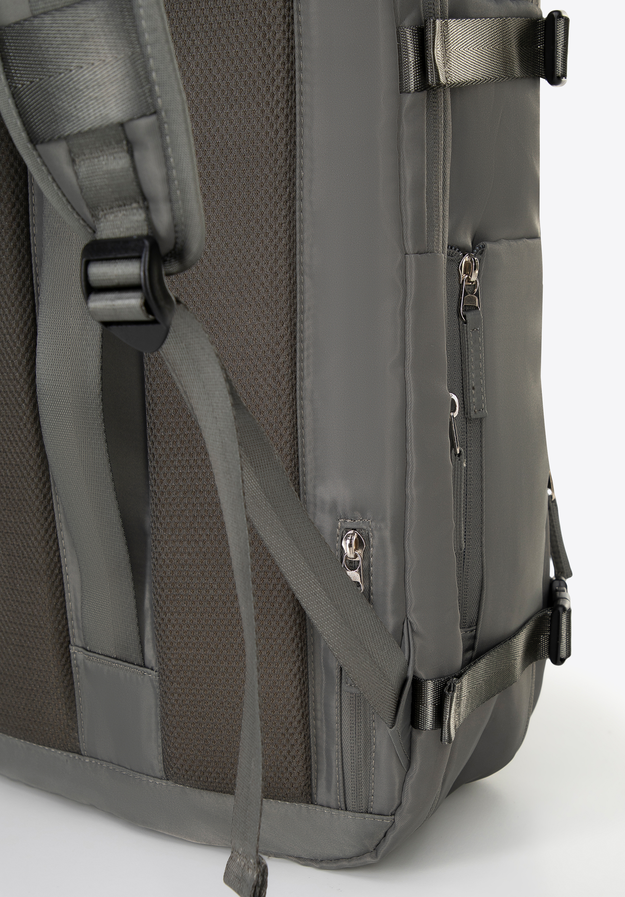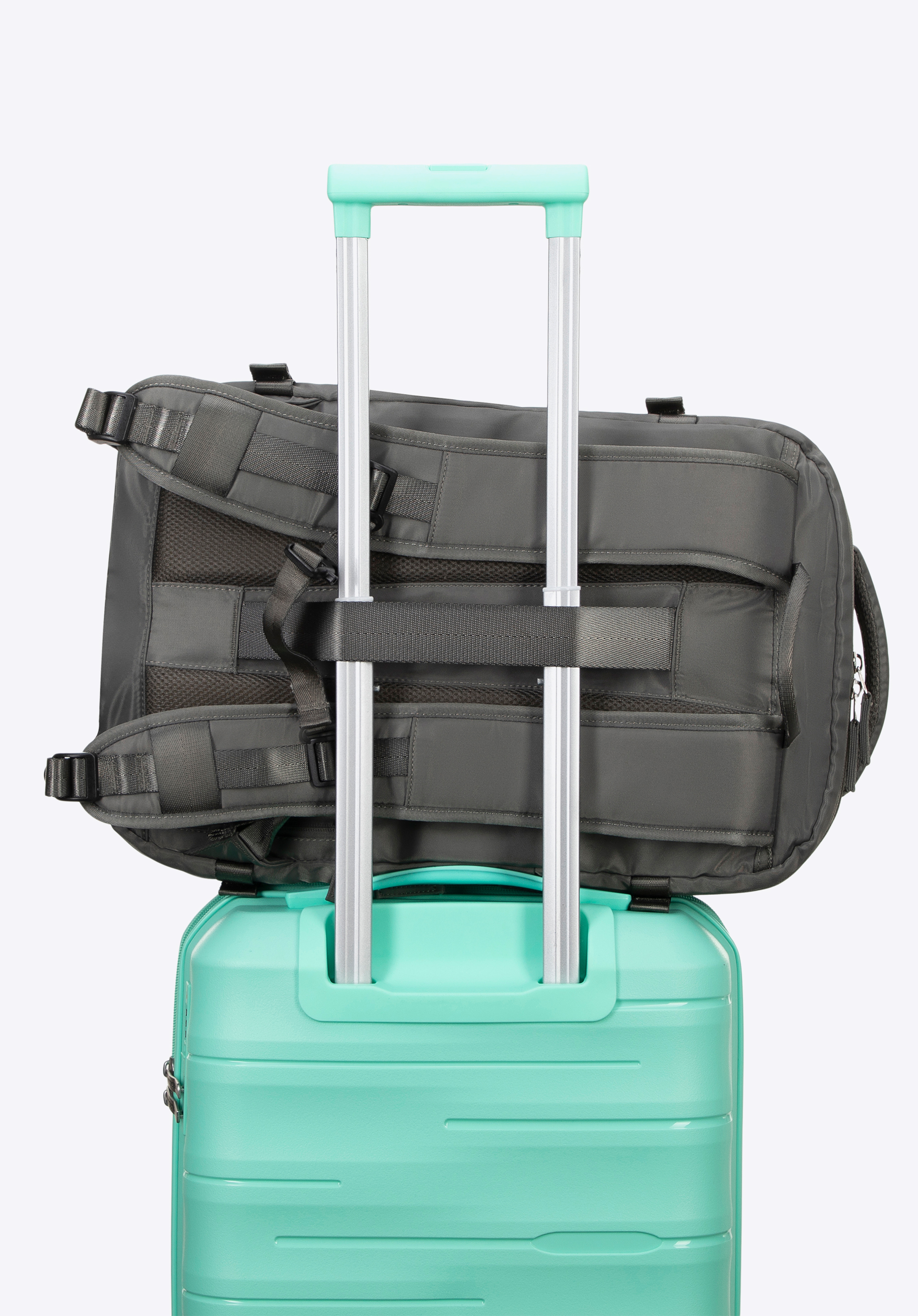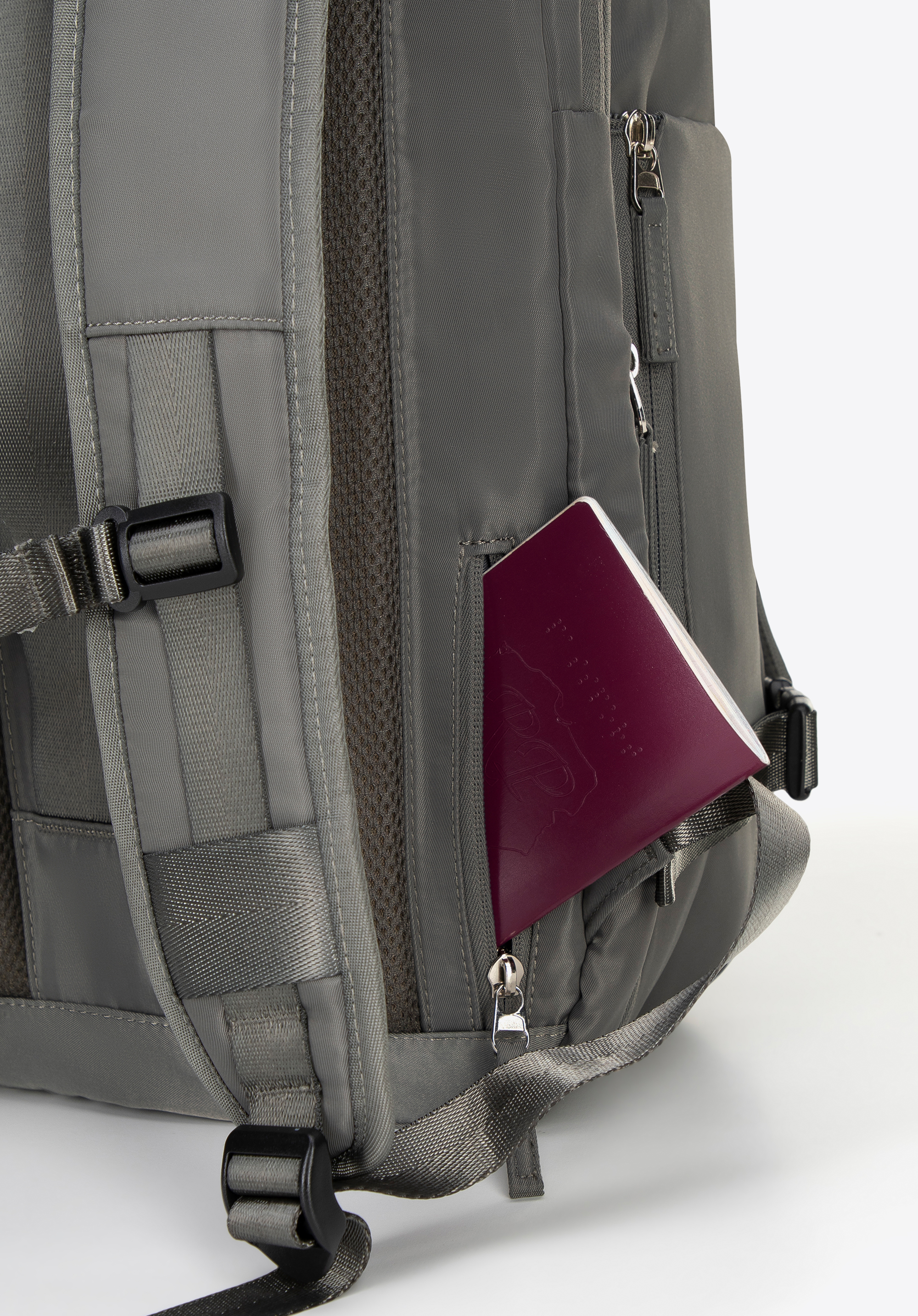 - Вертикальний ремінь на спині та кишеня на блискавці: полегшує кріплення рюкзака до великого багажу. Маленька кишенька для дрібниць (ключі, картки).