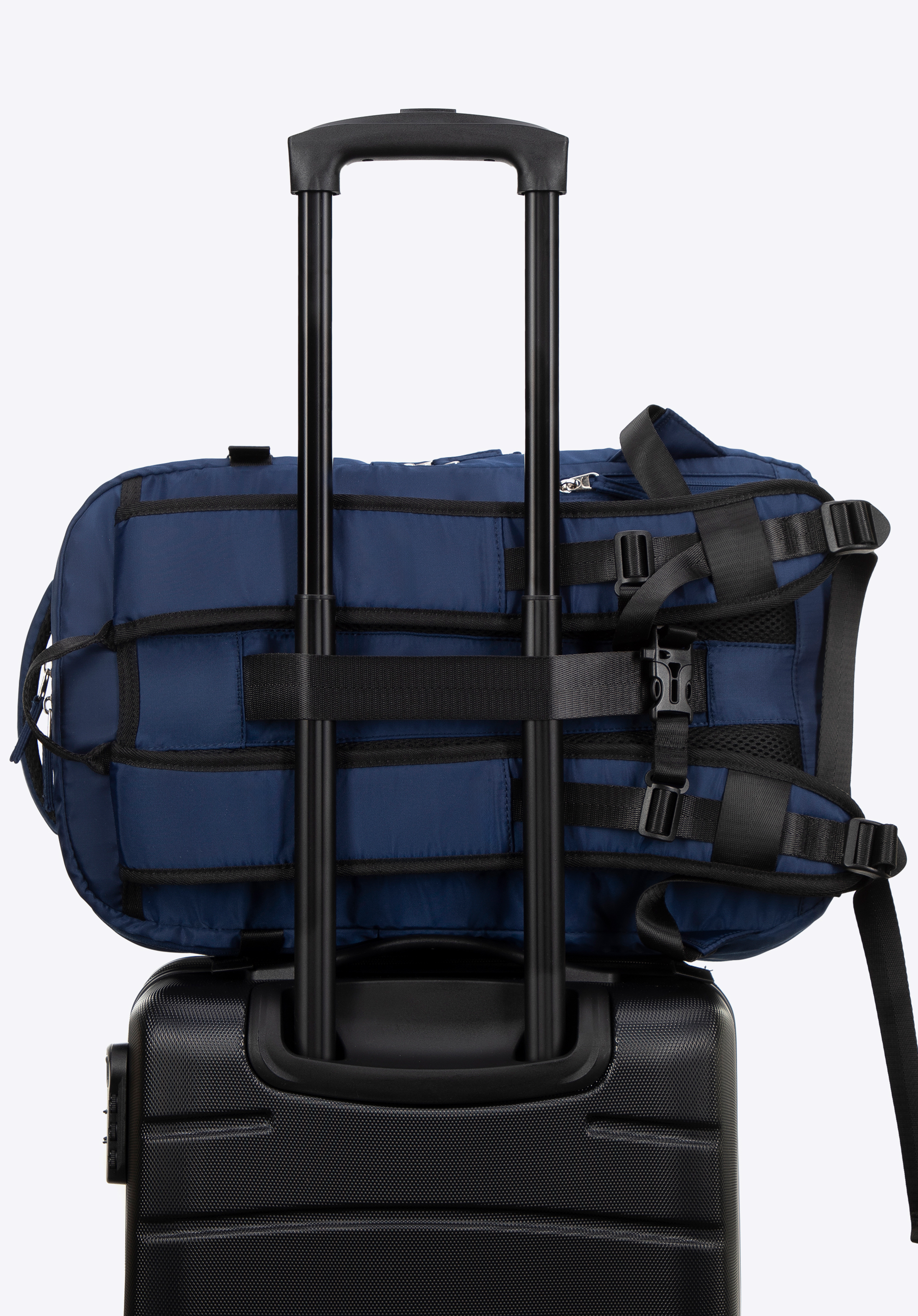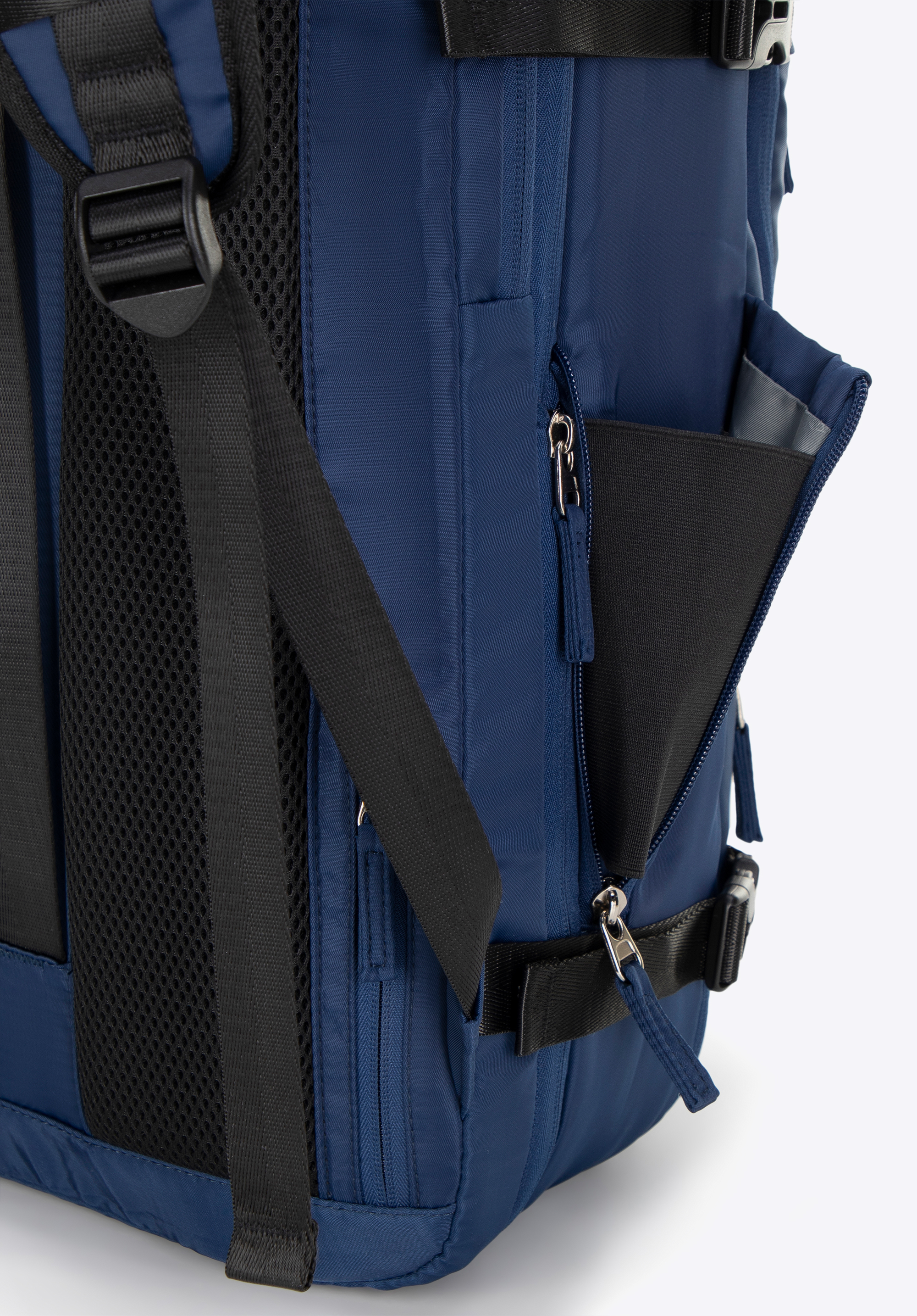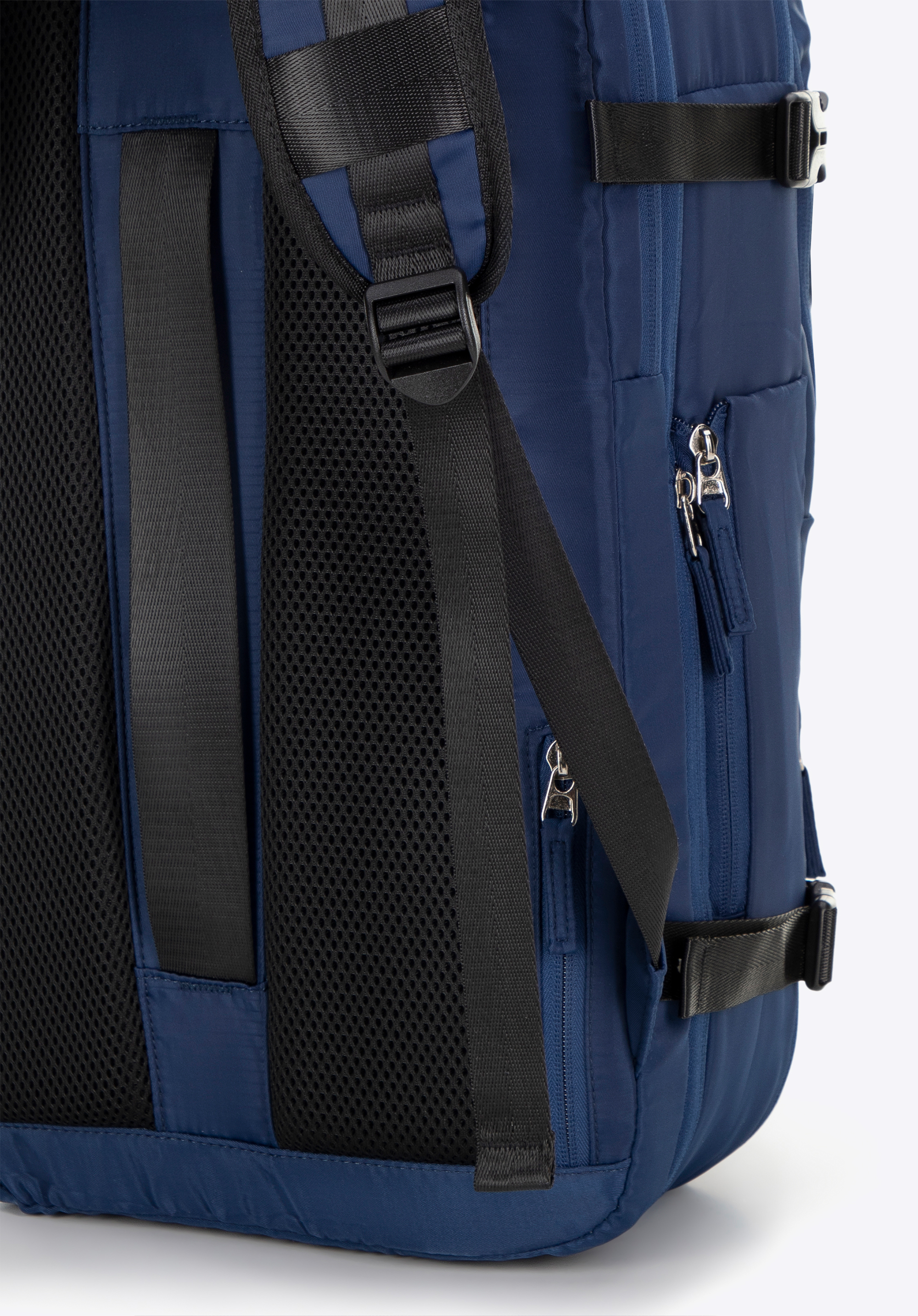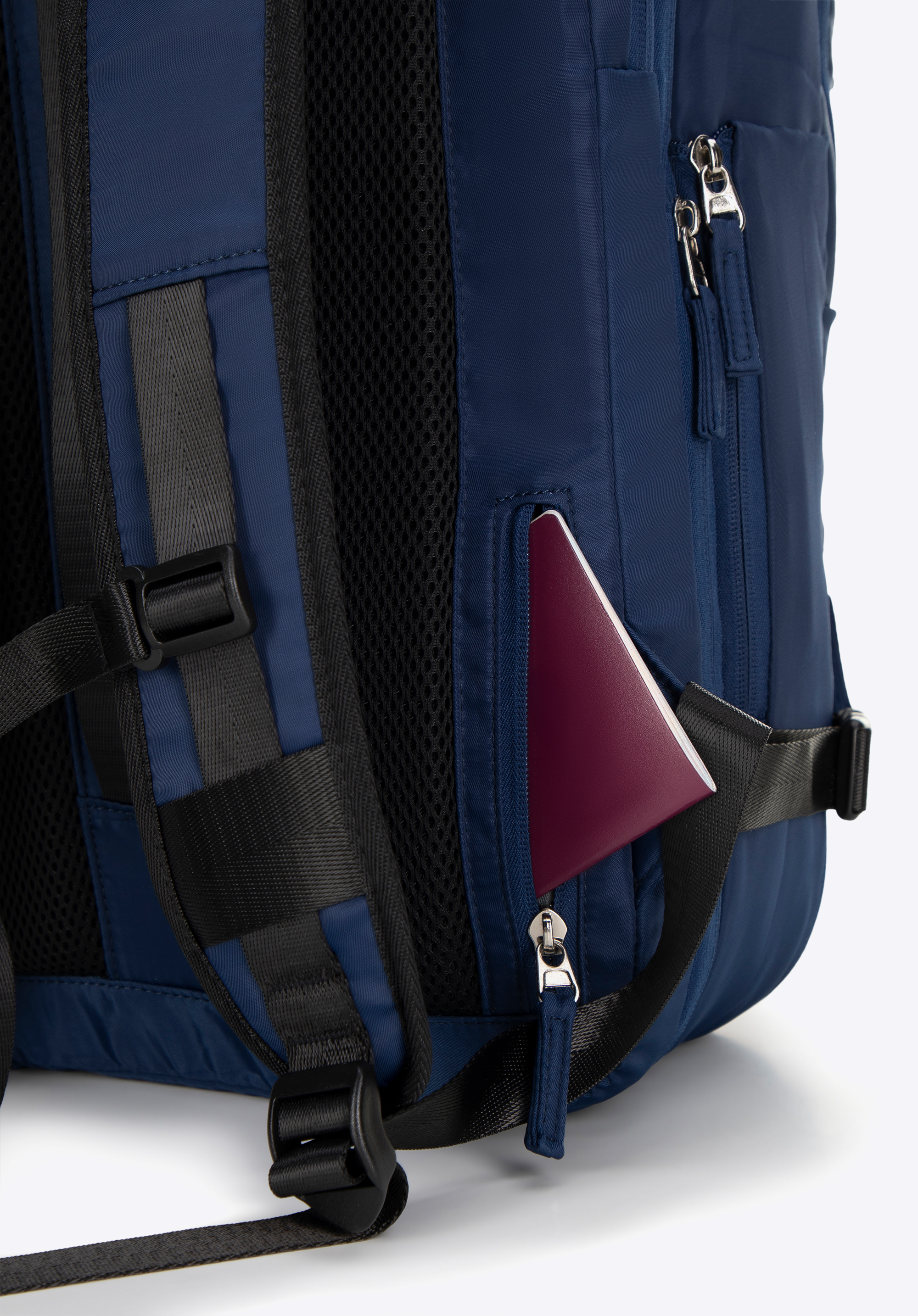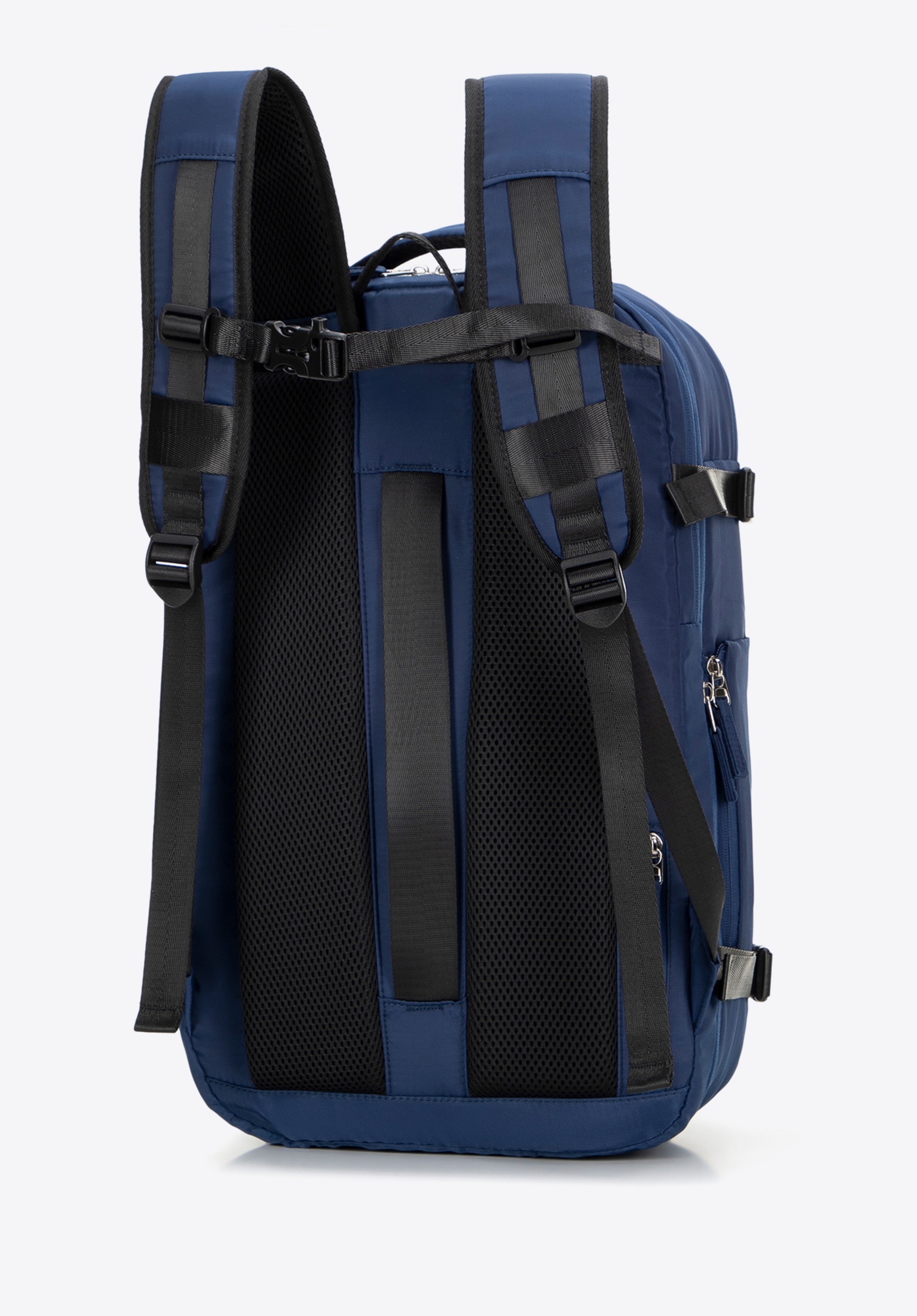 - Вертикальний ремінь на спині та кишеня на блискавці: полегшує кріплення рюкзака до великого багажу. Маленька кишенька для дрібниць (ключі, картки).