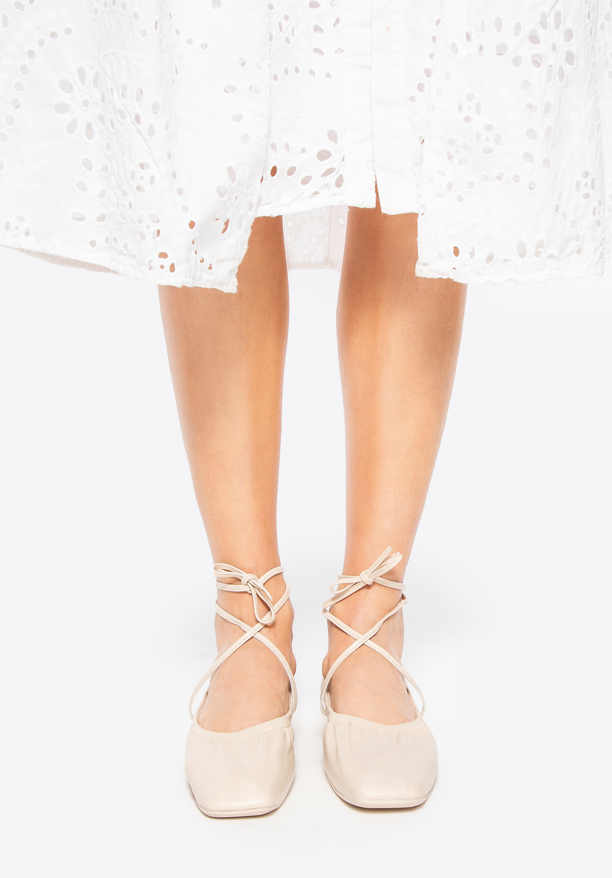 Балерини з натуральної шкіри із зав''язками бежеві