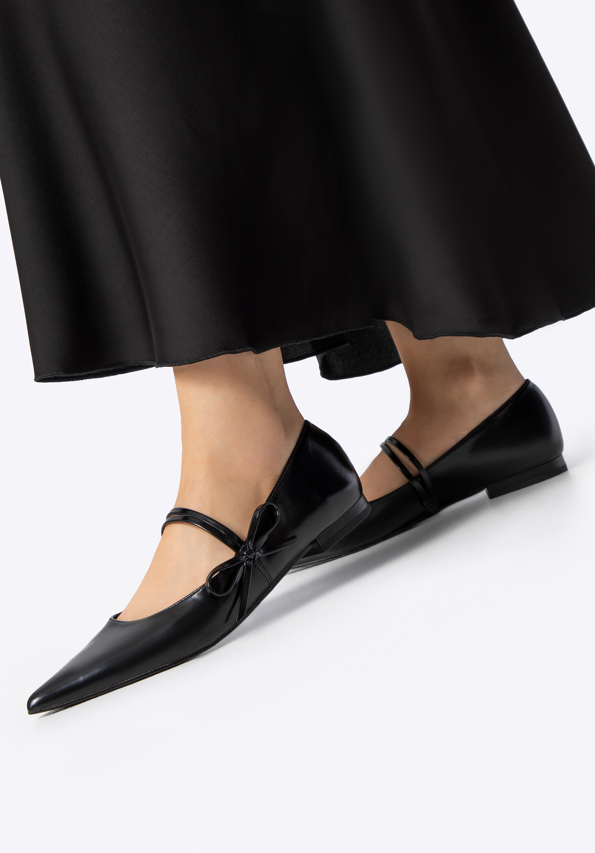 Оберіть комфорт, поєднаний з витонченою елегантністю. Ці жіночі балетки виготовлені з екошкіри, що забезпечує ніжний блиск та легкий догляд. Декоративні ремінці з бантом додають шарму та жіночності, а тонкий загострений носок візуально видовжує стопу. Плоский каблук забезпечує комфорт навіть під час тривалого носіння, а гнучка гумова підошва забезпечує стійкість та впевненість з кожним кроком.