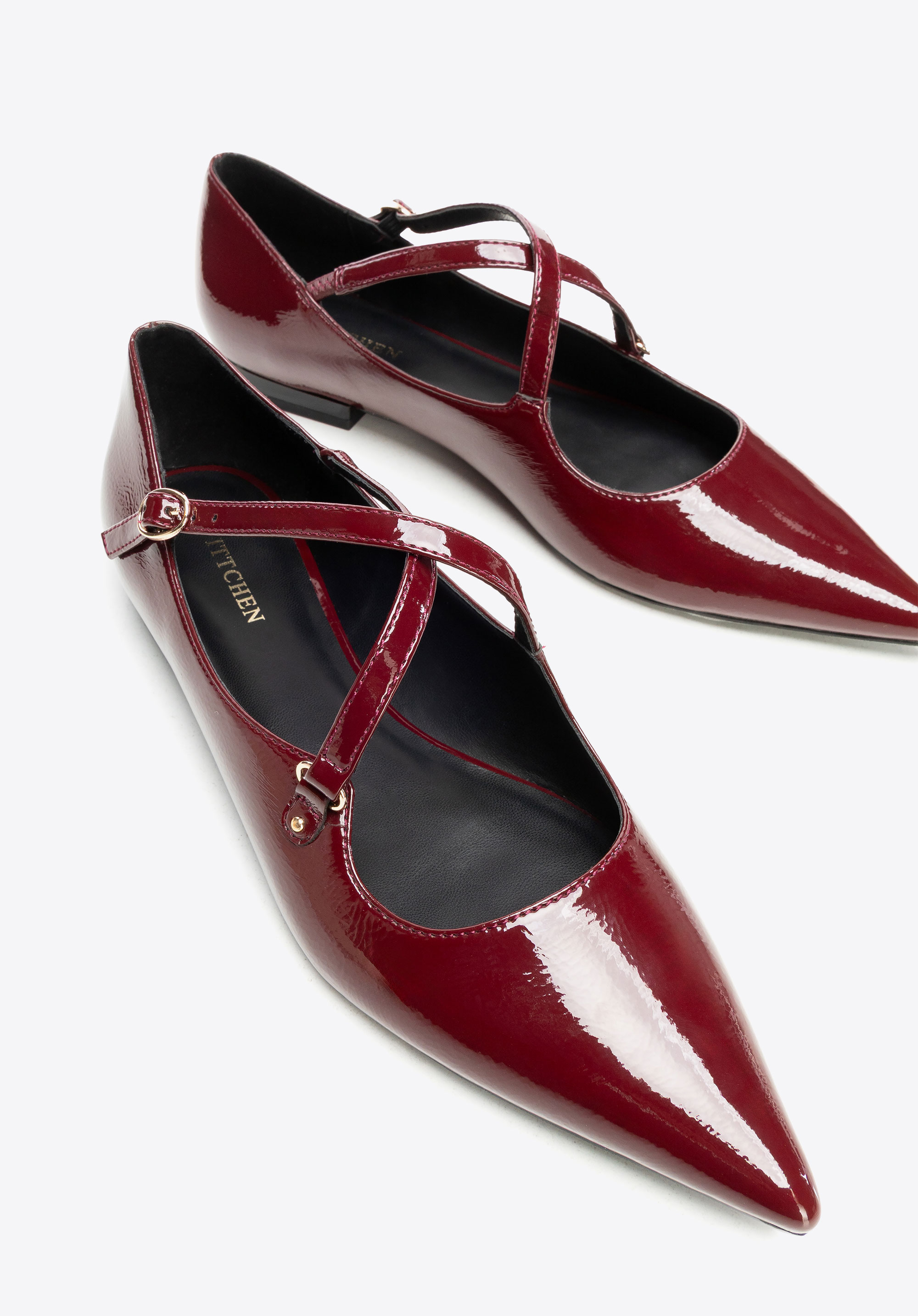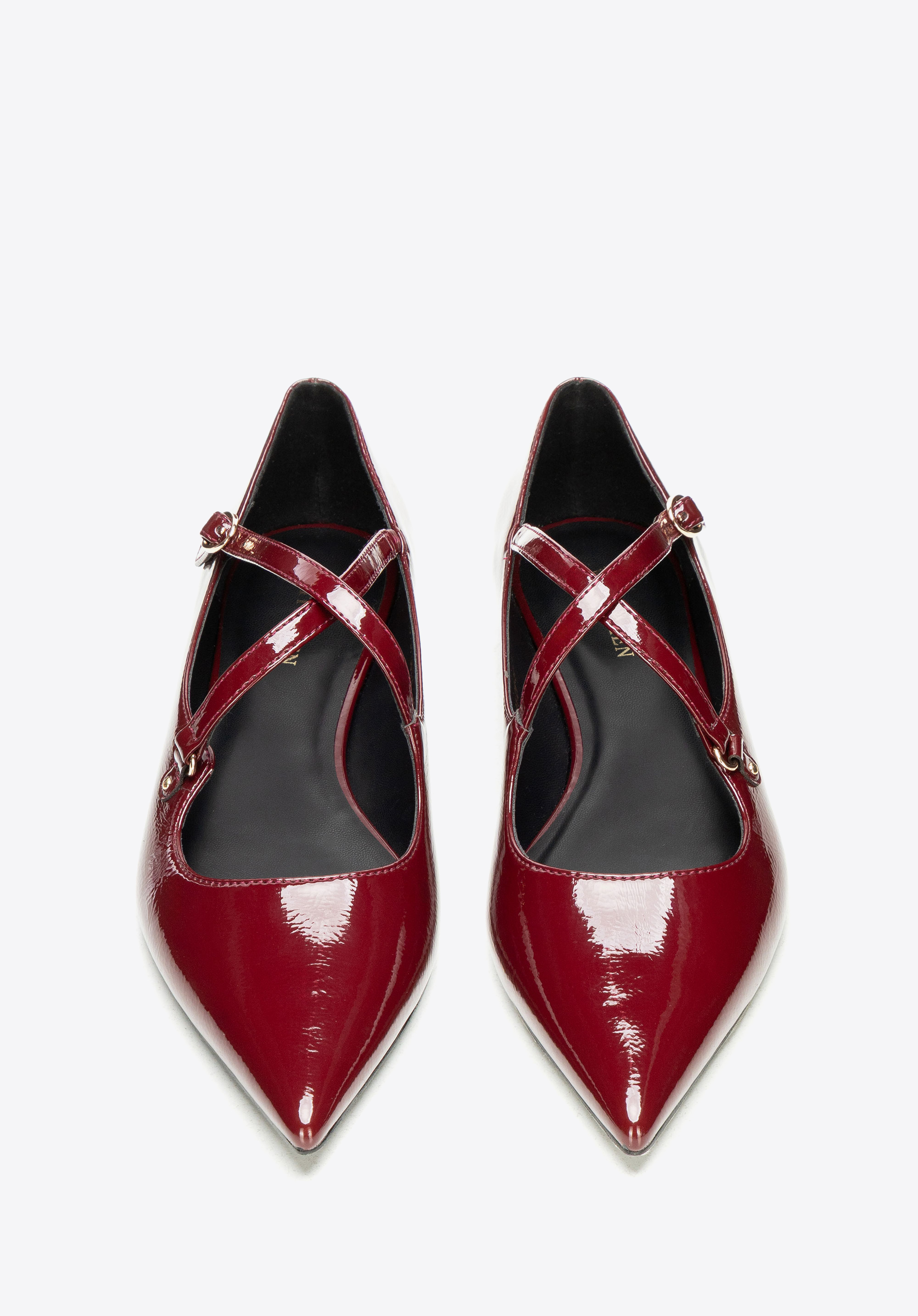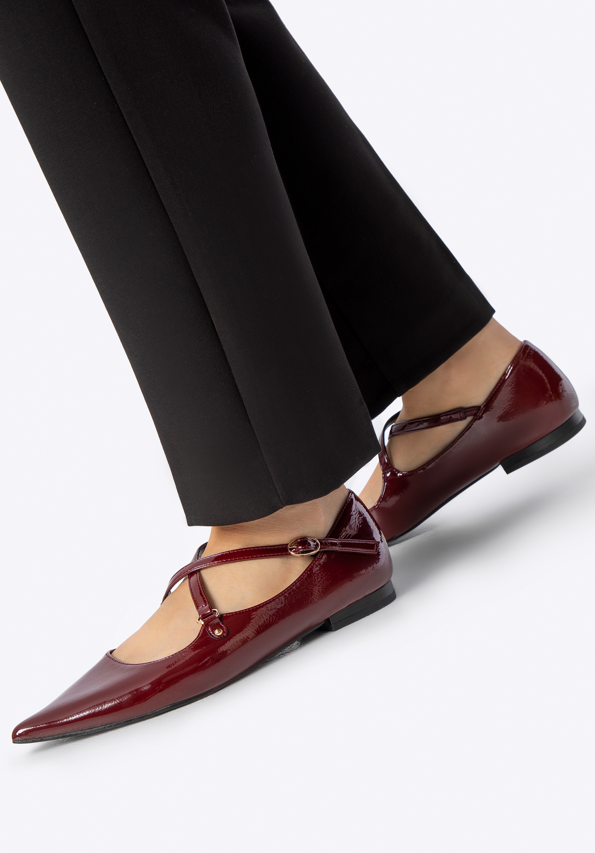 Ці елегантні балетки поєднують у собі класичний шарм із сучасним відтінком. Виготовлені з лакованої екошкіри, вони мають ніжний блиск, який чудово доповнить будь-який образ. Загострений носок візуально подовжує стопу й додає легкості, а ремінець із застібкою не лише надає взуттю стабільності, але й виступає як стильний акцент. Плоский каблук гарантує комфорт на цілий день, роблячи цю модель чудовим вибором як для роботи, так і для зустрічей із друзями.