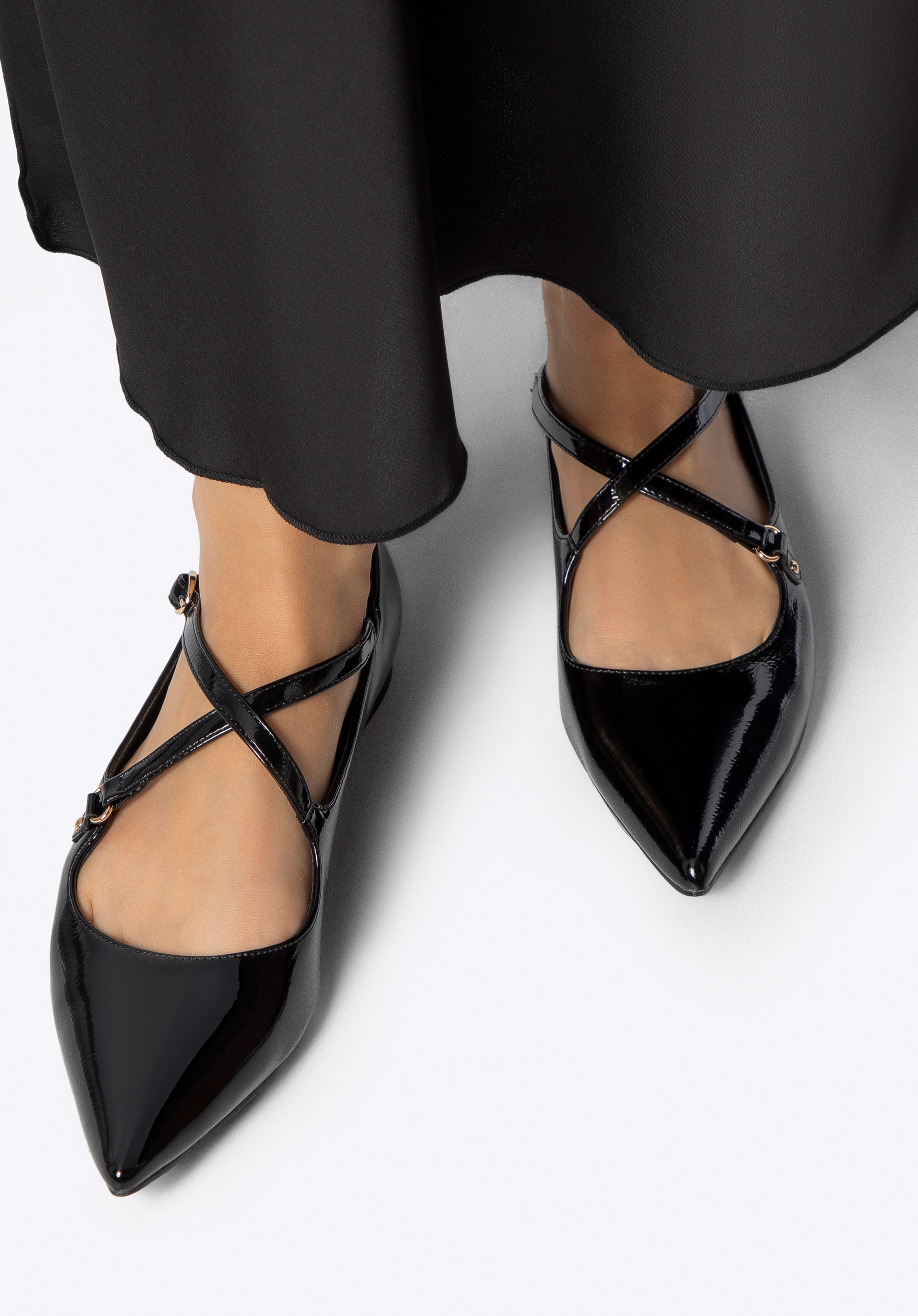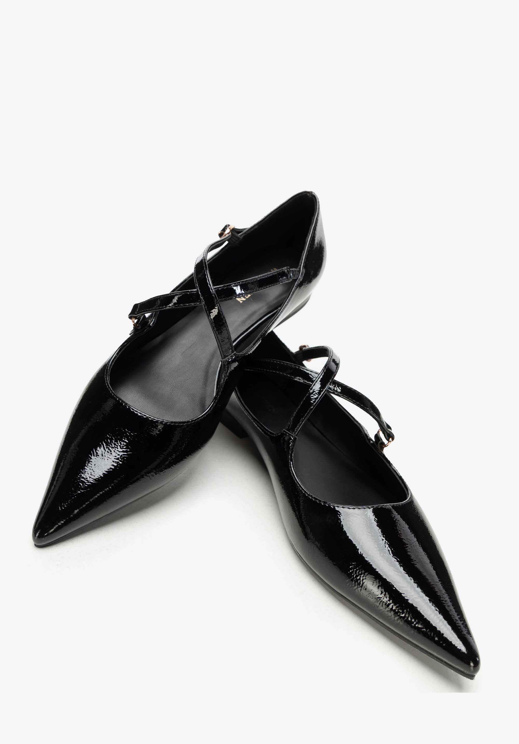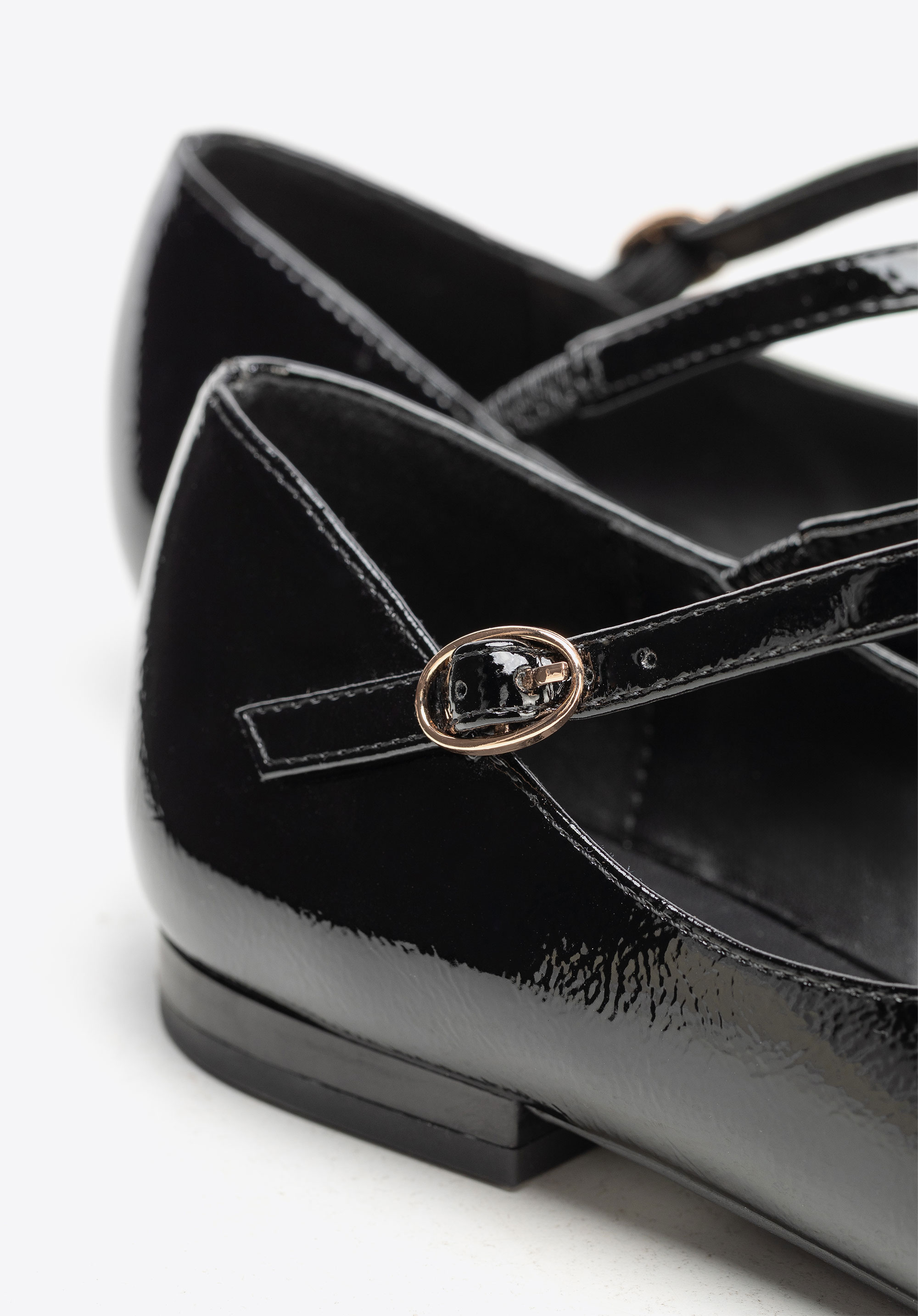 Ці елегантні балетки поєднують у собі класичний шарм із сучасним відтінком. Виготовлені з лакованої екошкіри, вони мають ніжний блиск, який чудово доповнить будь-який образ. Загострений носок візуально подовжує стопу й додає легкості, а ремінець із застібкою не лише надає взуттю стабільності, але й виступає як стильний акцент. Плоский каблук гарантує комфорт на цілий день, роблячи цю модель чудовим вибором як для роботи, так і для зустрічей із друзями.