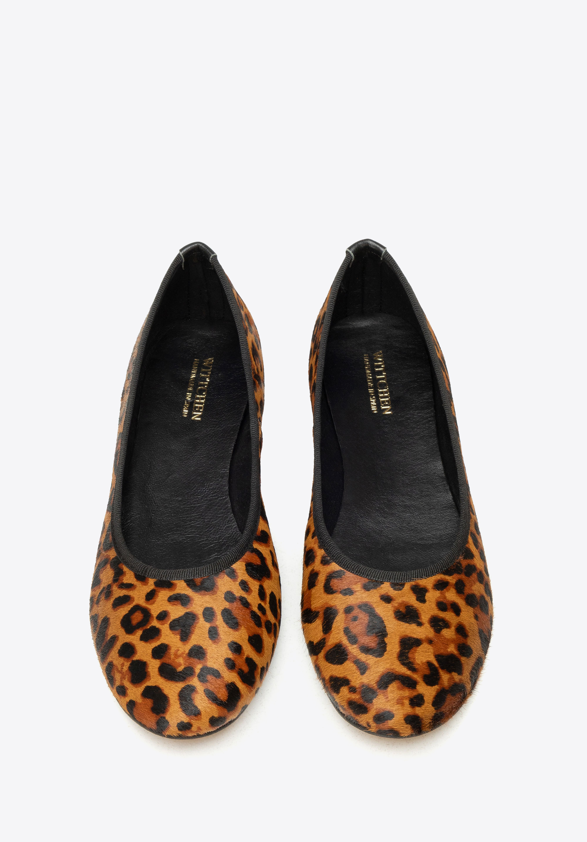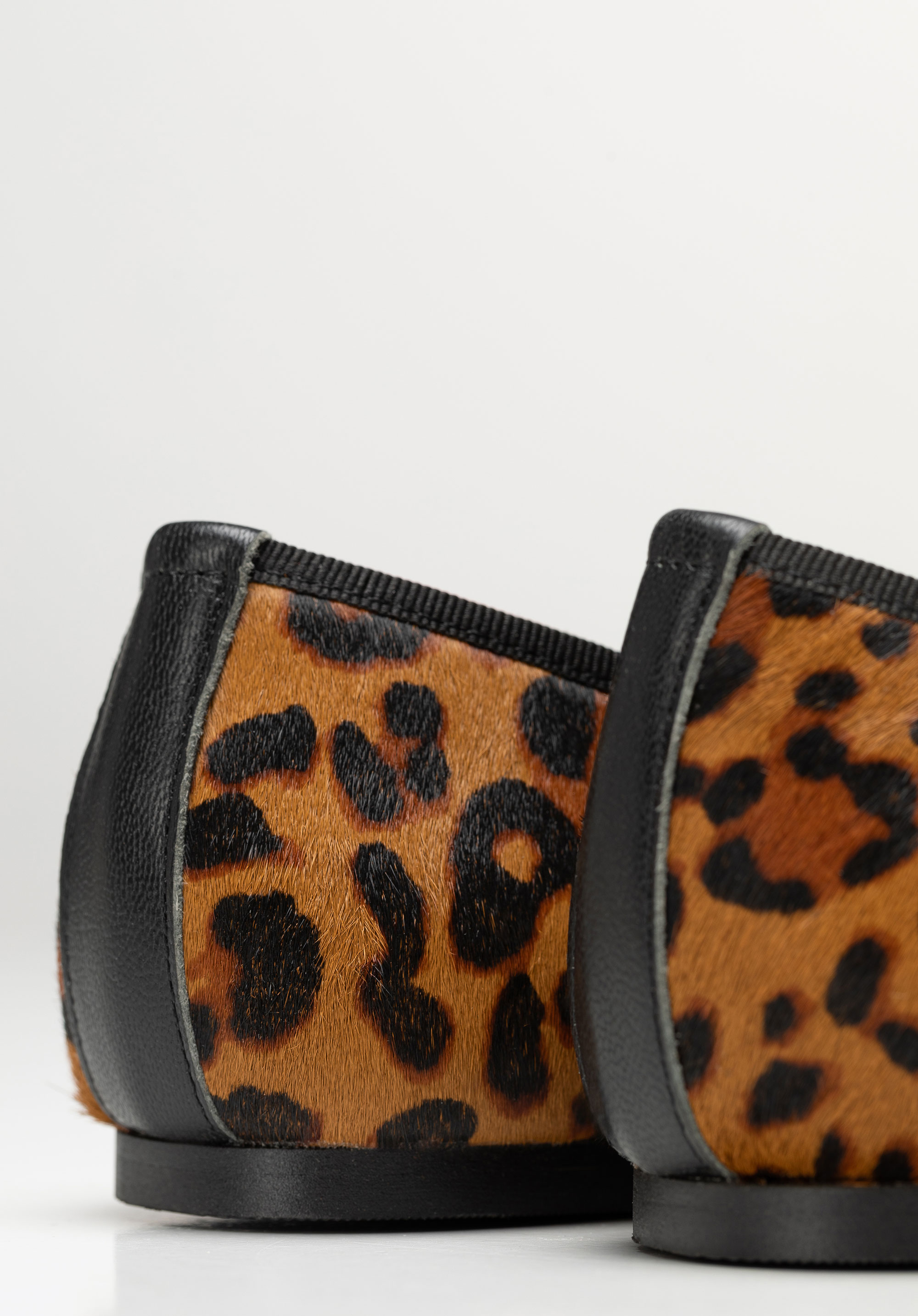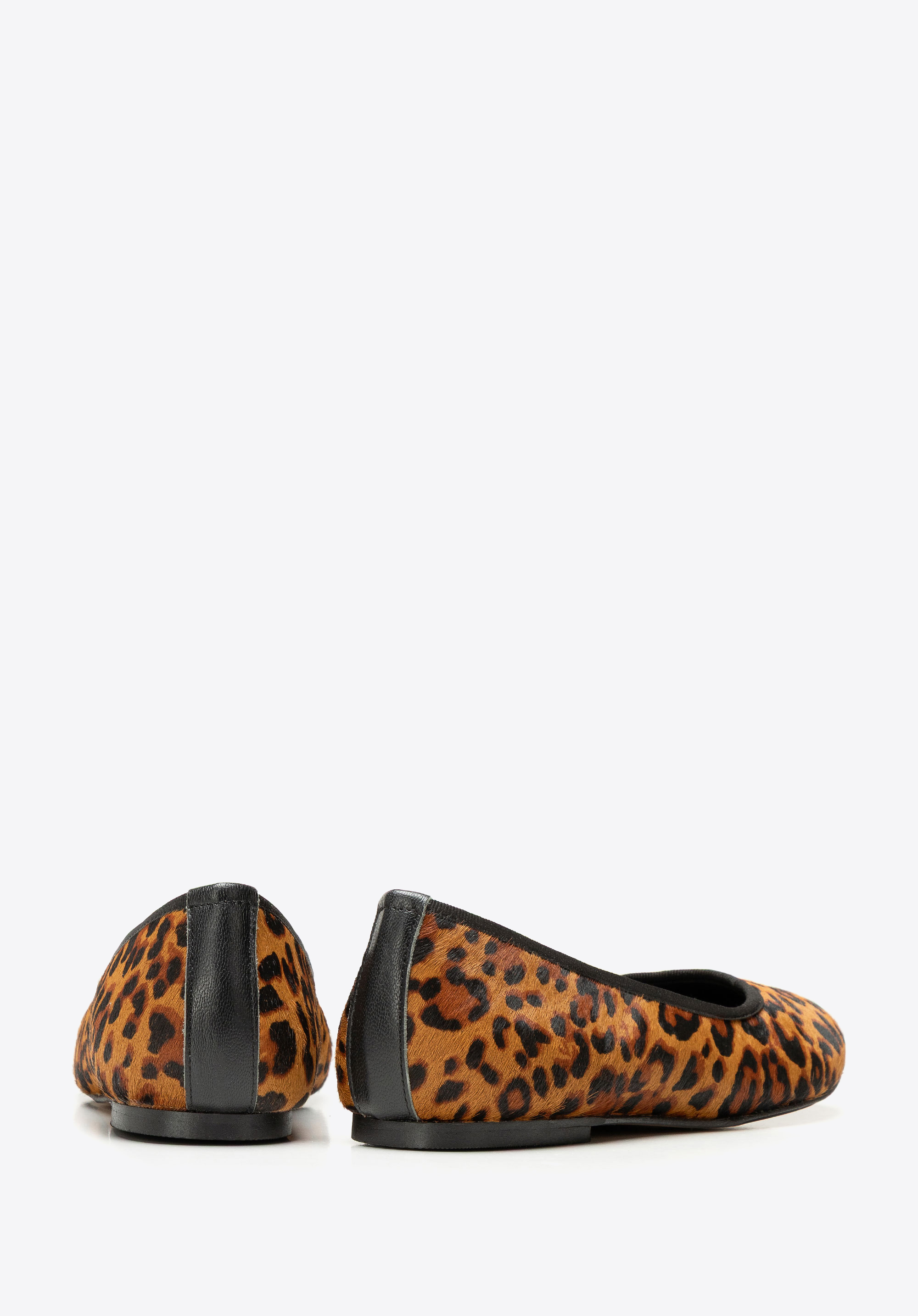 Балетки з натурального ворсу з анімалістичним візерунком коричнево-чорні
