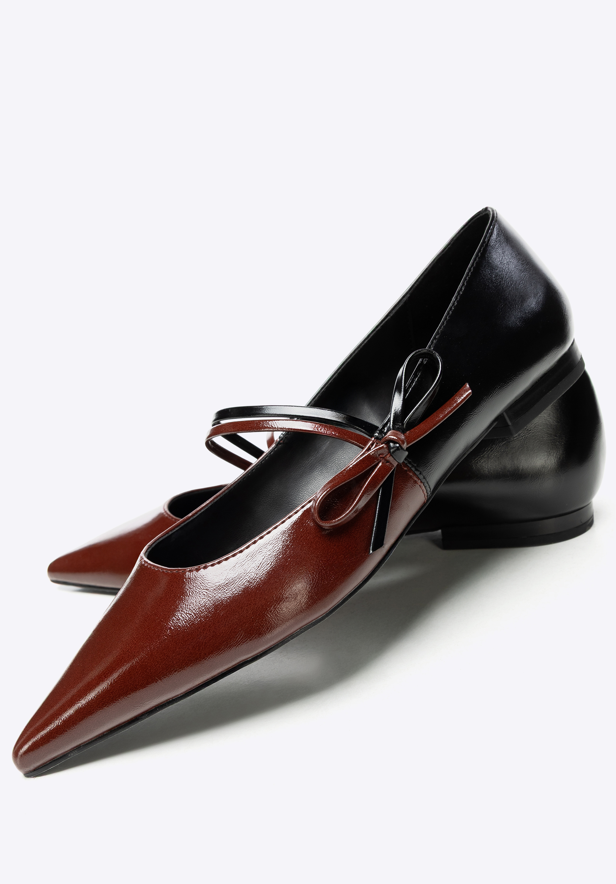 Оберіть комфорт, поєднаний з витонченою елегантністю. Ці жіночі балетки виготовлені з екошкіри, що забезпечує ніжний блиск та легкий догляд. Декоративні ремінці з бантом додають шарму та жіночності, а тонкий загострений носок візуально видовжує стопу. Плоский каблук забезпечує комфорт навіть під час тривалого носіння, а гнучка гумова підошва забезпечує стійкість та впевненість з кожним кроком.