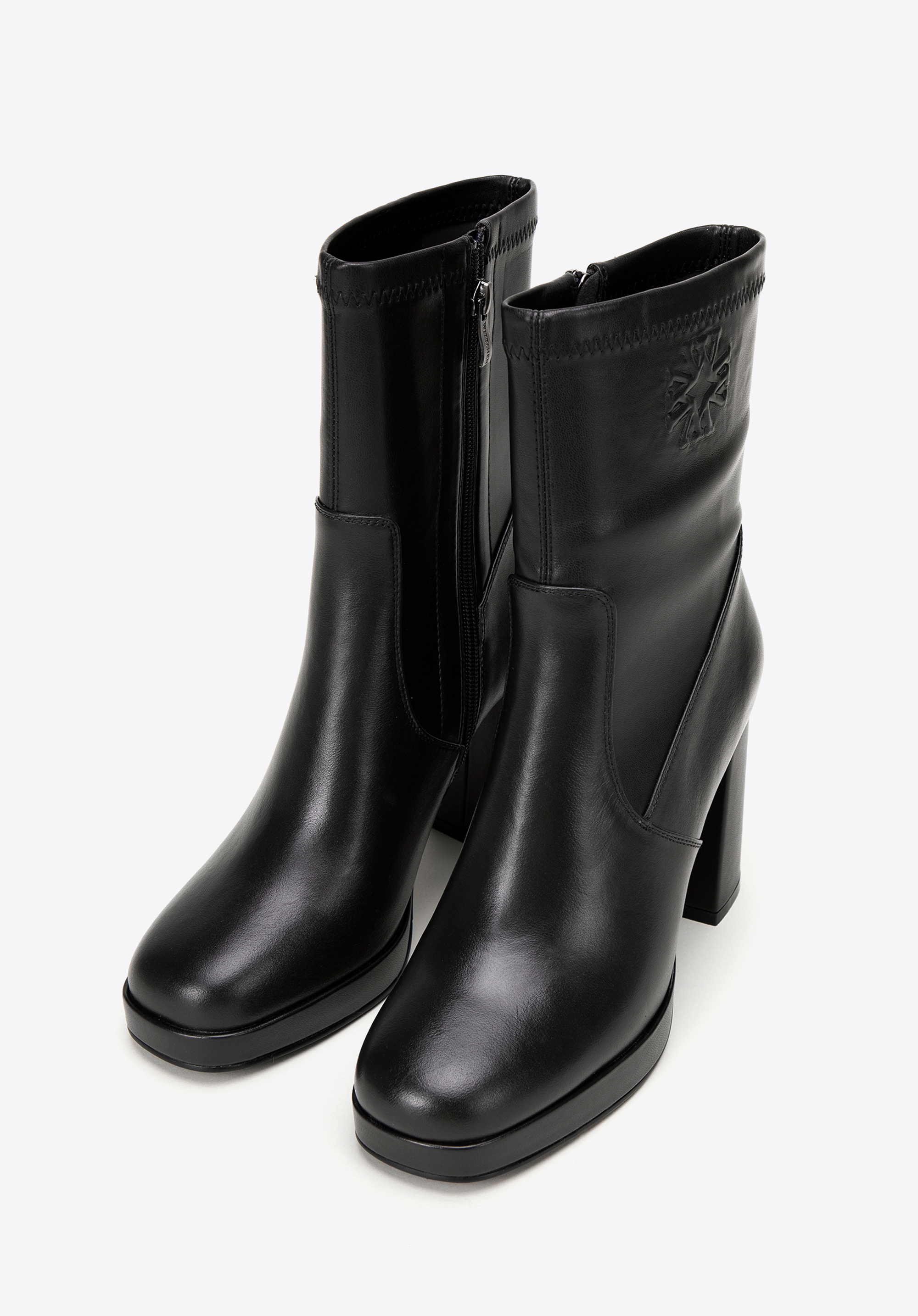 Відкрийте для себе розкіш і сучасний стиль разом з нашими елегантними жіночими ботильйонами з високоякісної натуральної шкіри з тонкими вставками з екошкіри. Це унікальне взуття поєднує в собі класичний дизайн із сучасним акцентом, пропонуючи не лише стиль, але й комфорт. Це взуття оснащене квадратним носком, що гарантує не тільки унікальний вигляд, але й надзвичайний комфорт носіння. Тонка тиснена монограма на щиколотці додає вишуканого вигляду. Надзвичайно високий елегантний каблук робить ногу візуально стрункішою а вбудована платформа підвищує комфорт носіння та модний вигляд.
