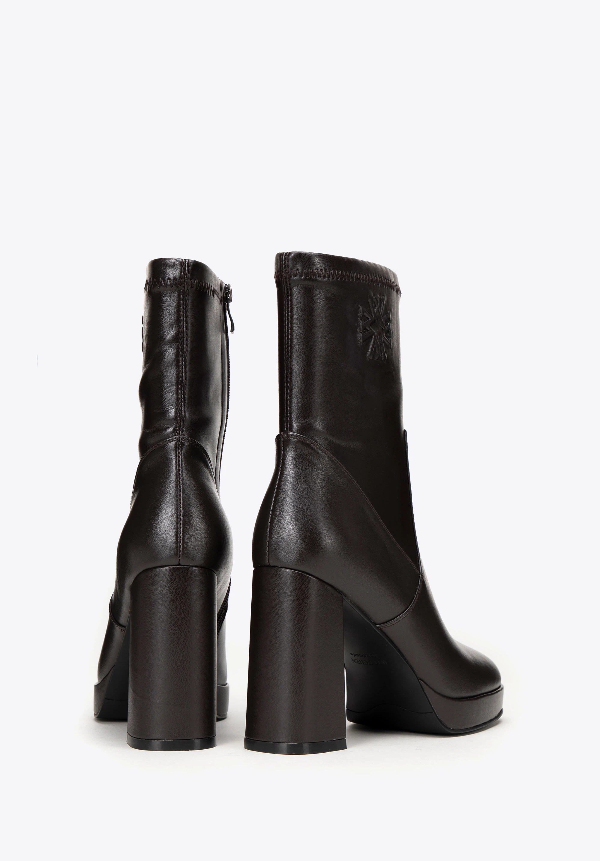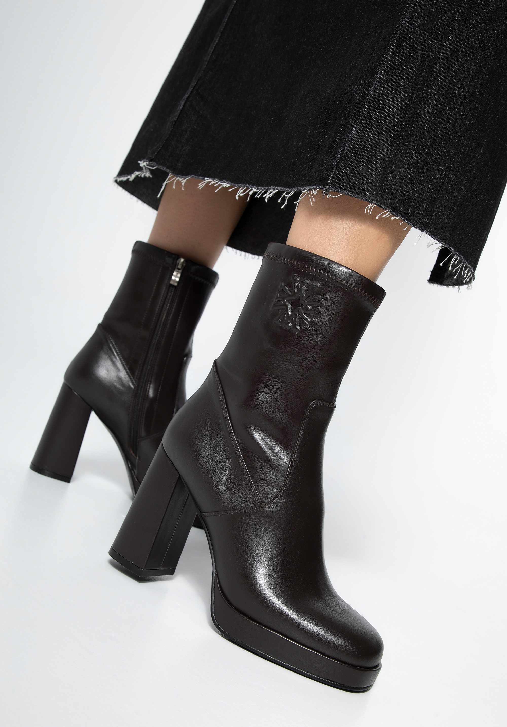 Відкрийте для себе розкіш і сучасний стиль разом з нашими елегантними жіночими ботильйонами з високоякісної натуральної шкіри з тонкими вставками з екошкіри. Це унікальне взуття поєднує в собі класичний дизайн із сучасним акцентом, пропонуючи не лише стиль, але й комфорт. Це взуття оснащене квадратним носком, що гарантує не тільки унікальний вигляд, але й надзвичайний комфорт носіння. Тонка тиснена монограма на щиколотці додає вишуканого вигляду. Надзвичайно високий елегантний каблук робить ногу візуально стрункішою а вбудована платформа підвищує комфорт носіння та модний вигляд.