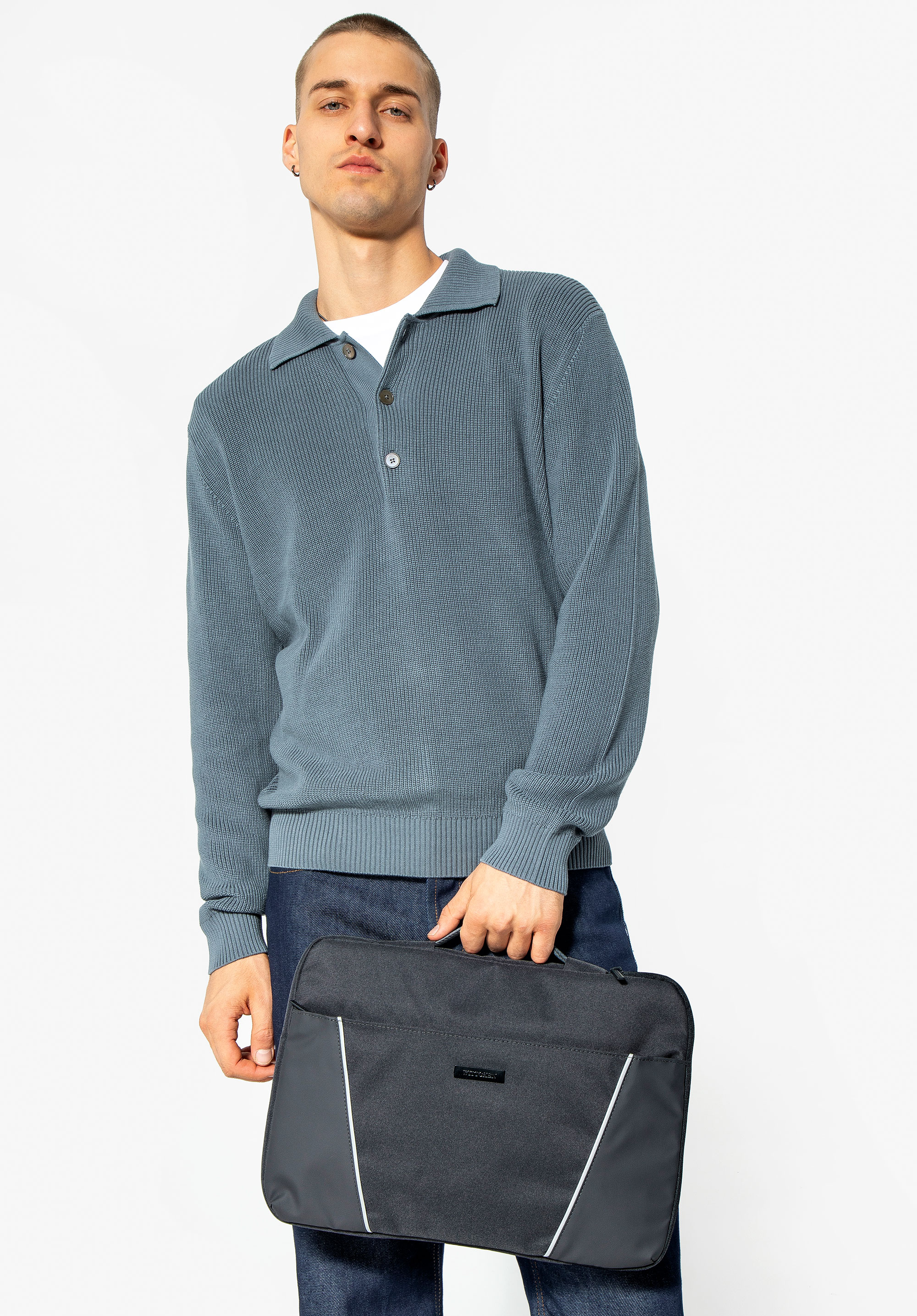 Цей чохол є надійним супутником для кожного професіонала, поєднуючи функціональність і елегантність в ідеальній гармонії. Його ергономічна ручка з правого боку полегшує перенесення, забезпечуючи неперевершений комфорт. Тонкі шви та естетичний логотип додають вишуканості, ідеально підкреслюючи елегантний дизайн. Це невід’ємна частина вашого щоденного одягу, яка не тільки захищає, але й підкреслює ваш професіоналізм і стиль.