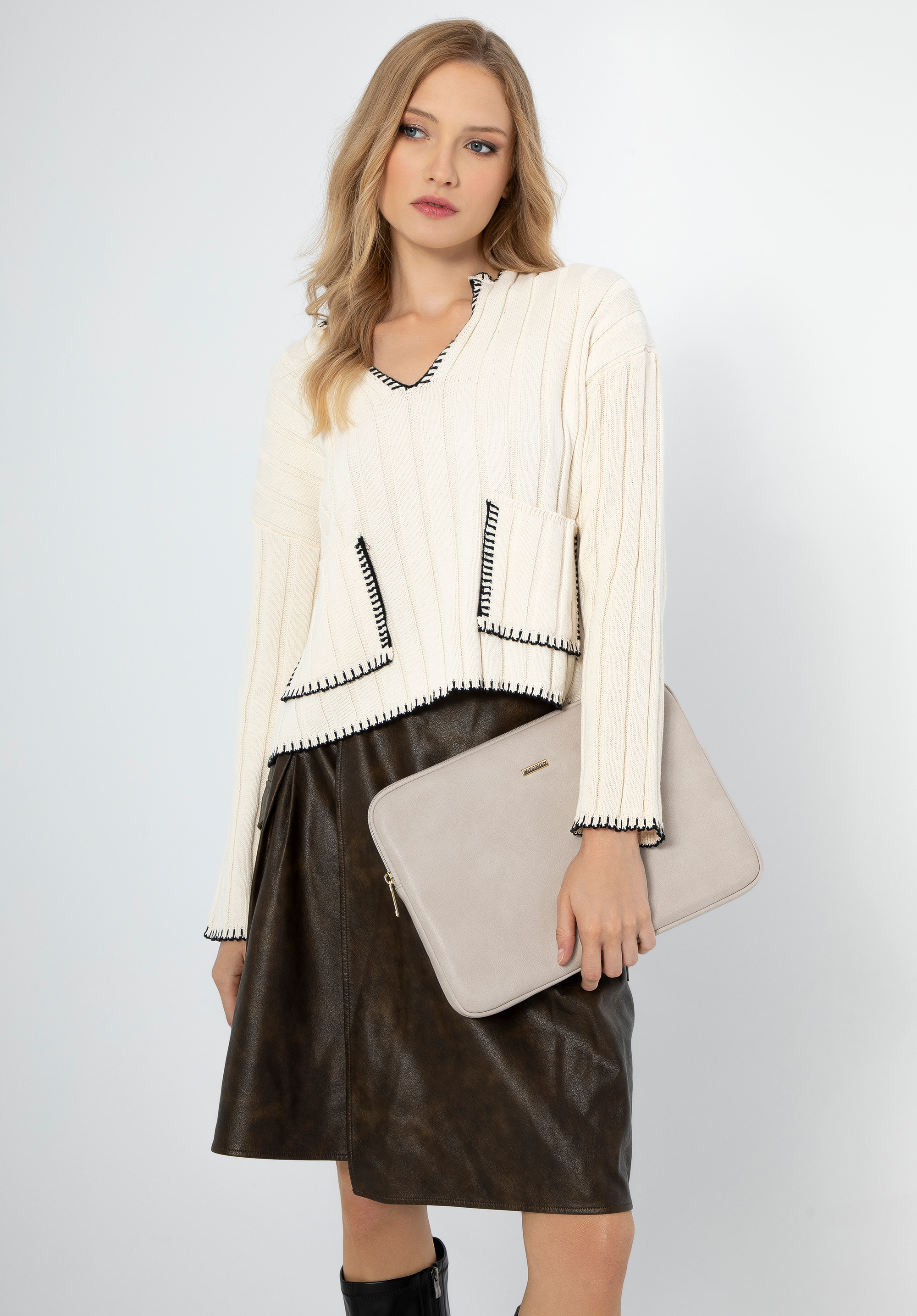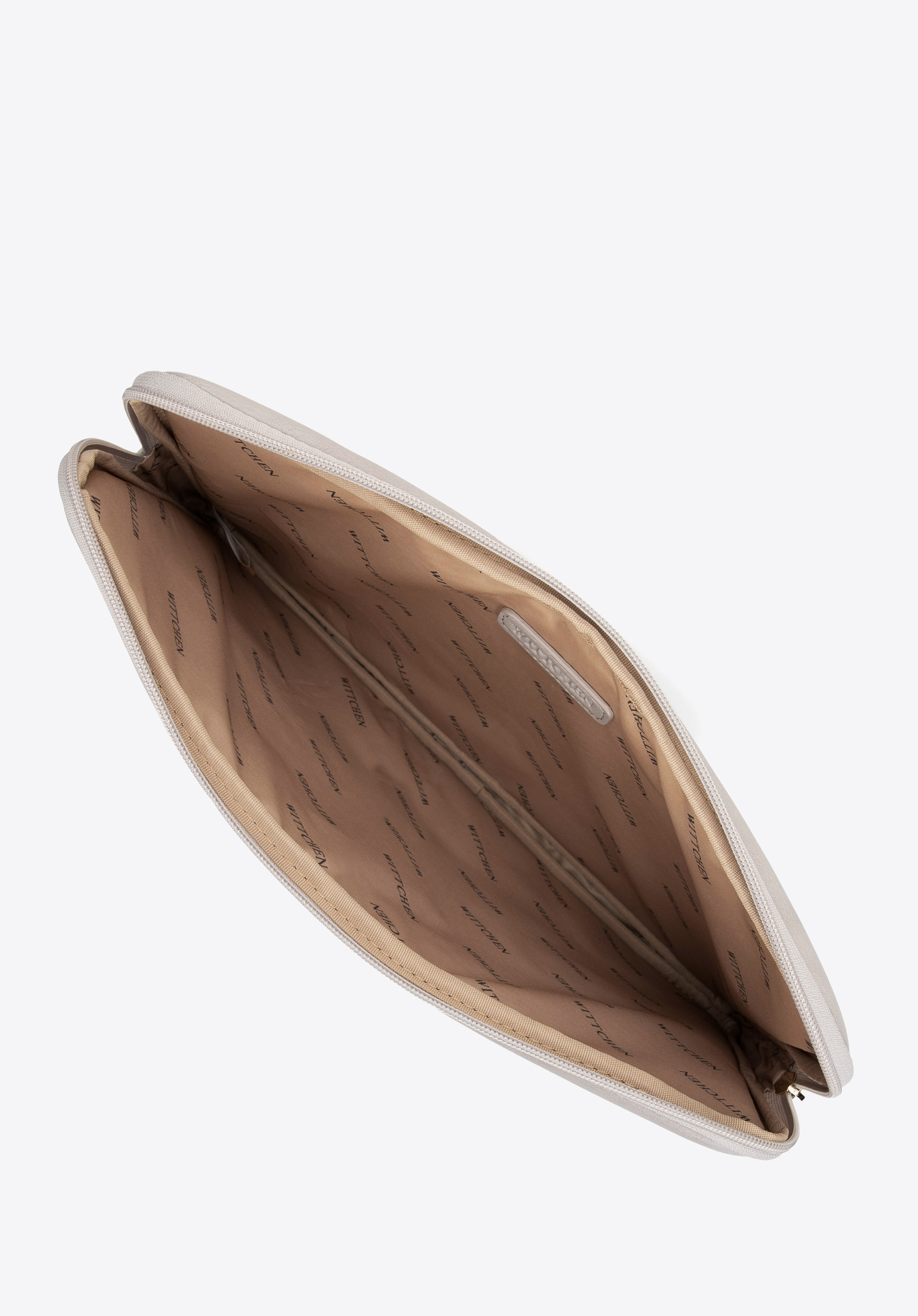 Пориньте у світ стилю та функціональності з нашим ексклюзивним футляром для ноутбука , виготовленим із високоякісної штучної шкіри . Кожна деталь була ретельно розроблена, щоб відповідати вашим очікуванням. Підкладка з поліестеру та прикрашена передня частина з логотипом WITTCHEN не тільки виглядають елегантно, але й забезпечують надійний захист вашого пристрою завдяки м’якій внутрішній підкладці . Застібка-блискавка забезпечує легке та надійне закриття, а тонкий дизайн робить чохол не лише легким, але й зручним для транспортування. Він може вмістити ноутбук або інший електронний пристрій з максимальними розмірами 23 см x 33 см .