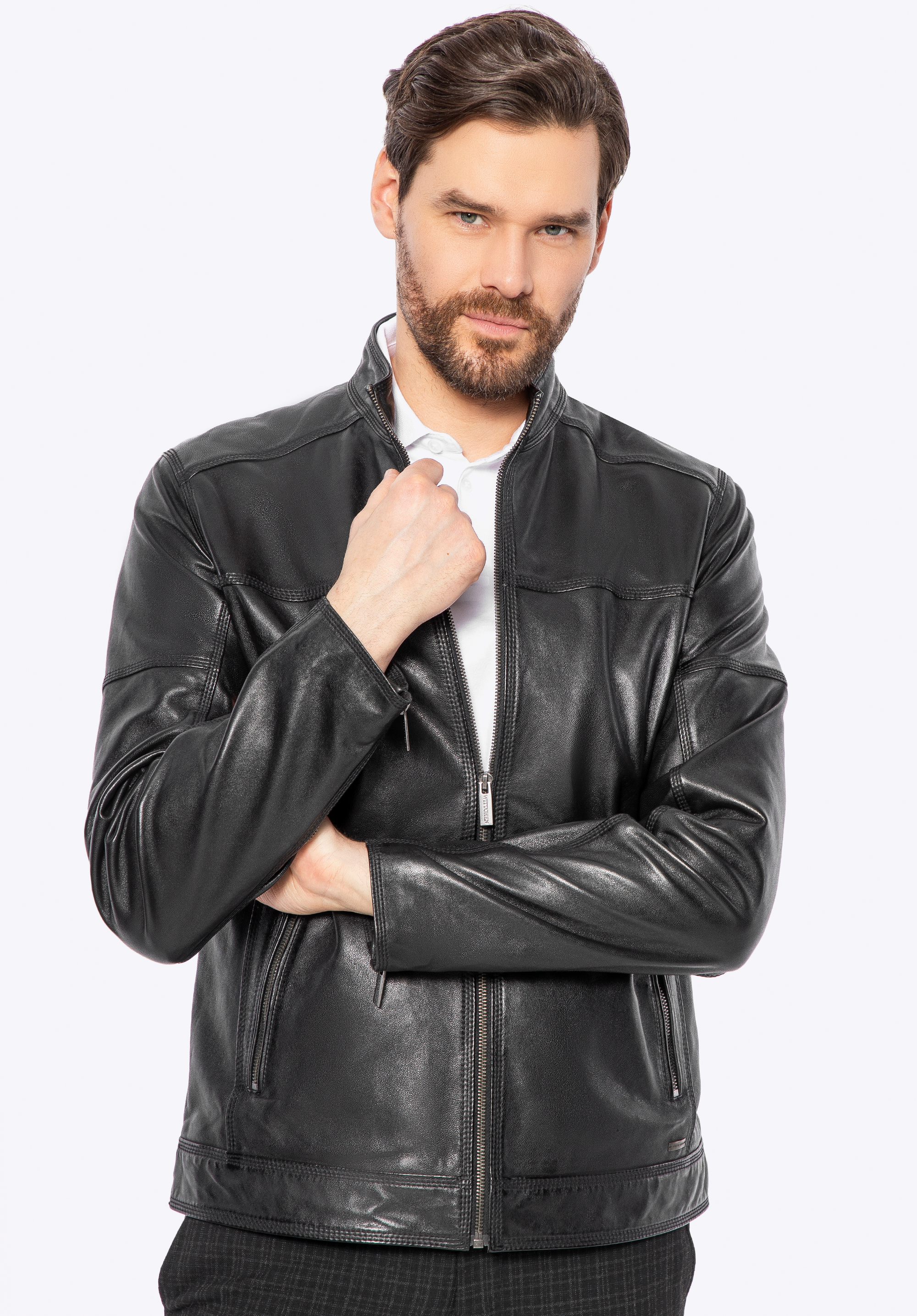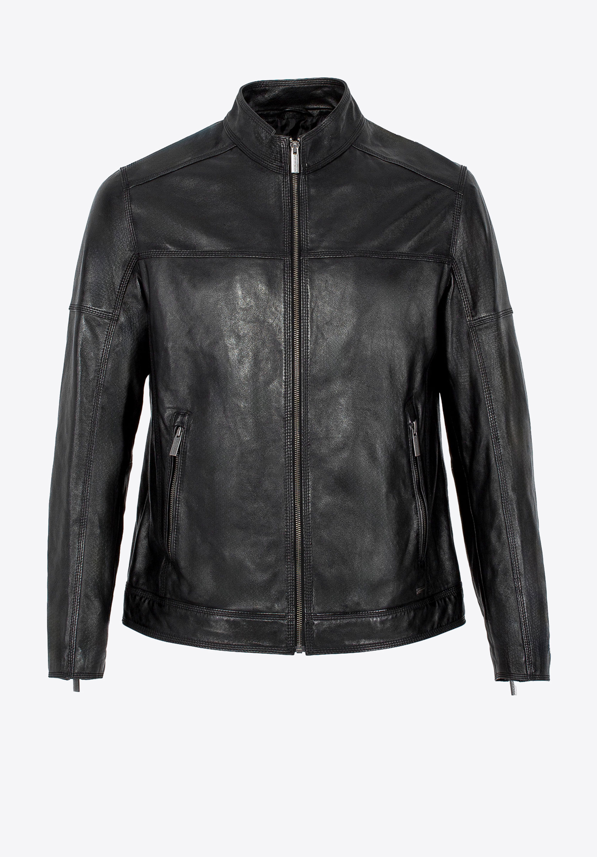 Чоловіча байкерська куртка з натуральної шкіри чорна