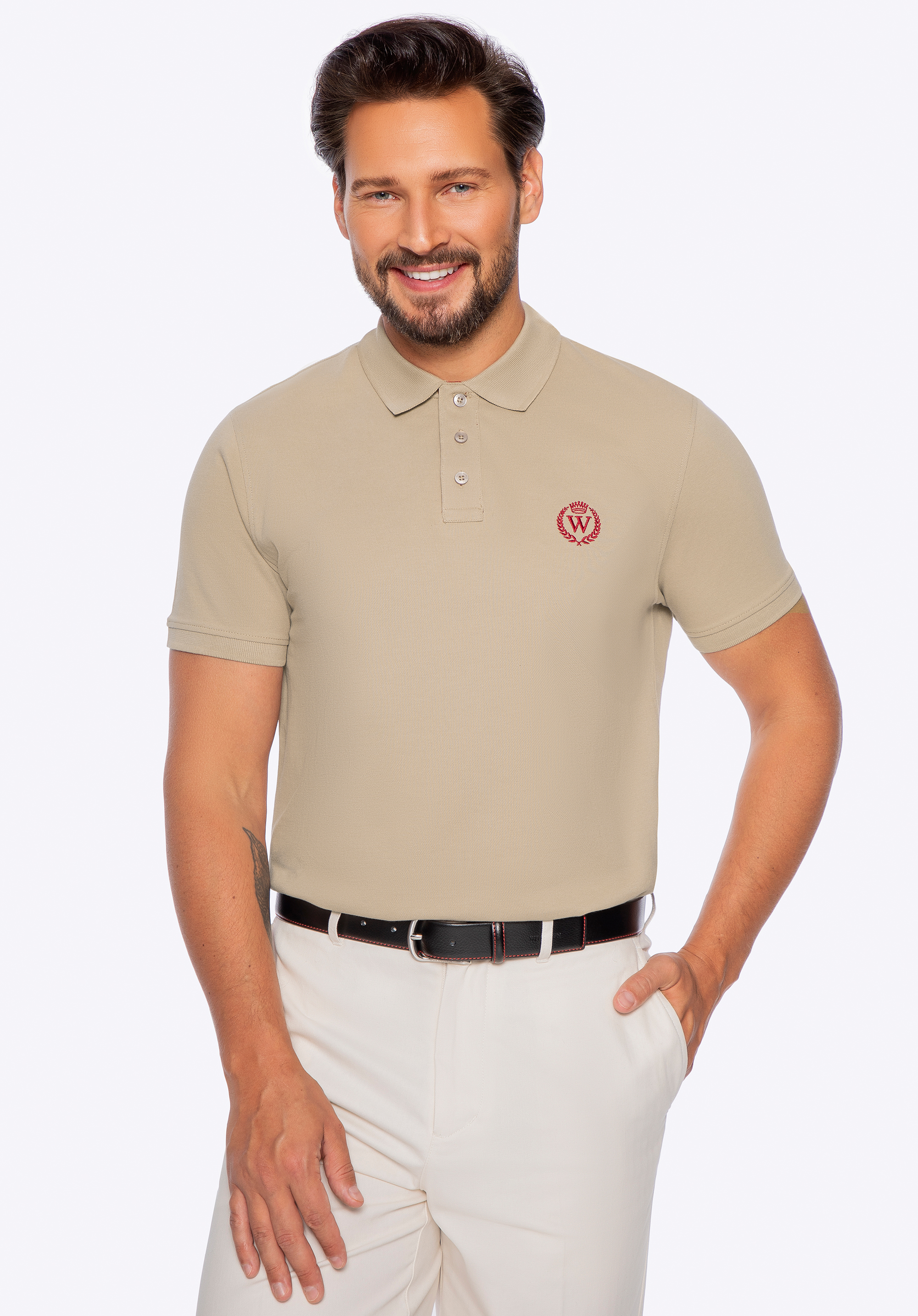 Ця чоловіча сорочка-поло поєднує в собі позачасову елегантність із сучасним стилем. Виготовлена зі 100% високоякісної бавовни, вона забезпечує комфорт та зручність протягом усього дня, незалежно від нагоди. Класичний комір-поло та застібка на ґудзиках додають вишуканості, завдяки чому ця сорочка однаково чудово виглядатиме як у повсякденному, так і в більш вишуканому стилі. Барвисті акценти на комірі та логотипі надають свіжості та підкреслюють індивідуальність вашого образу. Витончений вишитий логотип «W» з лавровим вінком та короною завершує дизайн. Подвійний шов по краю підвищує зносостійкість та допомагає сорочці зберігати свою бездоганну форму з часом.