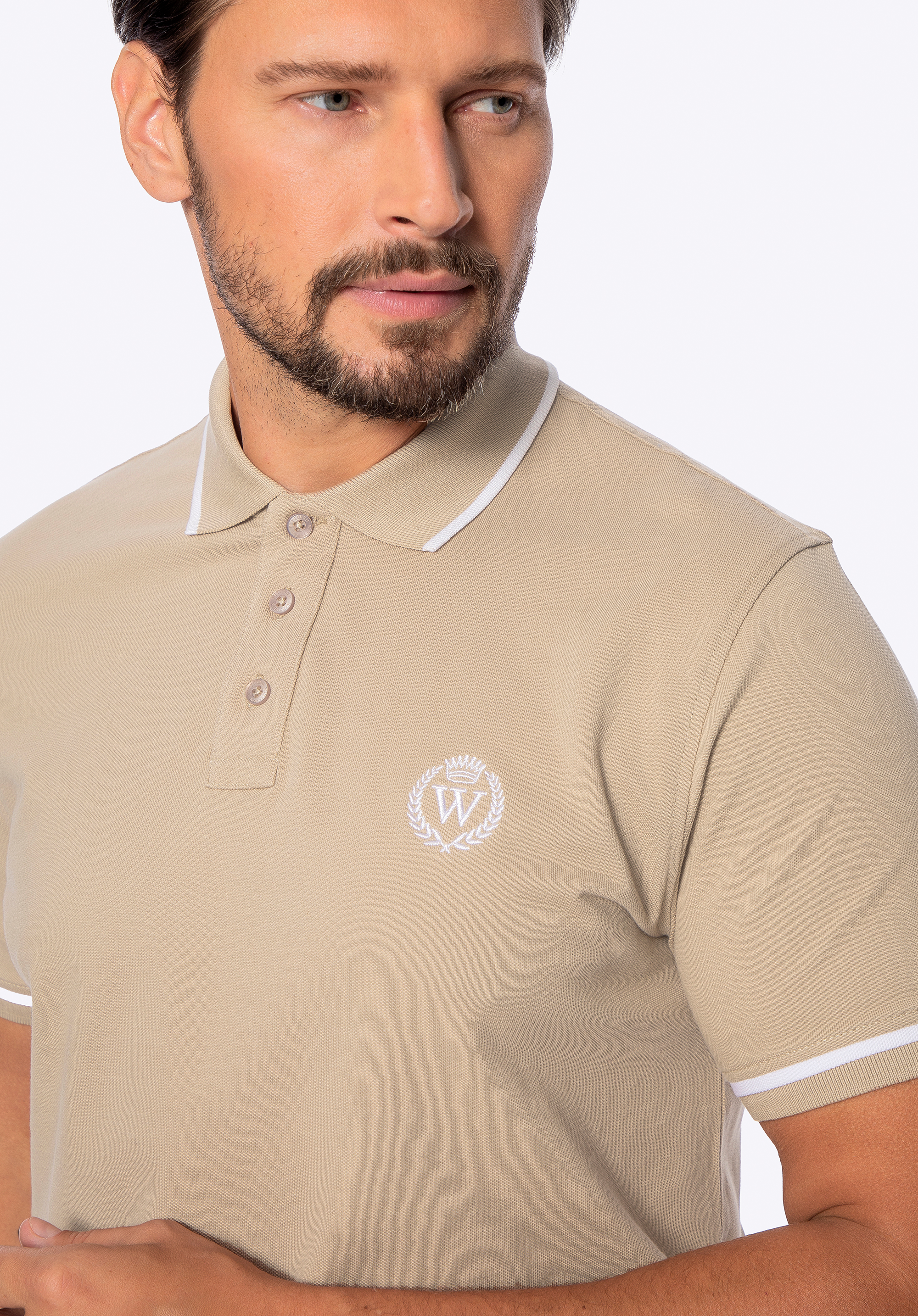 Чоловіча бавовняна сорочка-поло з контрастною обробкою бежево-біла