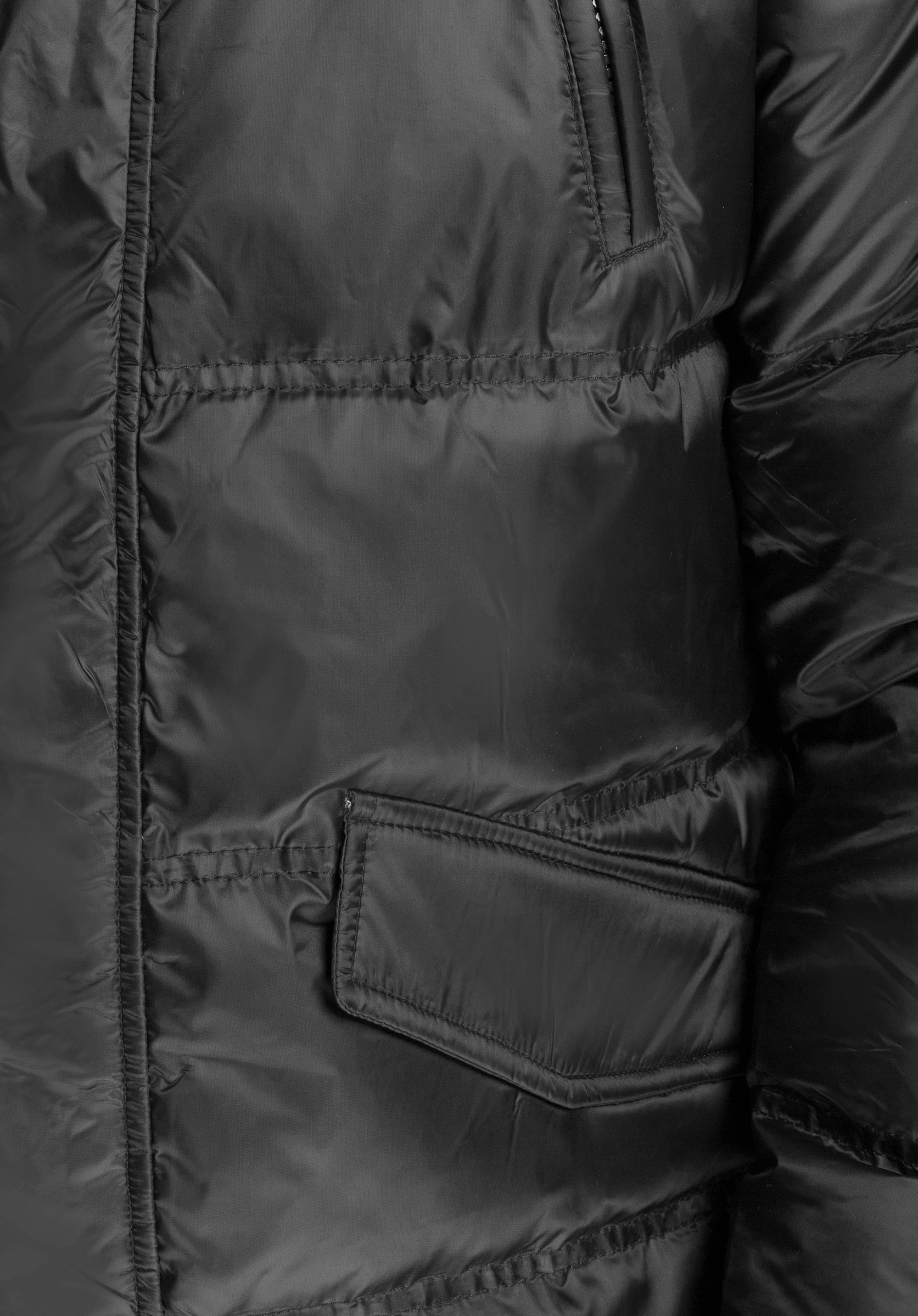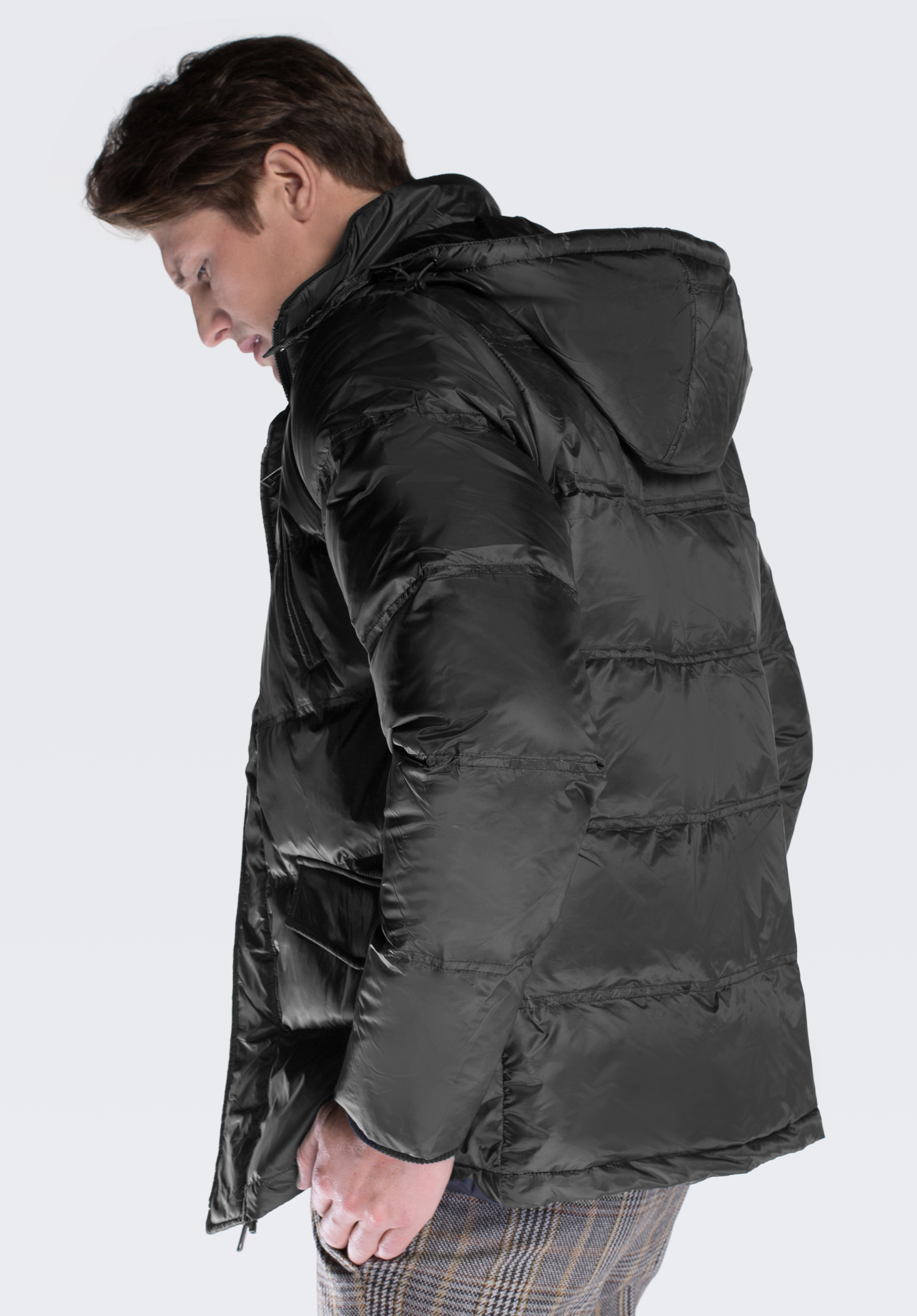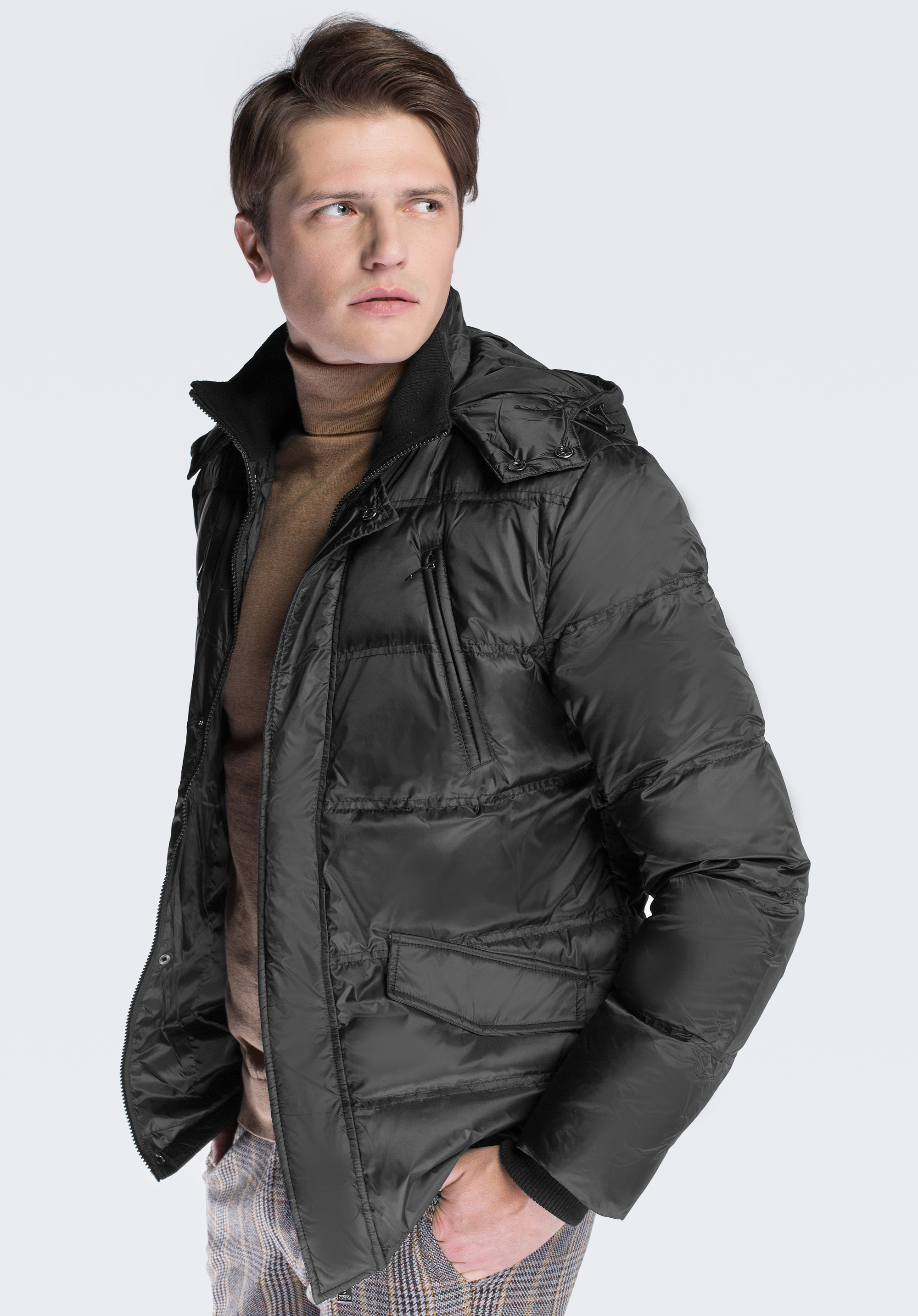 Чоловіча стьобана куртка з капюшоном з нейлону. Модель з застібкою-блискавкою, яка додатково захищає від холоду. Утеплена куртка, наповнена натуральним пухом і пір''ям, забезпечує ефективну ізоляцію від холоду під час несприятливих погодних умов.