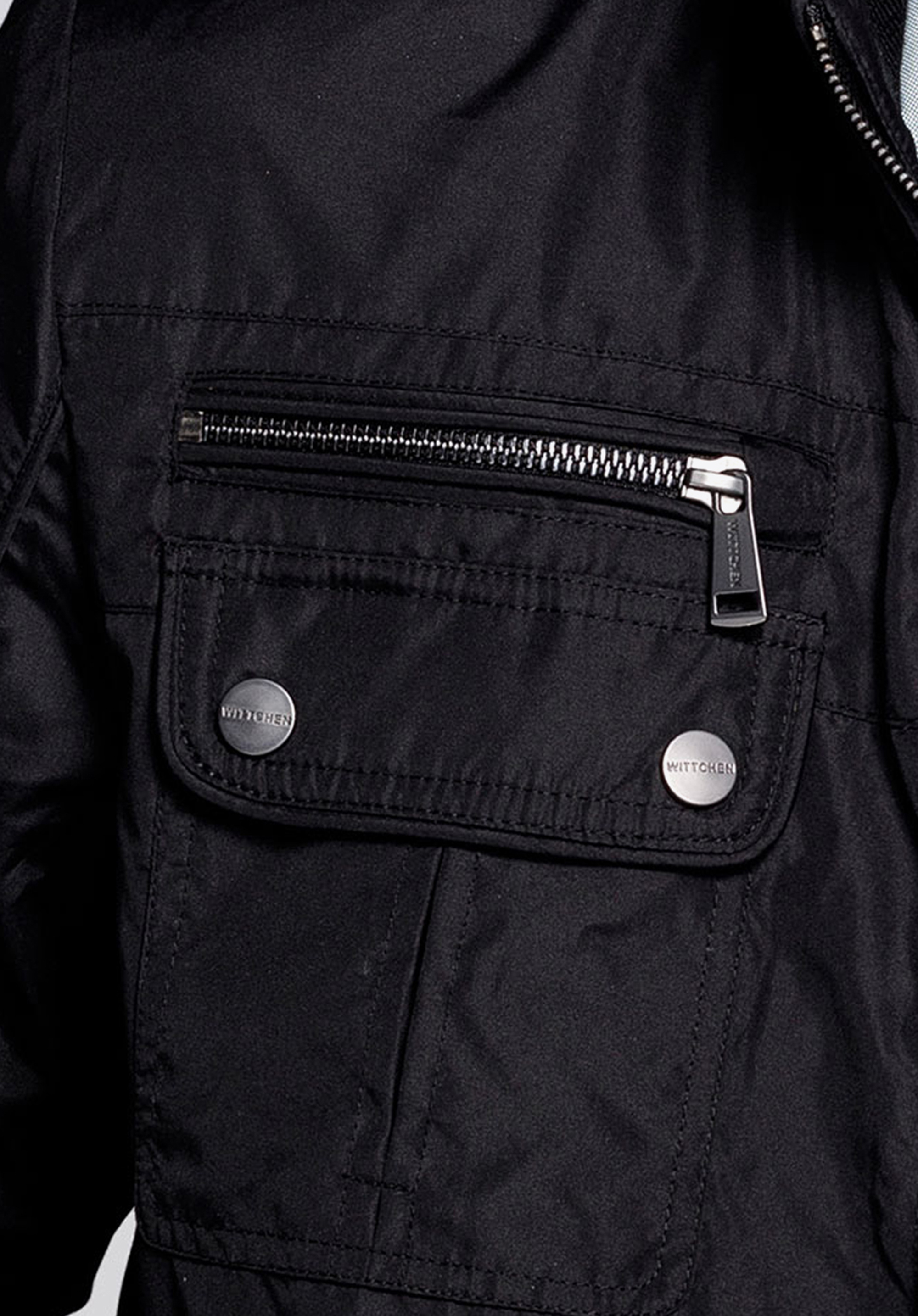 Це популярна модель чоловічої куртки. Вона славиться своєю простотою, яка чудово поєднується з повсякденним одягом. Має довжину до лінії стегон і має багато корисних кишень: для гаманця, для ключів, для телефону і ще один для інших дрібниць. Ви можете носити її на блискавці або вільно накинутою на плечі. Вона зшита з гладкої і легкої тканини, яка захистить вас від холоду і вітру; її також легко чистити. Низ і рукава оброблені товстою гумкою. Ця куртка приклад позачасової класики, яка буде служити вам роками.
