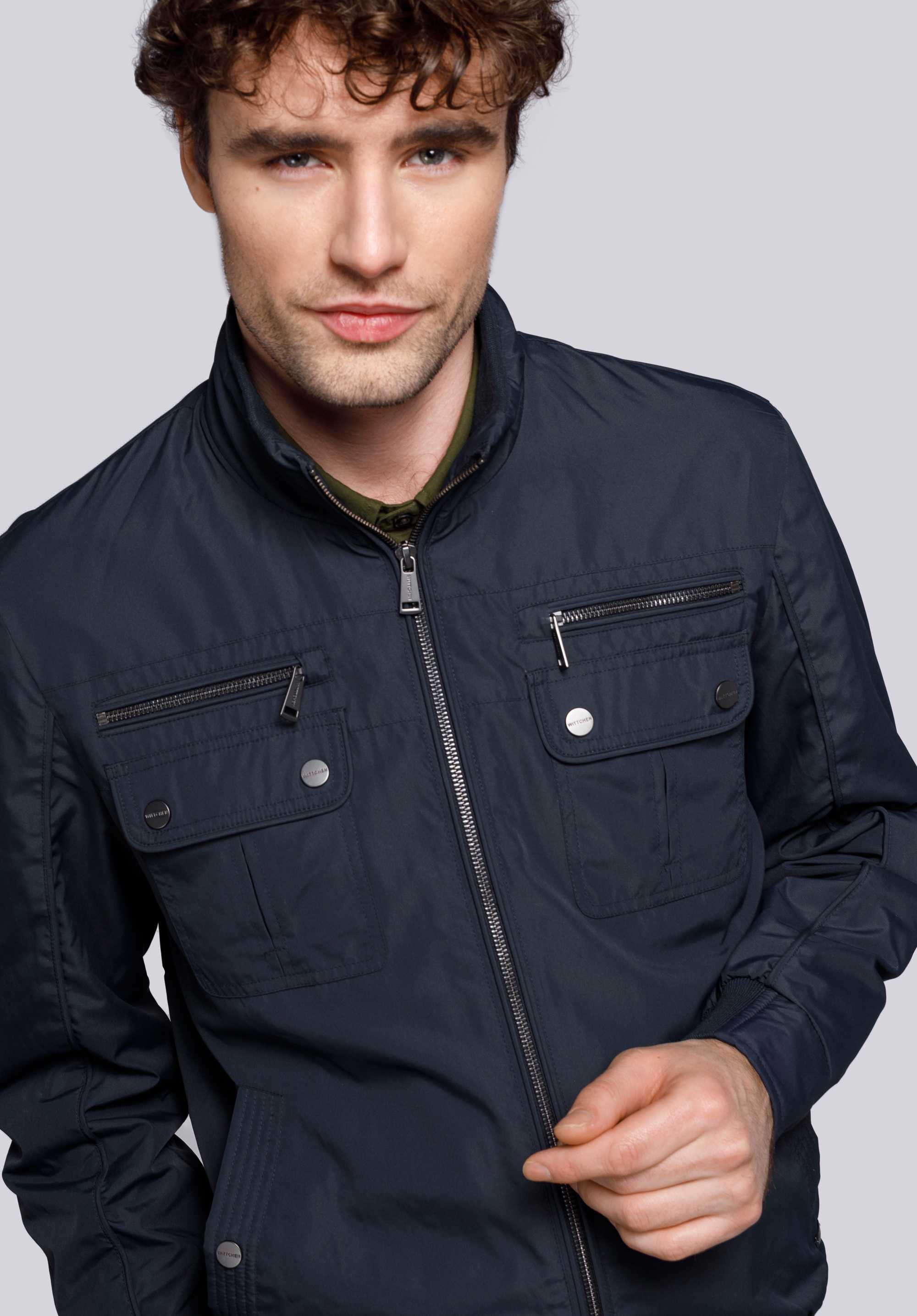 Це популярна модель чоловічої куртки. Вона славиться своєю простотою, яка чудово поєднується з повсякденним одягом. Має довжину до лінії стегон і має багато корисних кишень: для гаманця, для ключів, для телефону і ще один для інших дрібниць. Ви можете носити її на блискавці або вільно накинутою на плечі. Вона зшита з гладкої і легкої тканини, яка захистить вас від холоду і вітру; її також легко чистити. Низ і рукава оброблені товстою гумкою. Ця куртка приклад позачасової класики, яка буде служити вам роками.