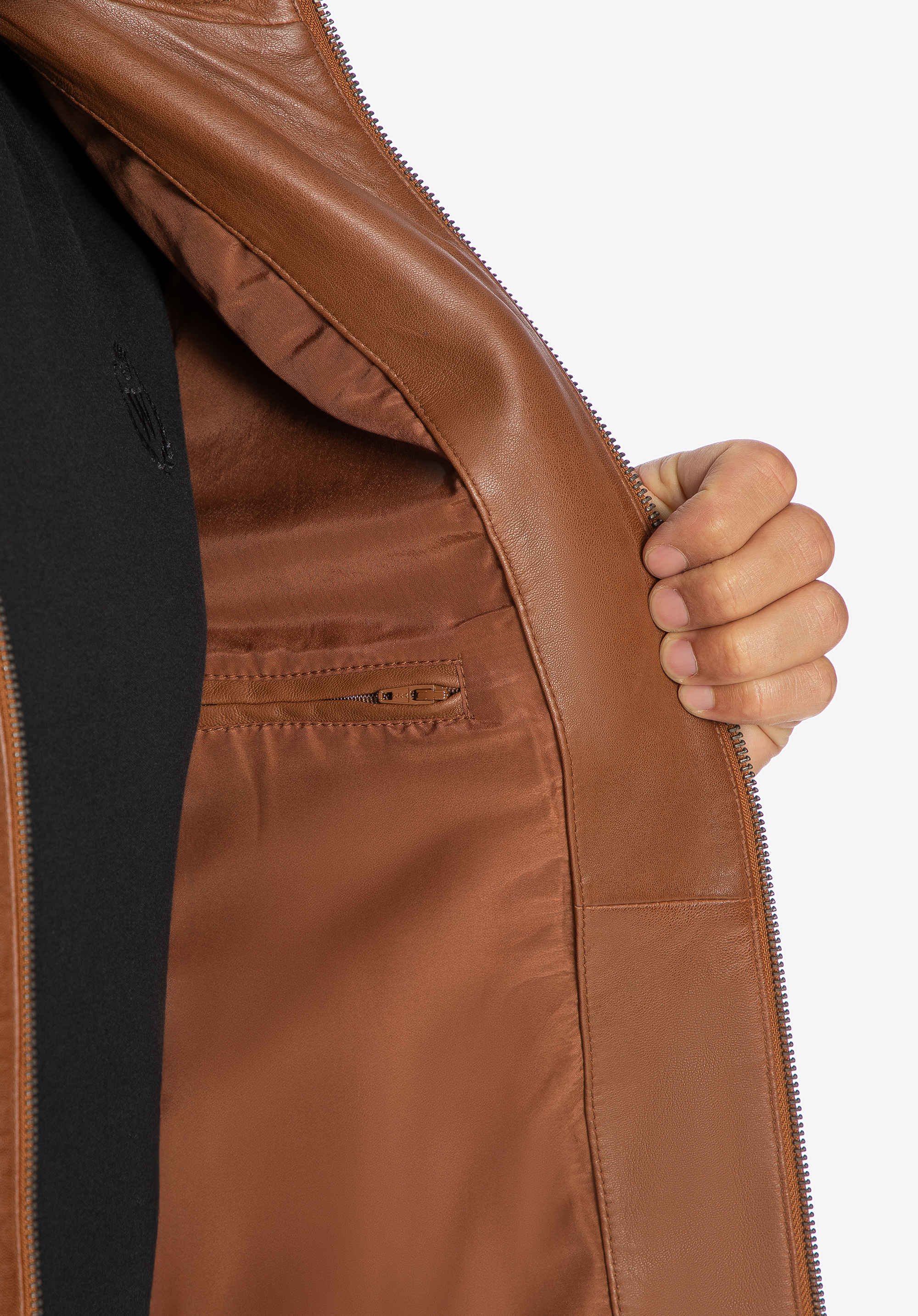 Пориньте у світ розкоші та стилю завдяки куртці, що поєднує в собі класику та сучасний характер. Виготовлена з найвищої якості натуральної овечої шкіри, вона вражає м’якістю, довговічністю та неповторним виглядом. Класичний комір додає елегантності, а блискавка дозволяє швидко та зручно застібати куртку незалежно від ситуації. Металевий логотип виробника, делікатно розміщений збоку, надає виробу ексклюзивного характеру, а ретельно розташовані кишені — як зовнішні, так і внутрішні (зокрема одна на блискавці) — поєднують у собі функціональність із дизайном найвищого рівня.