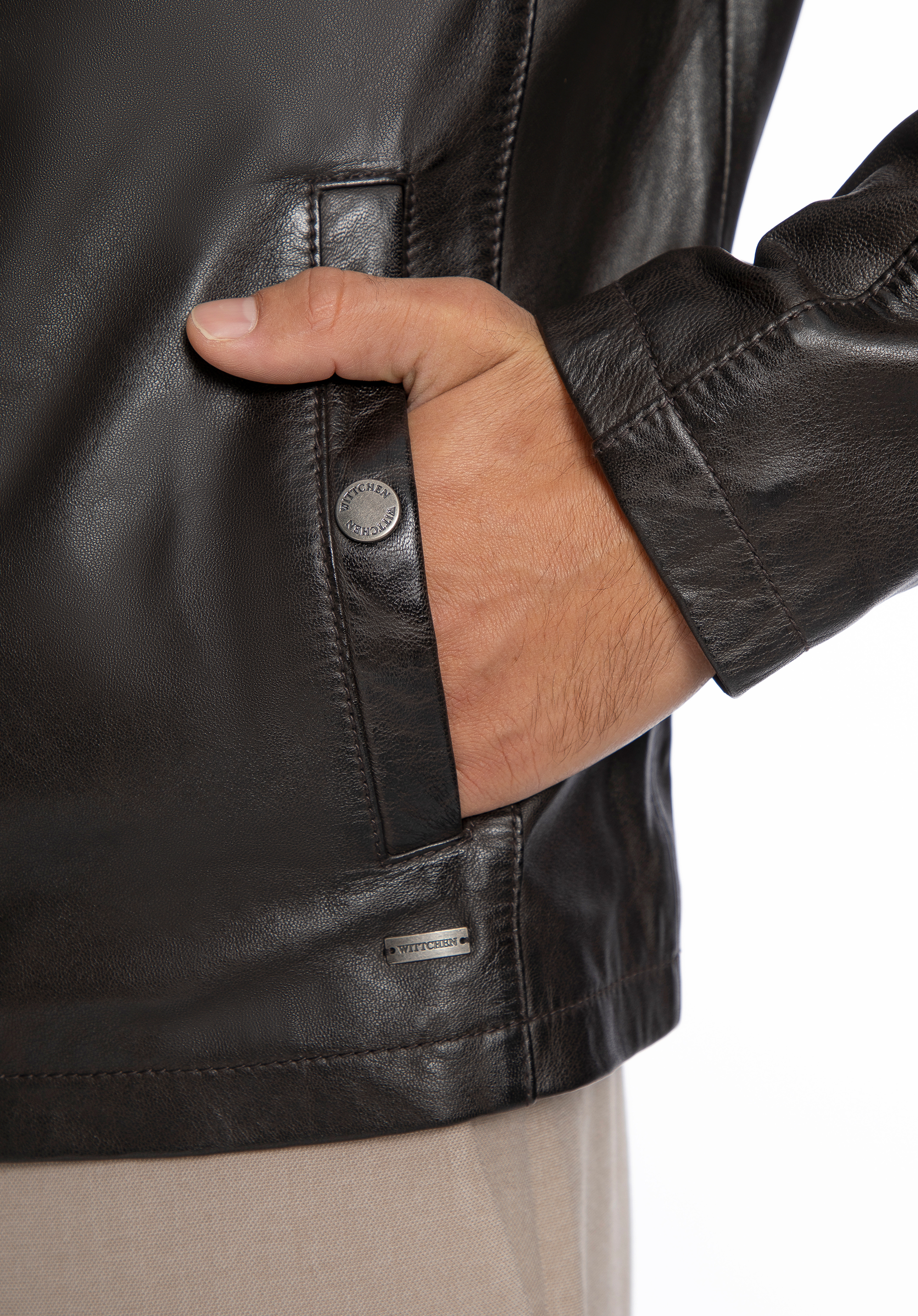 Пориньте у світ розкоші та стилю завдяки куртці, що поєднує в собі класику та сучасний характер. Виготовлена з найвищої якості натуральної овечої шкіри, вона вражає м’якістю, довговічністю та неповторним виглядом. Класичний комір додає елегантності, а блискавка дозволяє швидко та зручно застібати куртку незалежно від ситуації. Металевий логотип виробника, делікатно розміщений збоку, надає виробу ексклюзивного характеру, а ретельно розташовані кишені — як зовнішні, так і внутрішні (зокрема одна на блискавці) — поєднують у собі функціональність із дизайном найвищого рівня.