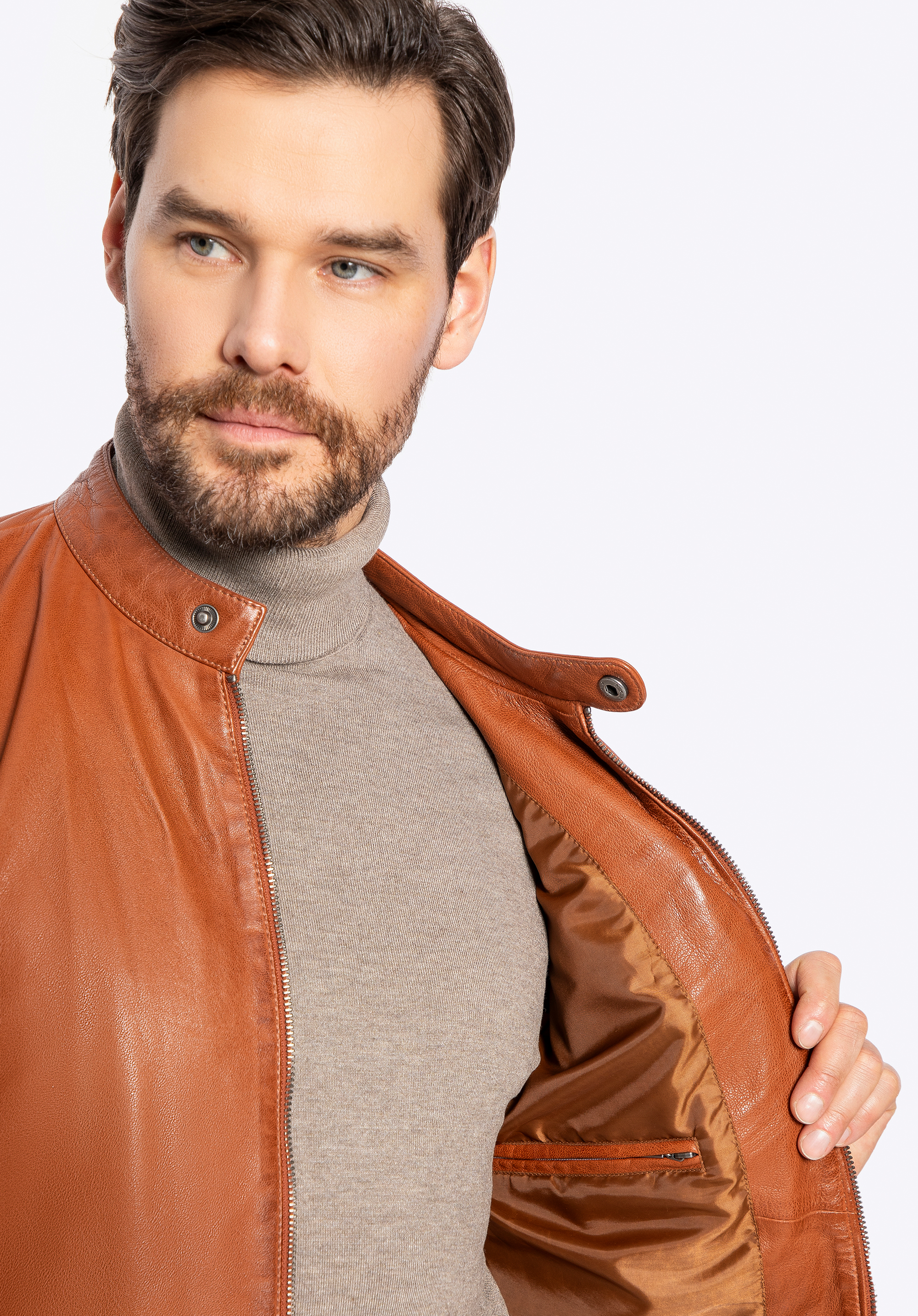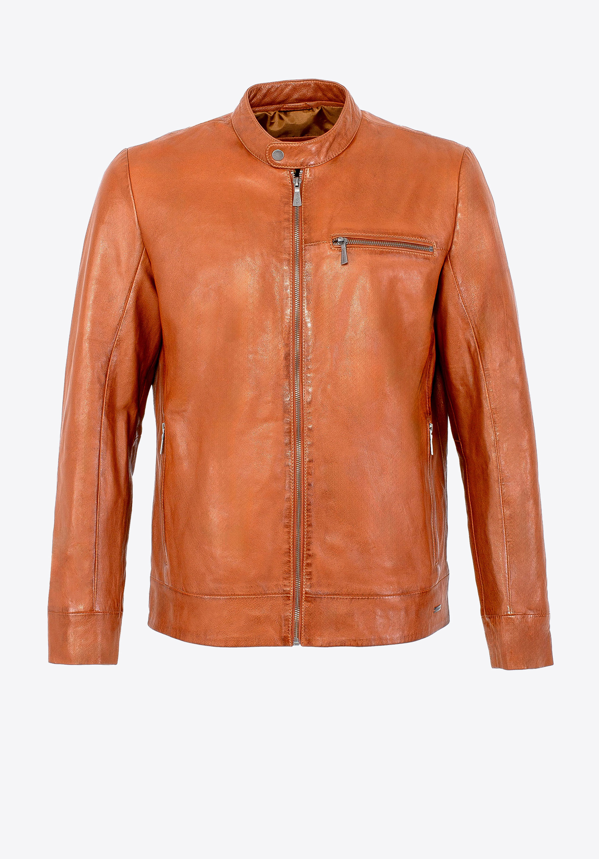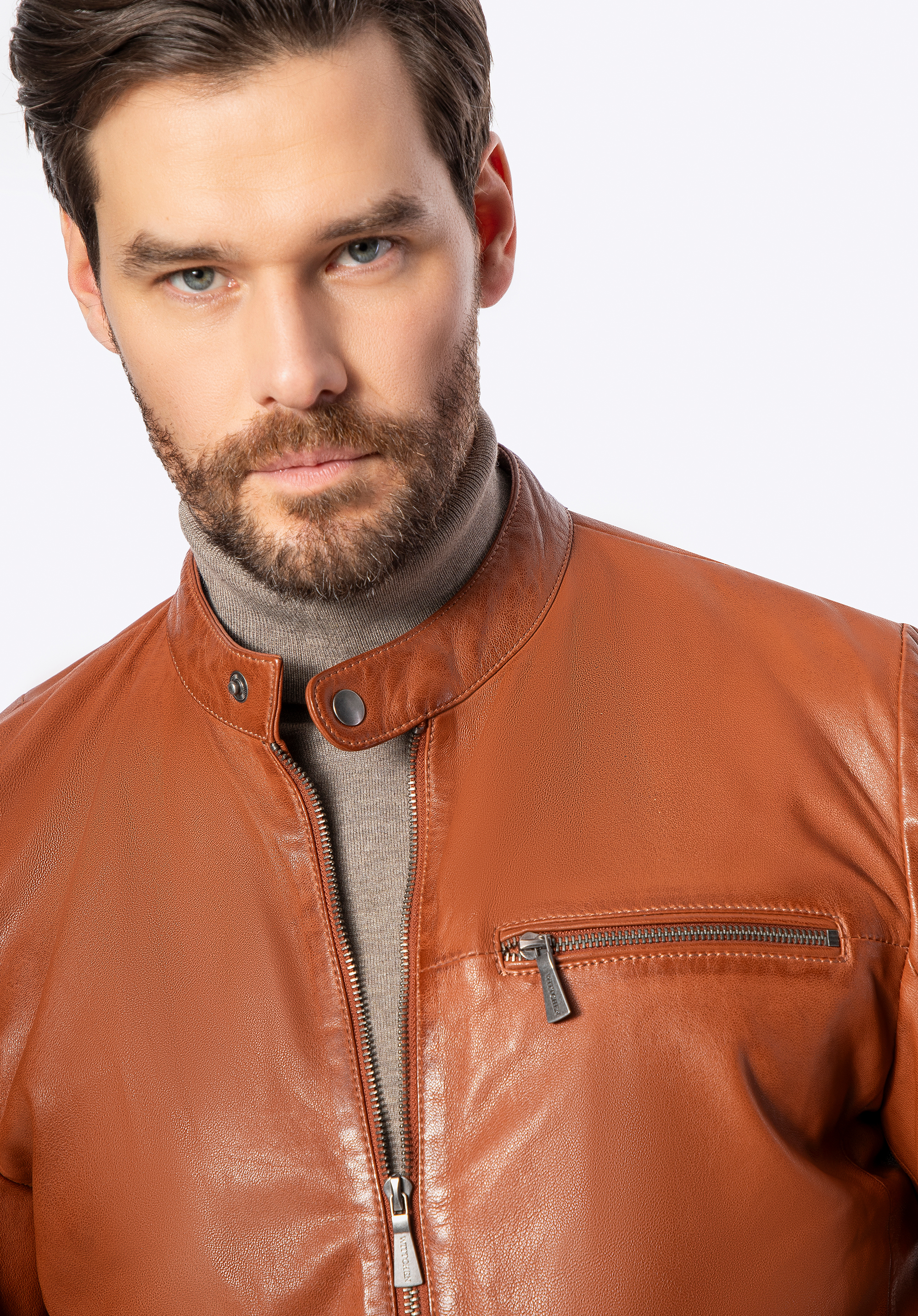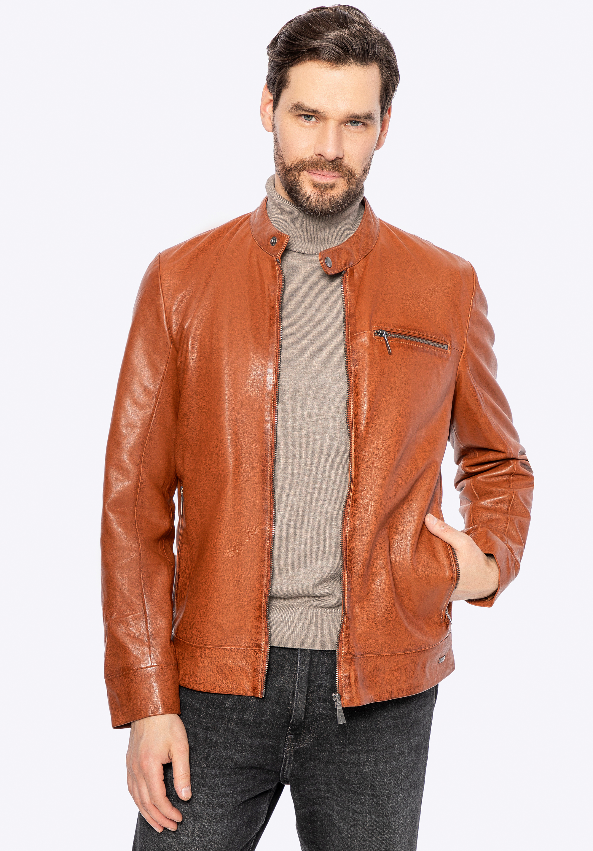 Відчуйте себе особливим щодня з чоловічою курткою, яка поєднує позачасовий стиль із найвищою якістю виконання. Виготовлена з натуральної овечої шкіри, м’якої на дотик і водночас надзвичайно міцної, ця куртка є синонімом розкоші та функціональності. Застібка на блискавку та комір-стійка на кнопці забезпечують захист від холоду, а сучасний, приталений крій додає впевненості та стильного вигляду.