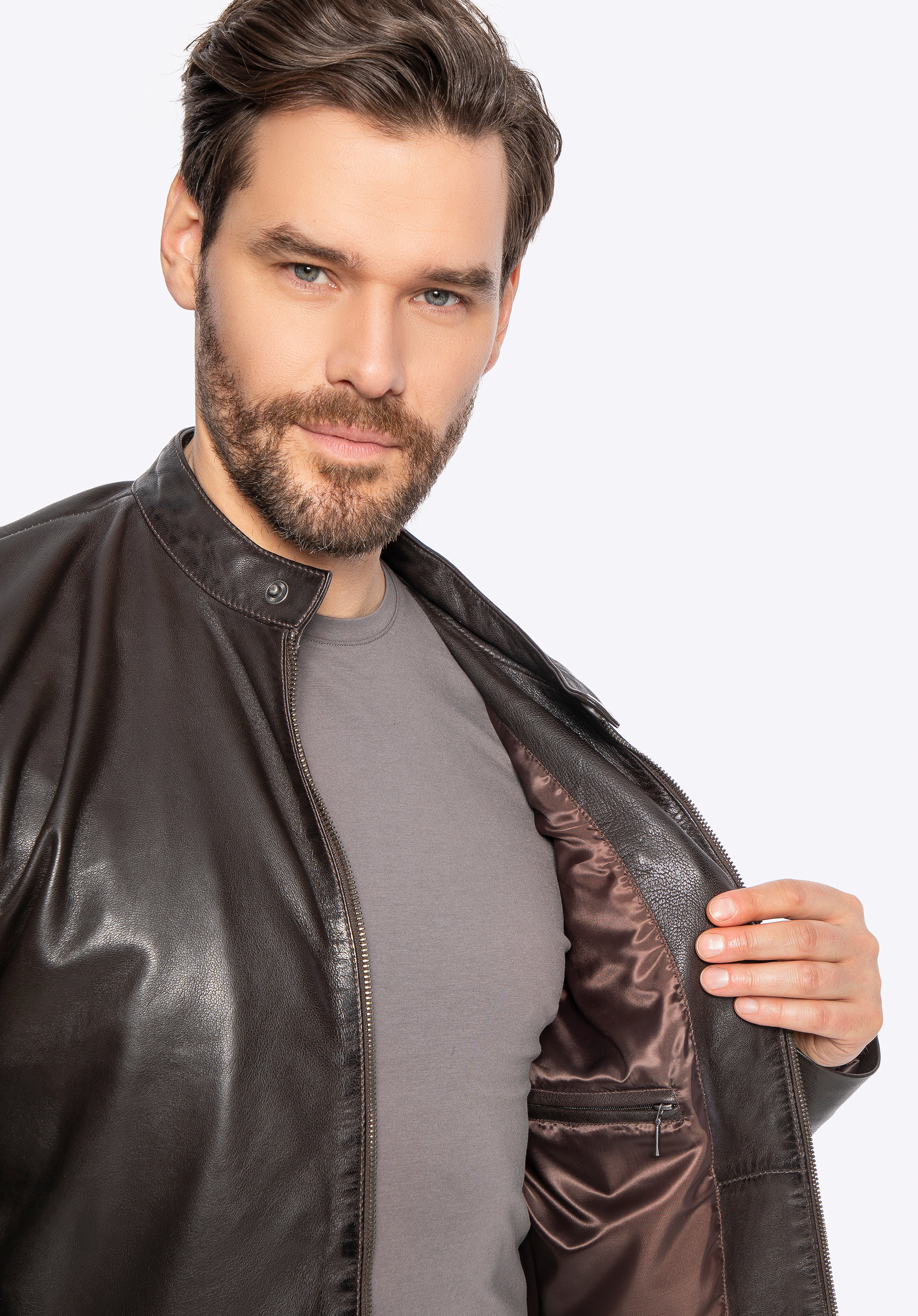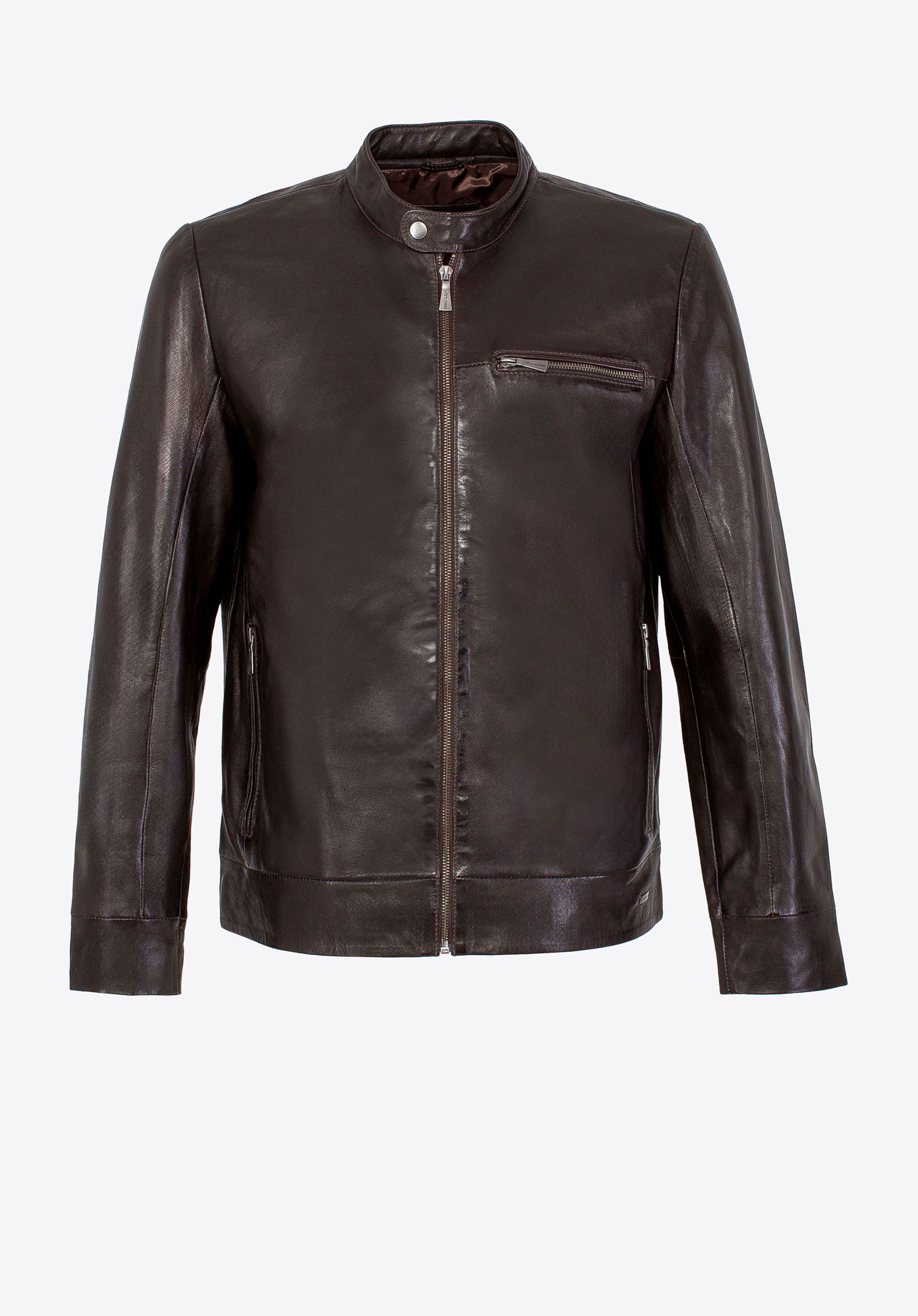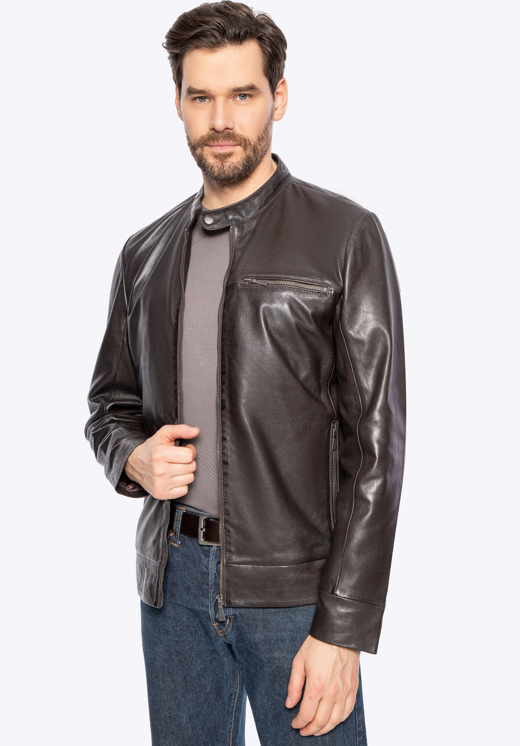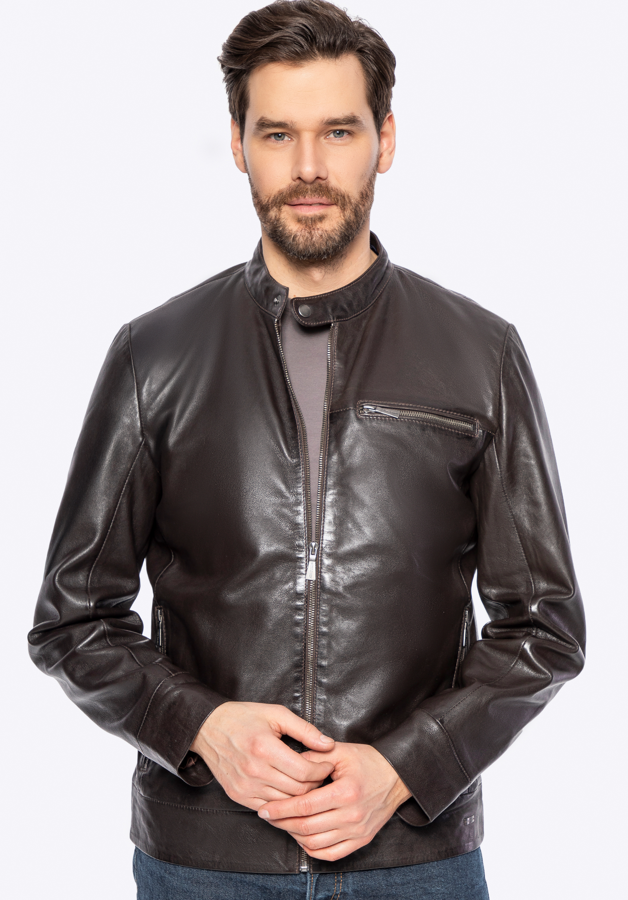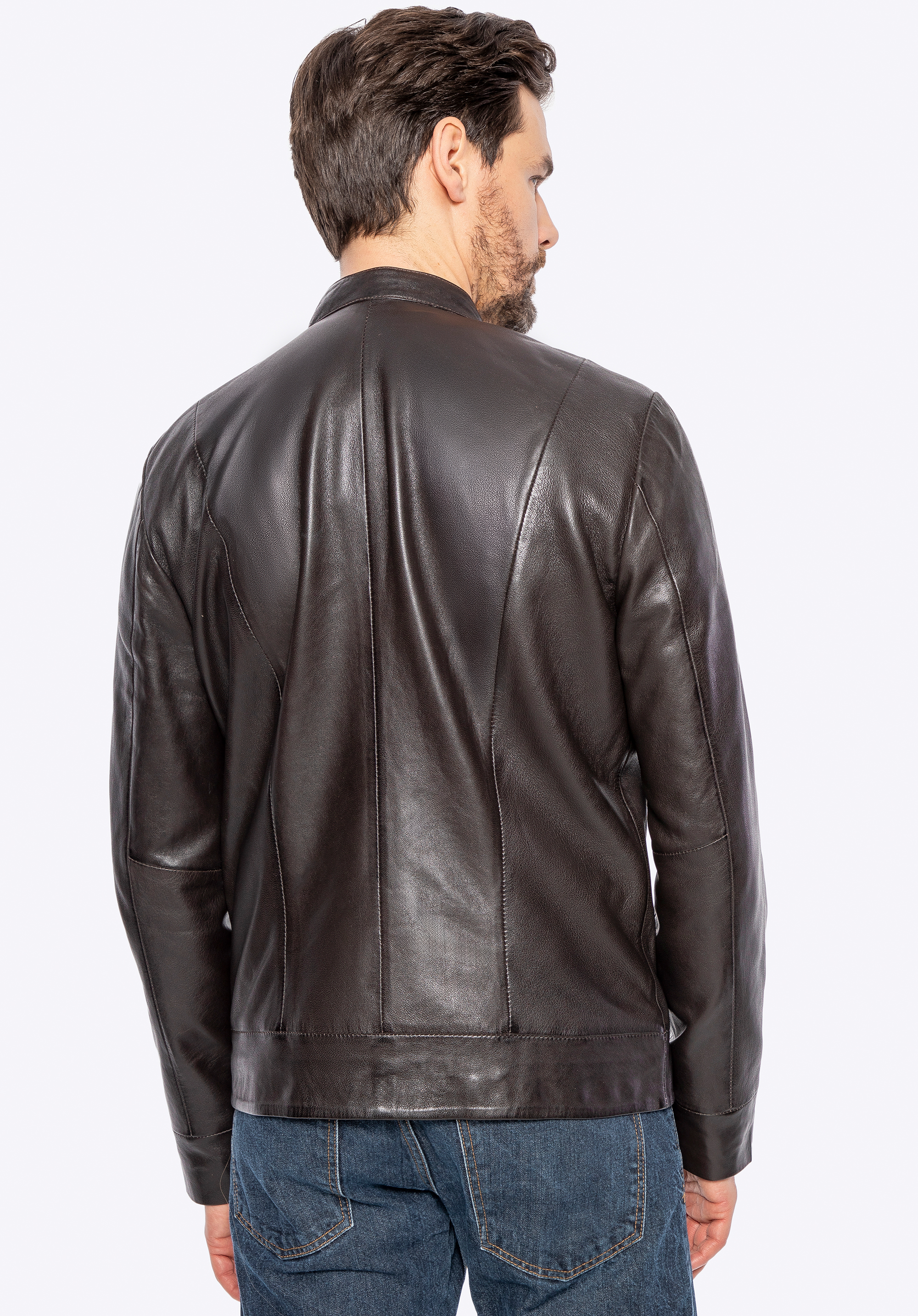 Чоловіча куртка з натуральної овечої шкіри темно-коричнева