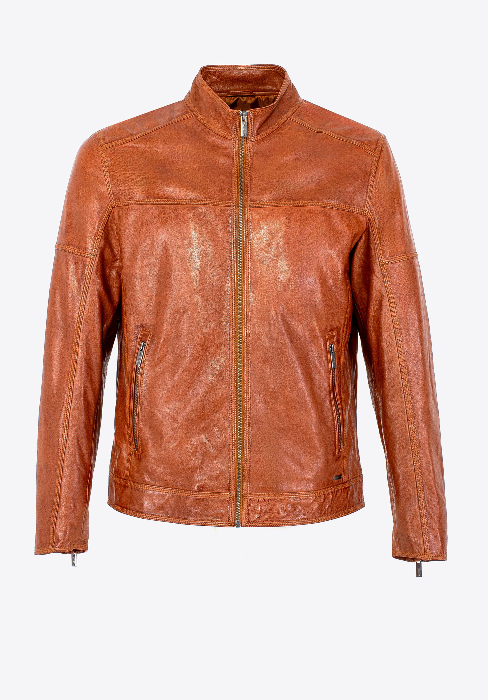 Чоловіча байкерська куртка з натуральної шкіри світло-коричнева