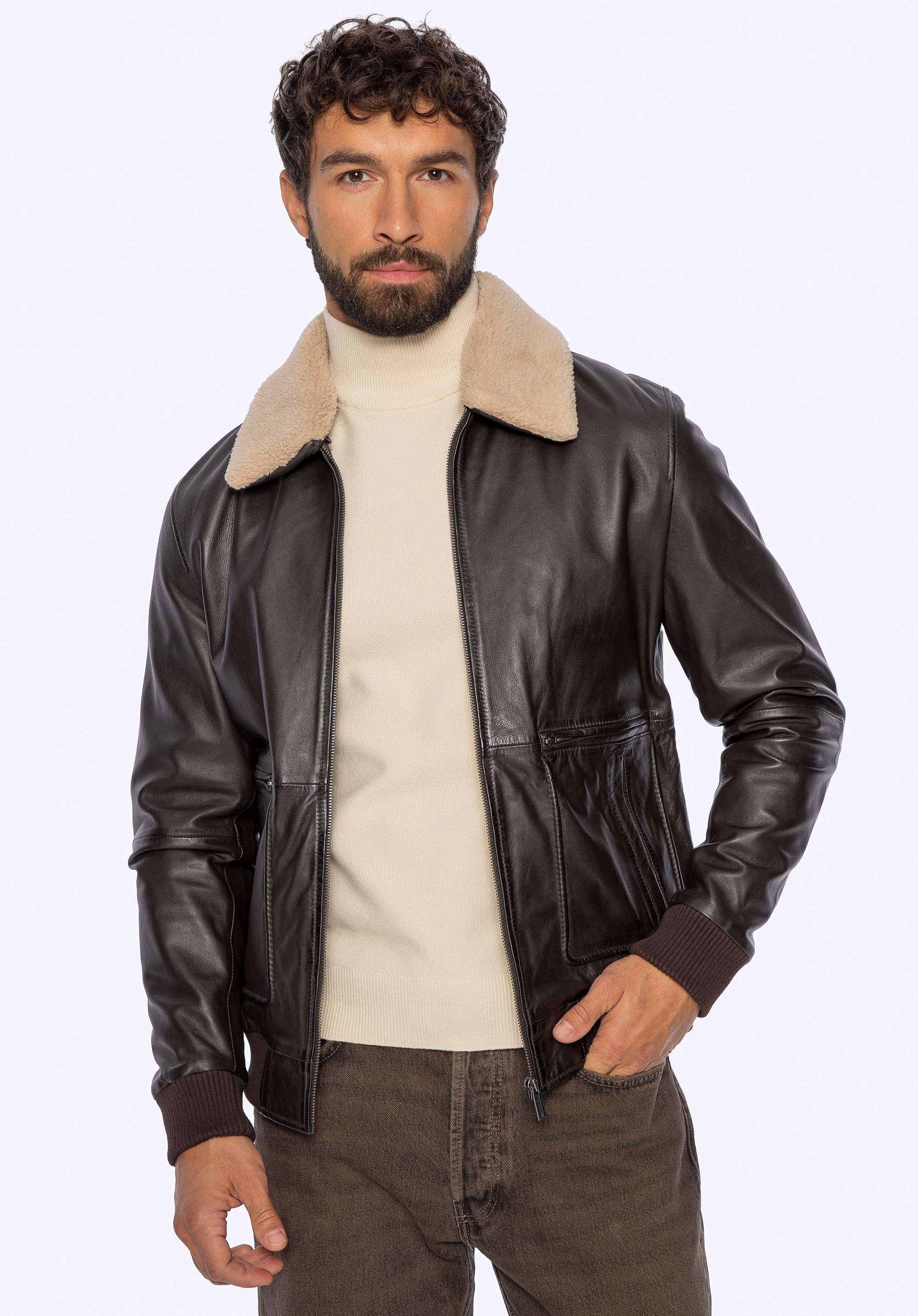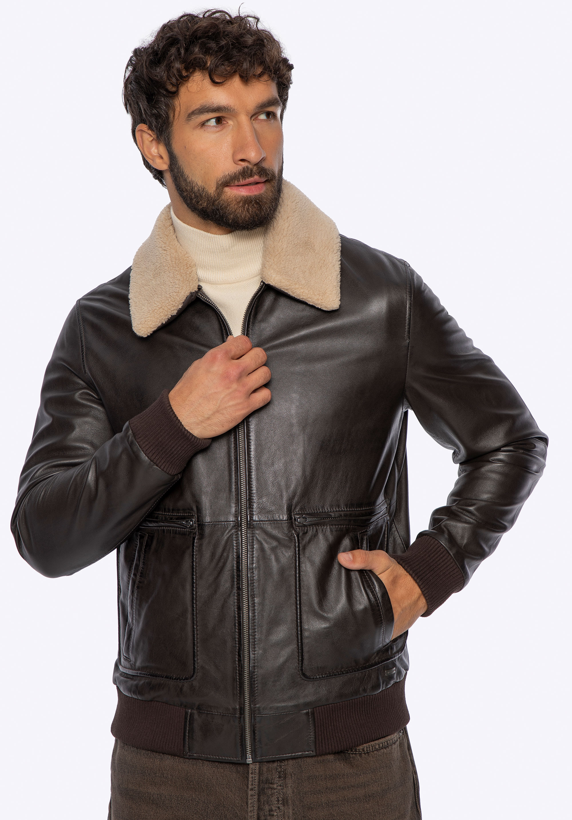 Виберіть куртку, яка підкреслить ваш характер і забезпечить неперевершений комфорт у прохолодні дні. Виготовлена з овечої шкіри, куртка відрізняється м''якістю, міцністю та елегантним оздобленням. Класичний фасон доповнено коміром зі штучного хутра, який додає вишуканості та тепла – за потреби його можна відстебнути, створивши більш мінімалістичний образ. Деталі мають значення: Металевий логотип виробника, розміщений збоку, фірмові блискавки та еластичні манжети на рукавах і внизу куртки підкреслюють її сучасний характер, забезпечуючи при цьому зручність і ідеальну посадку.