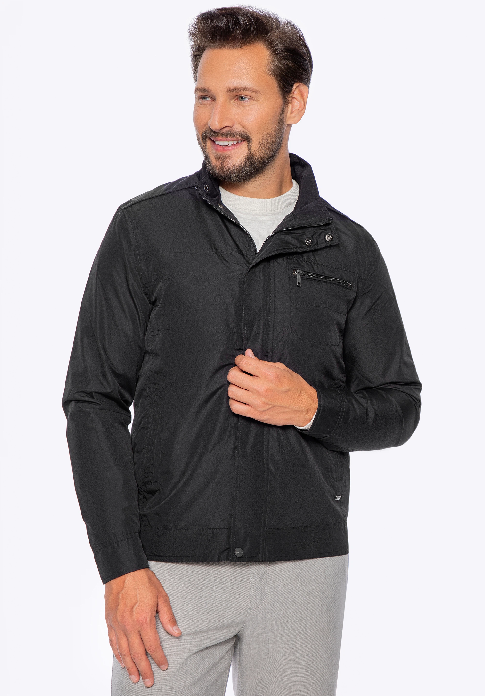 Класична вітровка - це міська куртка, яка відмінно підходить для весняно-літнього сезону. Це забезпечить вам ізоляцію від холоду і вітру, забезпечуючи при цьому достатню вентиляцію. Вона має подвійну застібку: блискавку і застібки, що закрваються панеллю. Додаткові застібки знаходяться на комірі і рукавах. Ви можете зручно заховати руки в дві бічні кишені або засунути туди телефон і ключі. Зліва є ще одна кишеня, цього разу на блискавці. Вітровка - універсальна модель чоловічої куртки, яка сподобається кожному, незалежно від стилю.