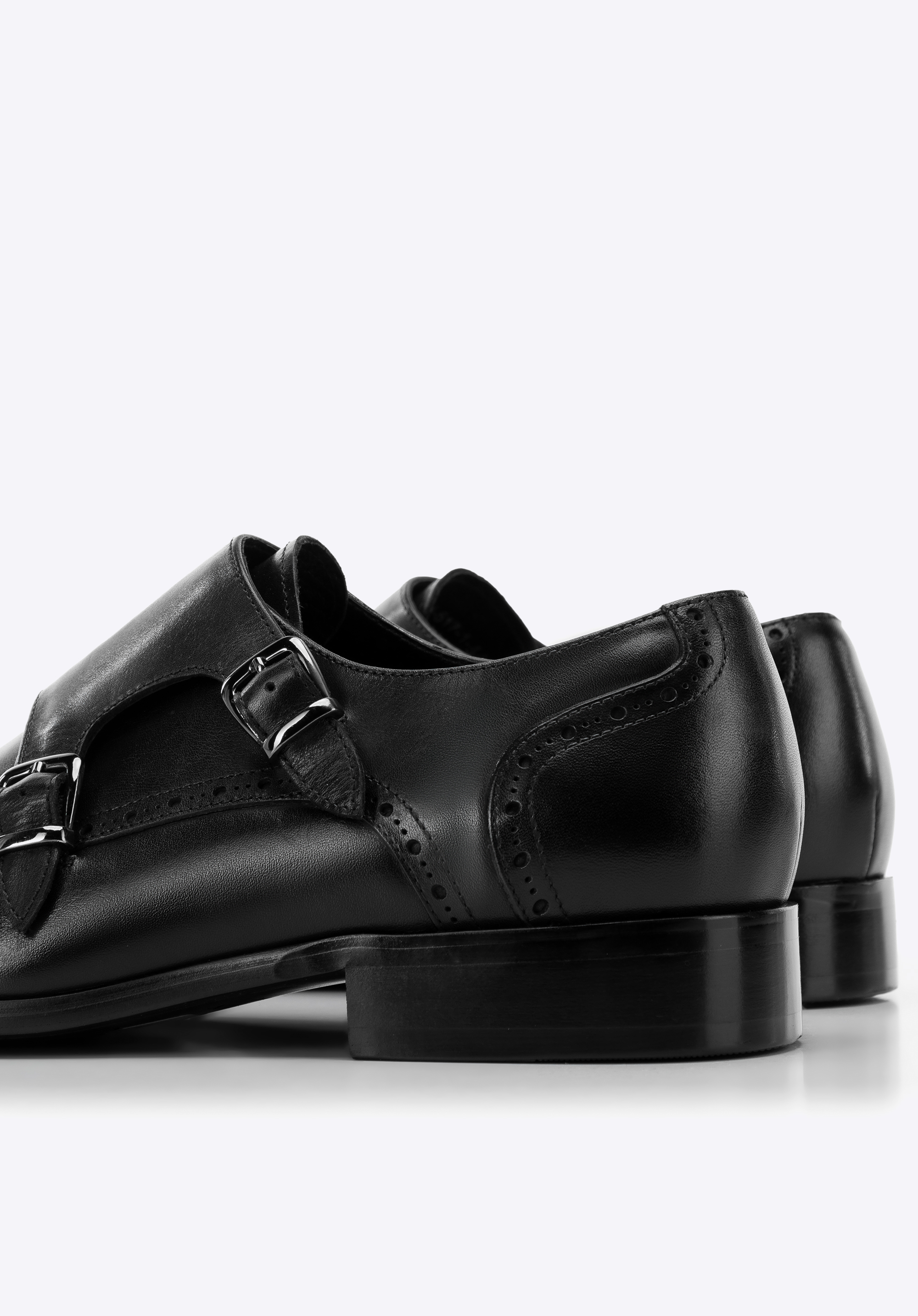 Відкрийте для себе ідеальне поєднання елегантності та комфорту в розкішних чоловічих напівчеревиках-монках. Виготовлені з натуральної шкіри преміум-класу, це взуття може похвалитися вишуканим стилем, довговічністю та увагою до деталей. Мигдалеподібний носок надає їм витонченого вигляду, а ледь помітна перфорація додає легкого та неповторного відтінку. Дві елегантні пряжки роблять їх ідеальним вибором для чоловіків, які цінують шик і стиль.