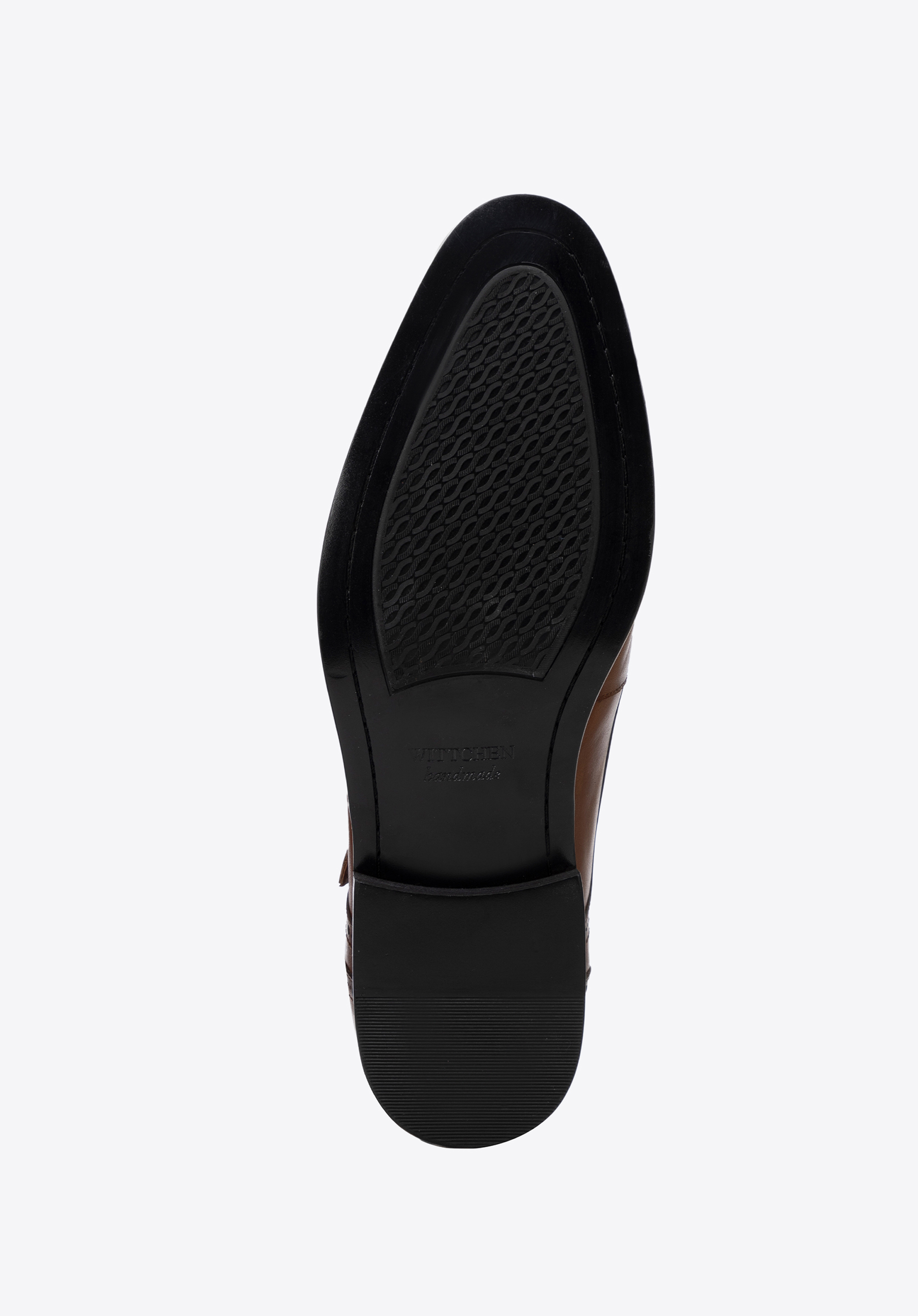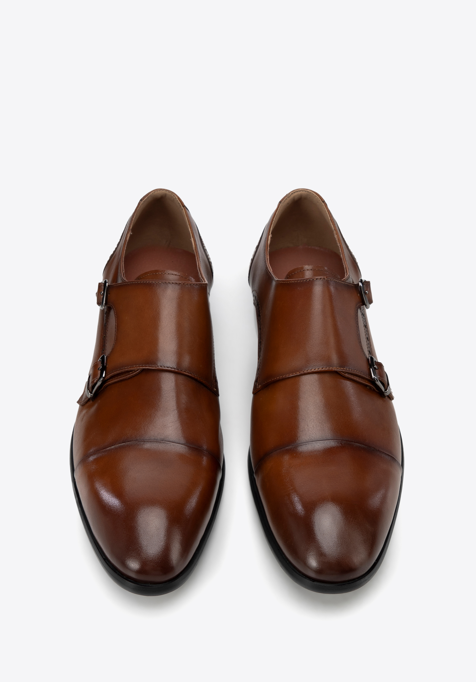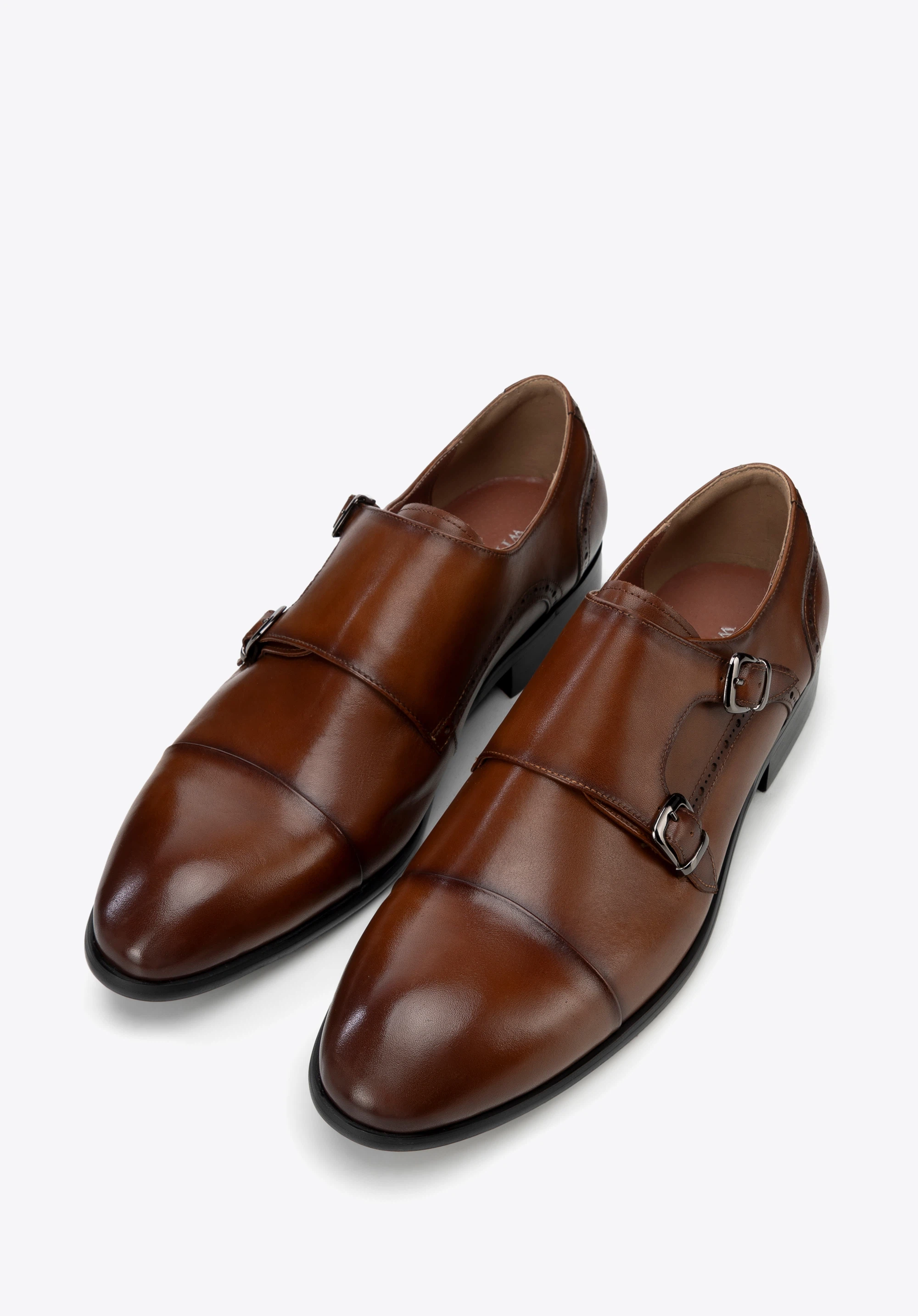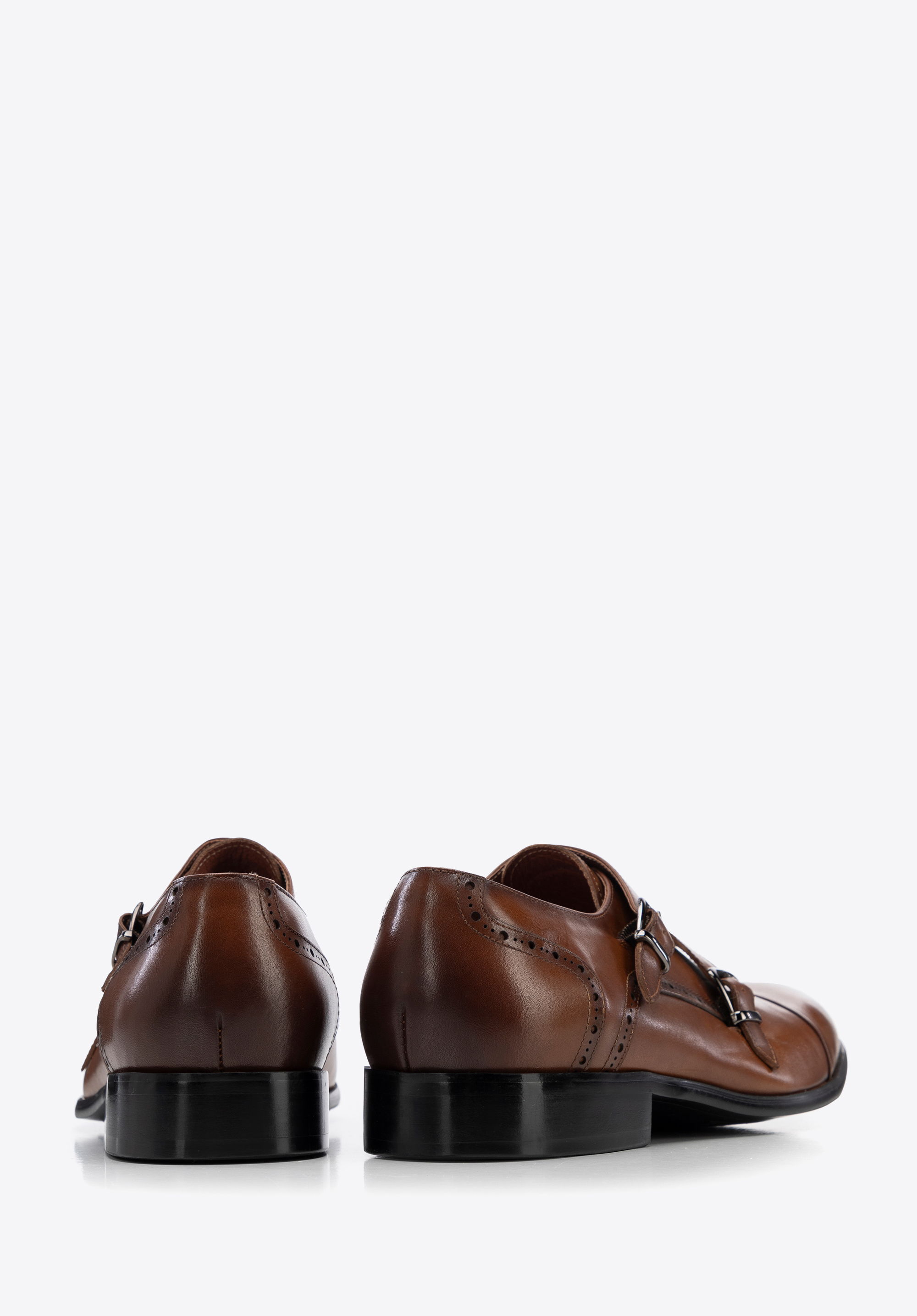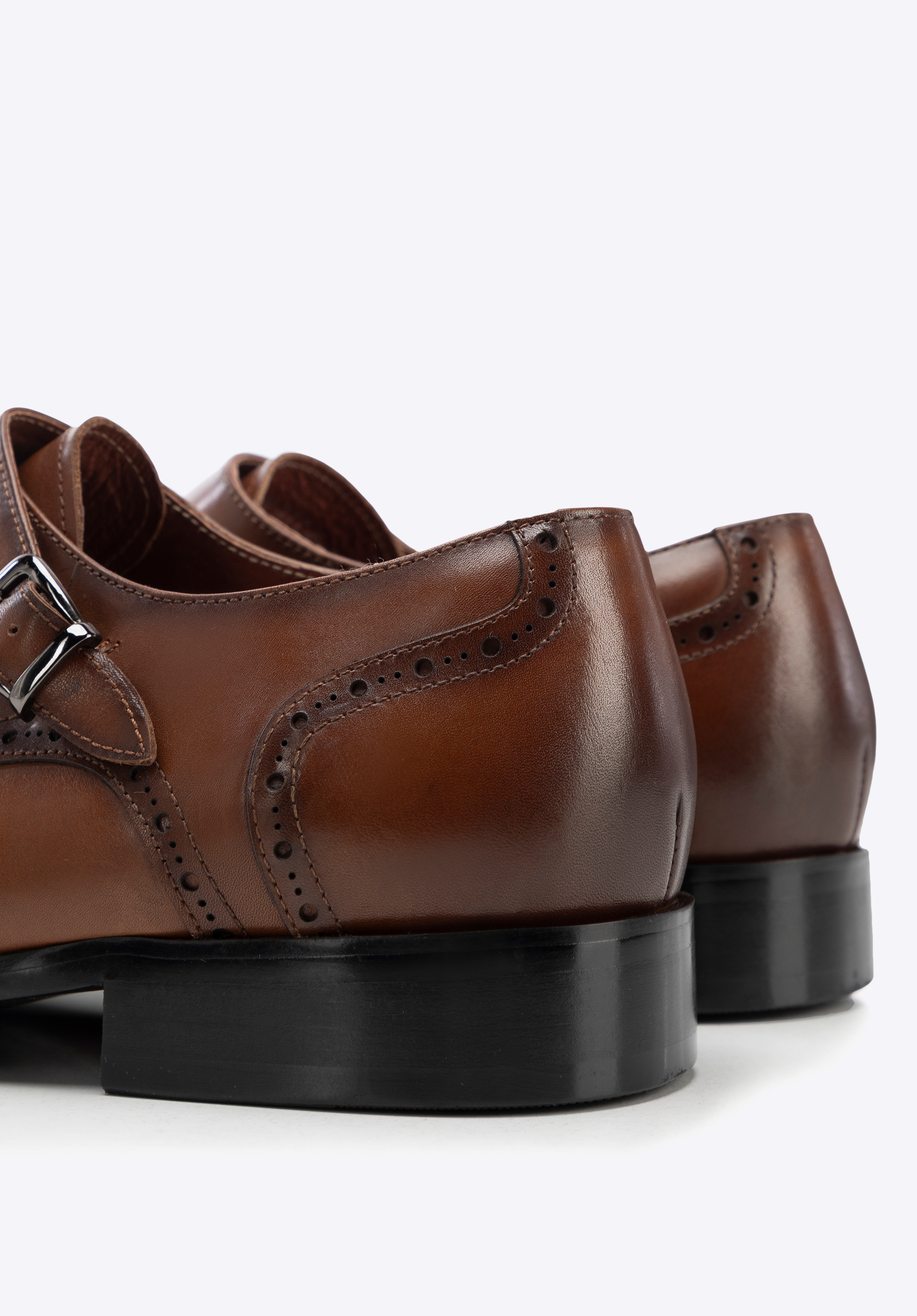 Відкрийте для себе ідеальне поєднання елегантності та комфорту в розкішних чоловічих напівчеревиках-монках. Виготовлені з натуральної шкіри преміум-класу, це взуття може похвалитися вишуканим стилем, довговічністю та увагою до деталей. Мигдалеподібний носок надає їм витонченого вигляду, а ледь помітна перфорація додає легкого та неповторного відтінку. Дві елегантні пряжки роблять їх ідеальним вибором для чоловіків, які цінують шик і стиль.