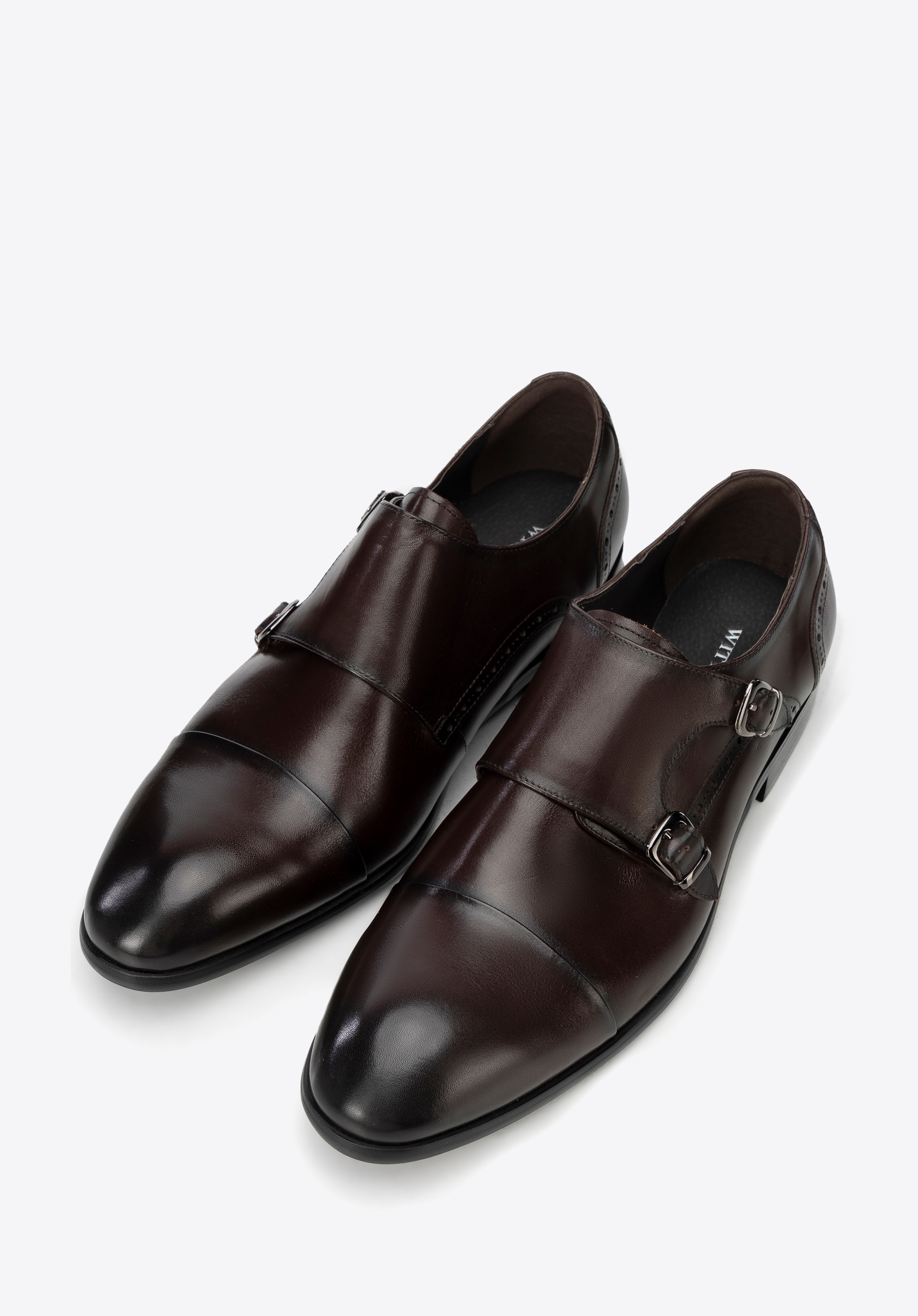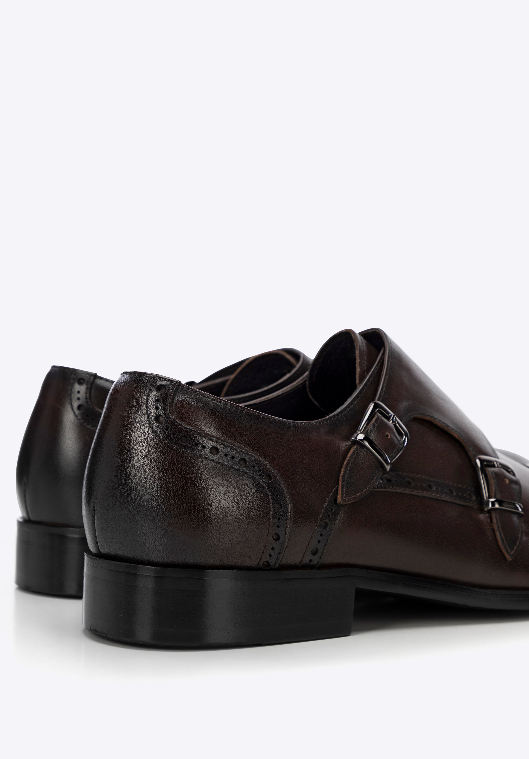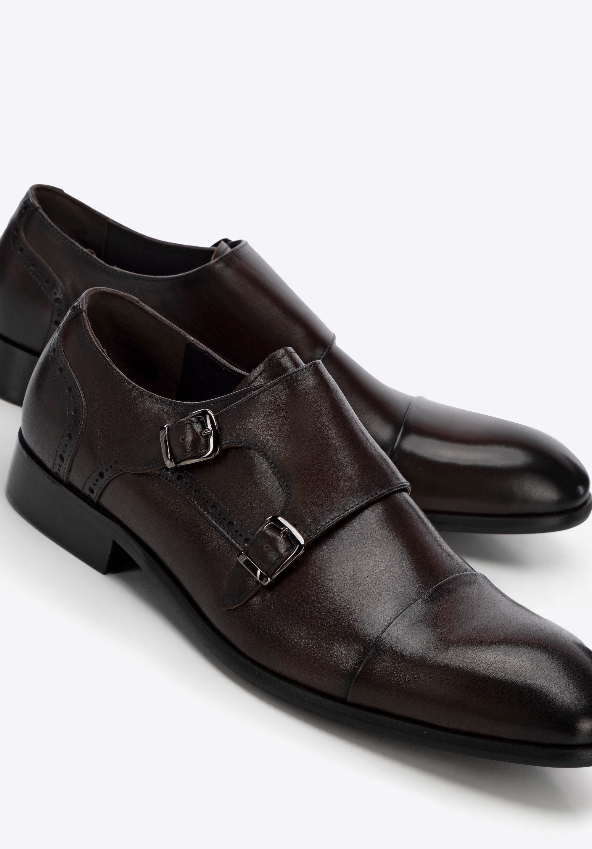 Відкрийте для себе ідеальне поєднання елегантності та комфорту в розкішних чоловічих напівчеревиках-монках. Виготовлені з натуральної шкіри преміум-класу, це взуття може похвалитися вишуканим стилем, довговічністю та увагою до деталей. Мигдалеподібний носок надає їм витонченого вигляду, а ледь помітна перфорація додає легкого та неповторного відтінку. Дві елегантні пряжки роблять їх ідеальним вибором для чоловіків, які цінують шик і стиль.