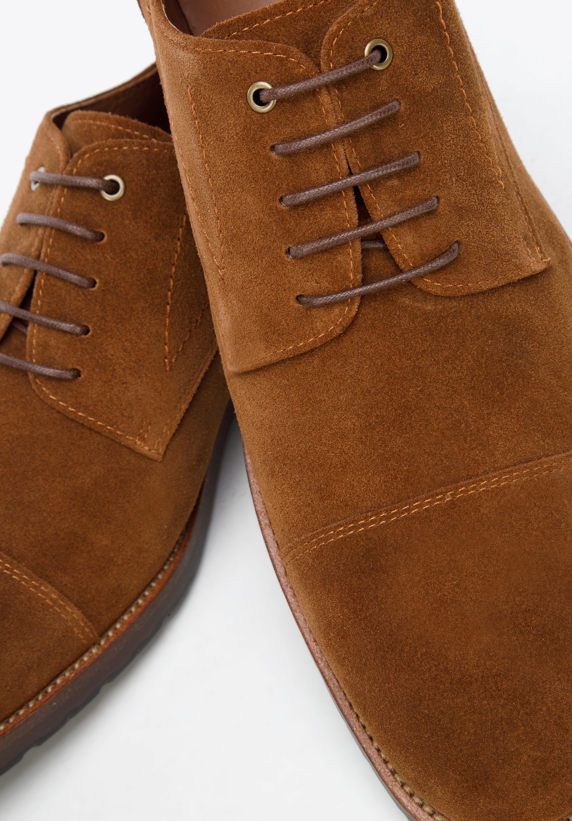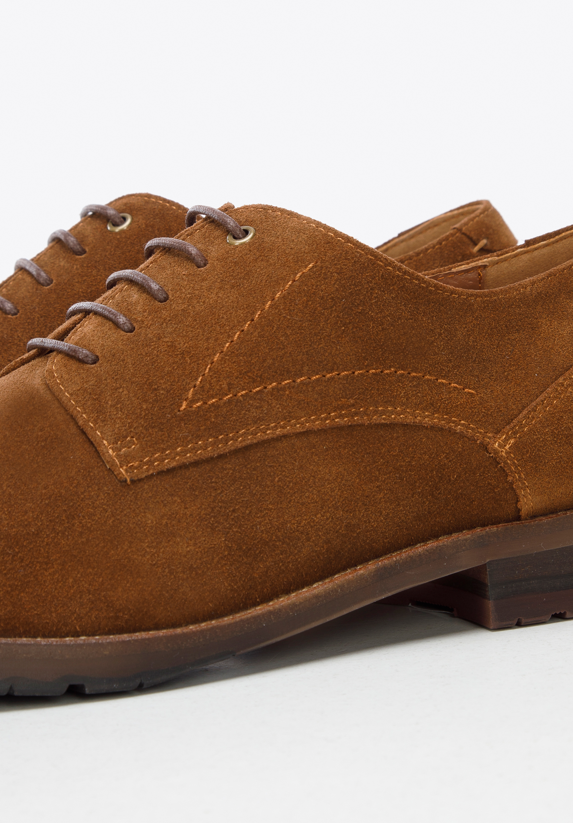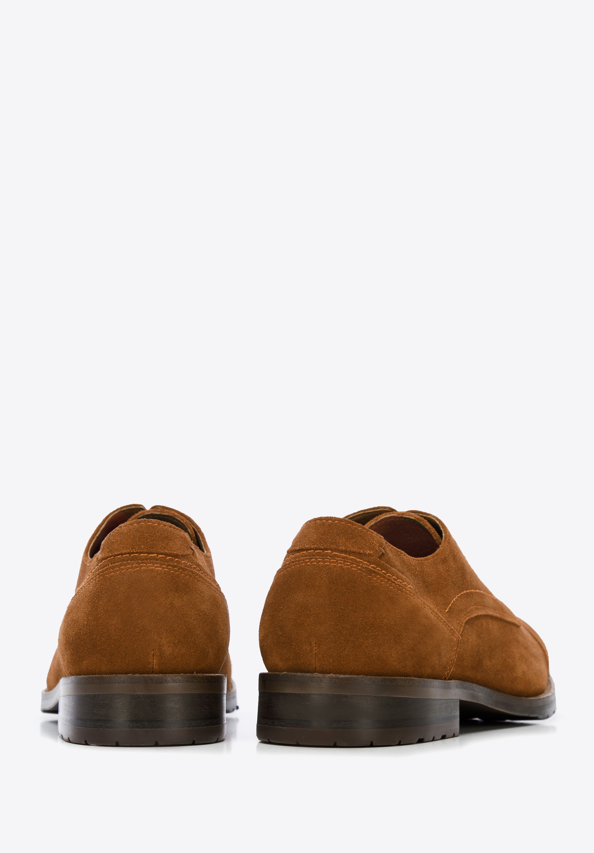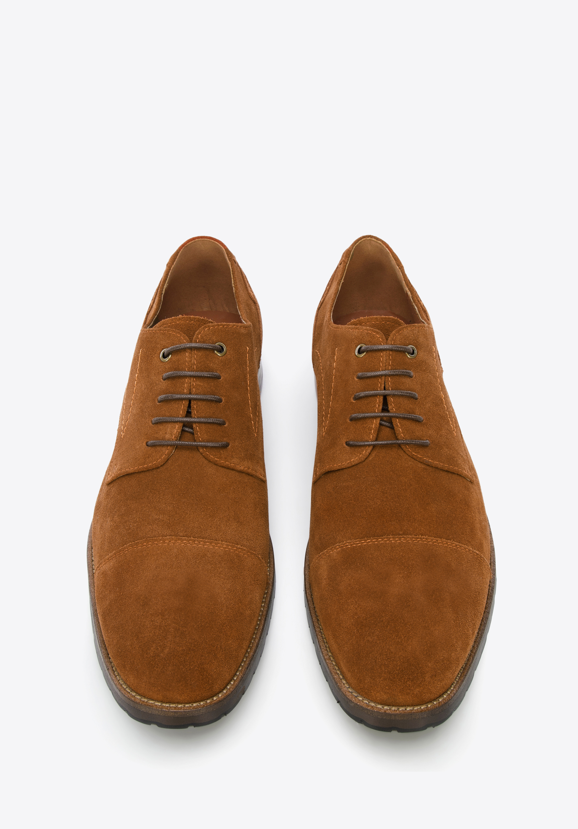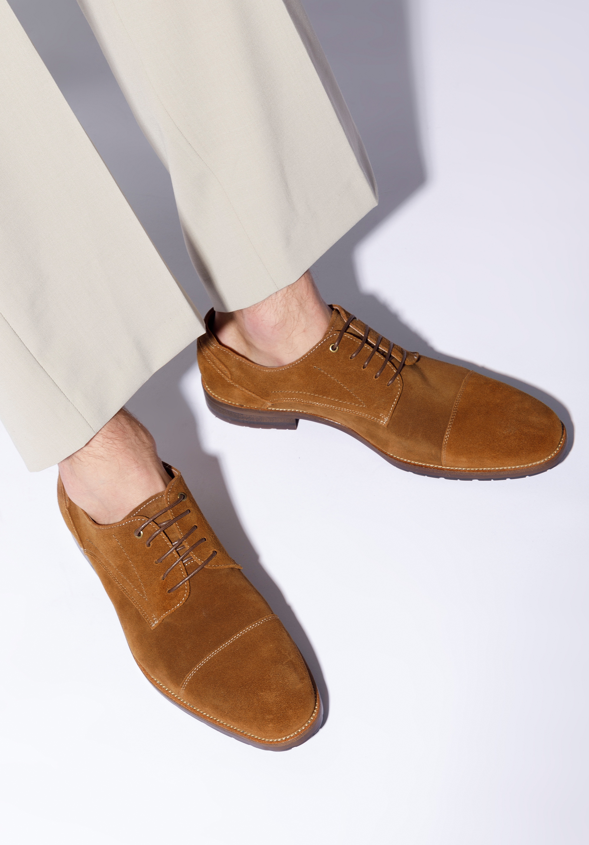 Ці шикарні чоловічі черевики дербі внесуть новий стиль у ваш гардероб. Вони виготовлені з високоякісної замшевої шкіри. Декоративні шви на шнурках і на задній частині взуття додають характеру. Підошва з канавками забезпечить хороше зчеплення, а завдяки м''якій устілці в них комфортно ходити багато годин. Ця модель доступна в багатьох кольорах, завдяки чому ви можете доповнити ними практично будь-який стиль: від улюблених джинсів і светра до комплекту з брюками чінос і сорочкою. Чоловіче замшеве дербі — чудовий вибір для багатьох випадків, для кожного стильного чоловіка.