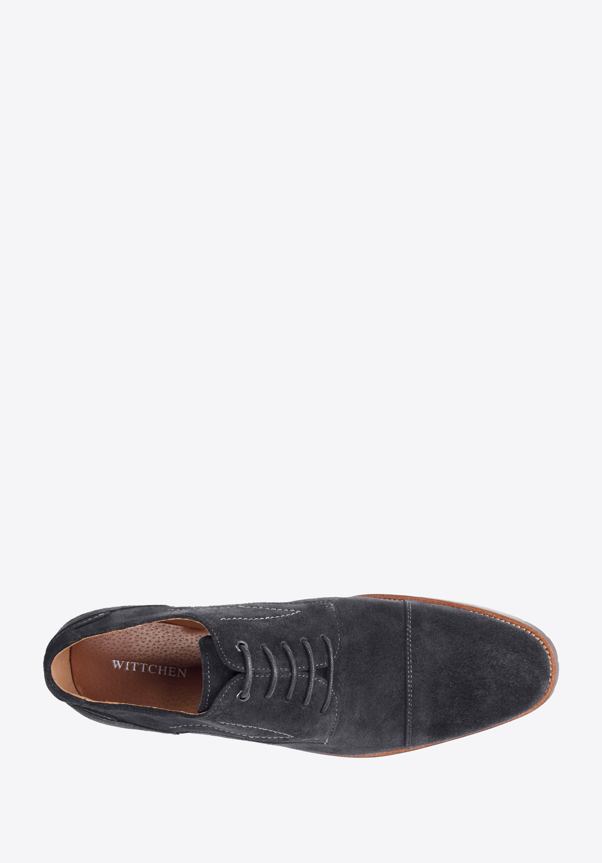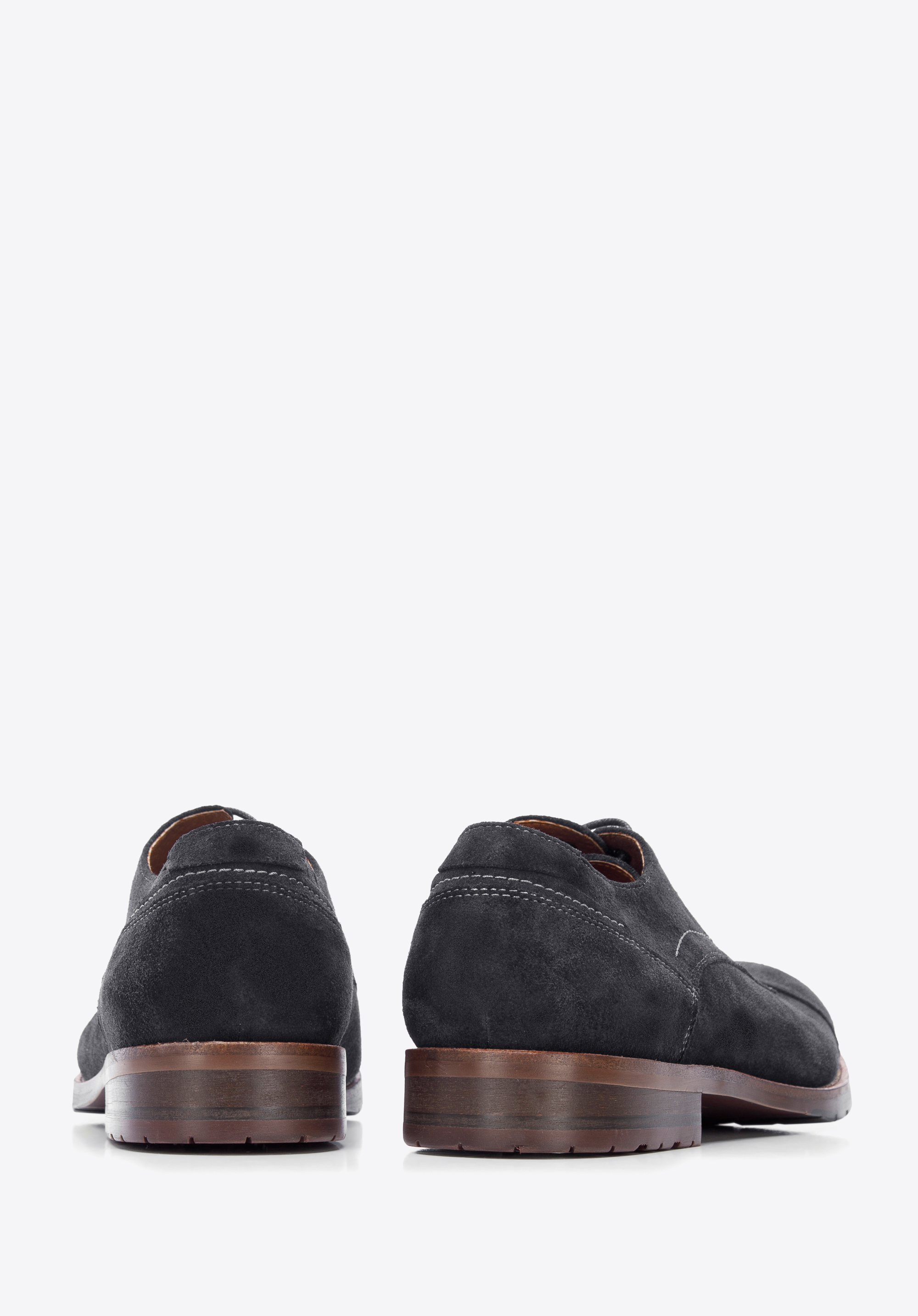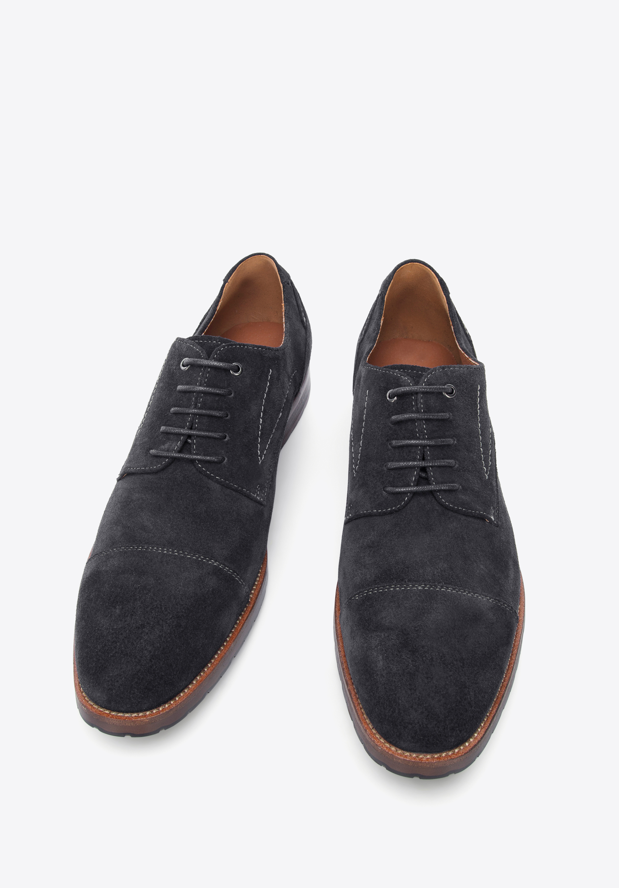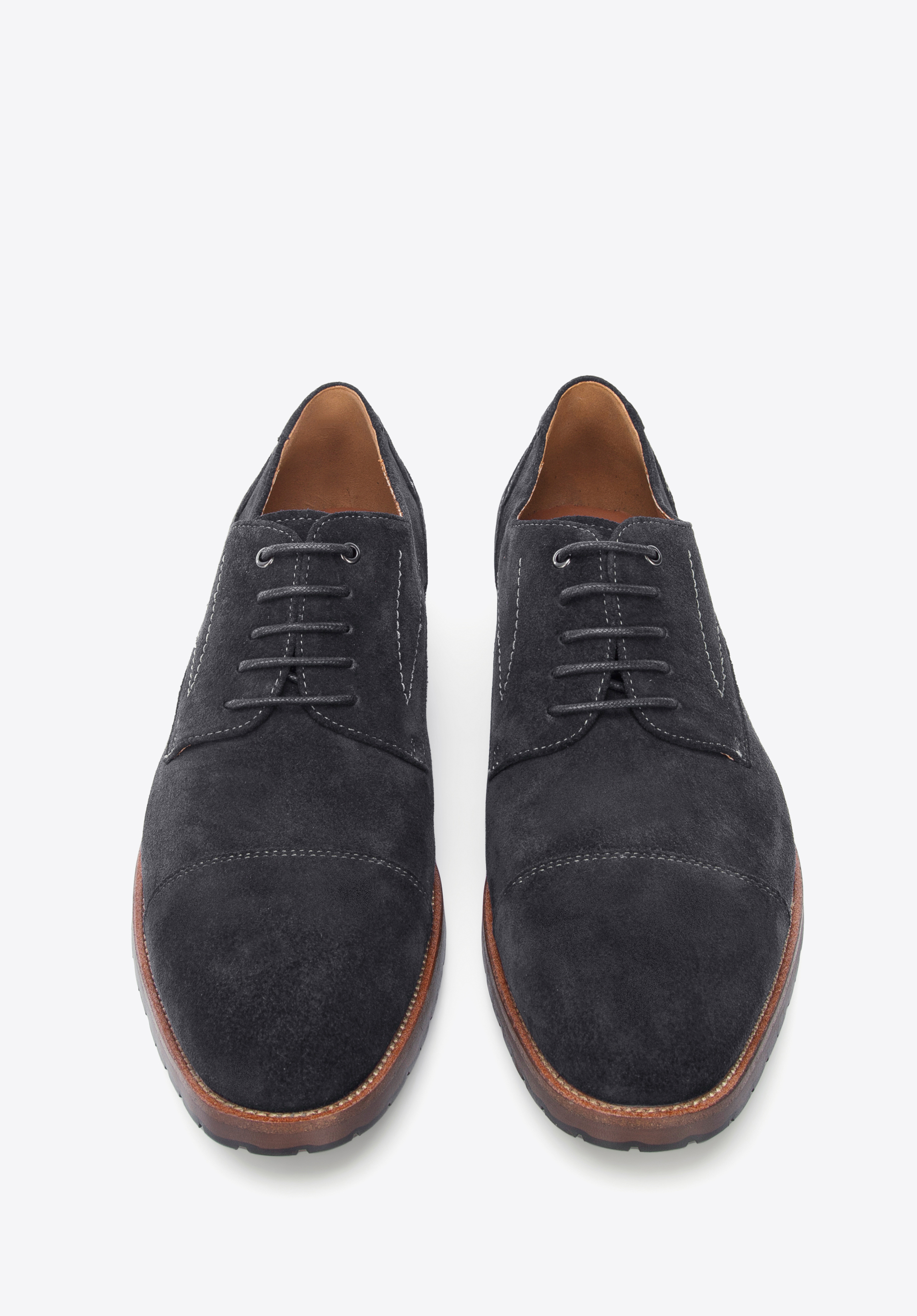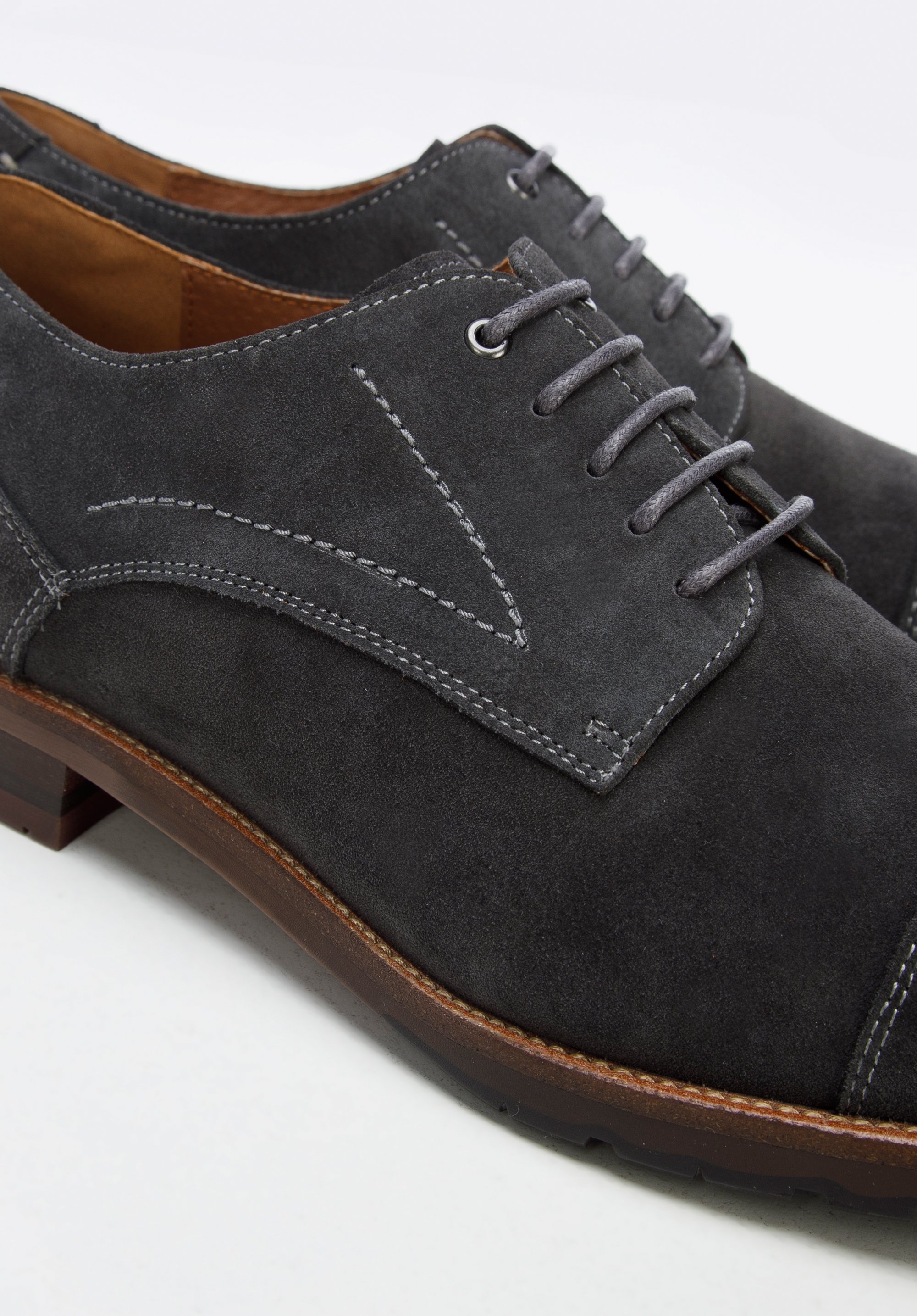Ці шикарні чоловічі черевики дербі внесуть новий стиль у ваш гардероб. Вони виготовлені з високоякісної замшевої шкіри. Декоративні шви на шнурках і на задній частині взуття додають характеру. Підошва з канавками забезпечить хороше зчеплення, а завдяки м''якій устілці в них комфортно ходити багато годин. Ця модель доступна в багатьох кольорах, завдяки чому ви можете доповнити ними практично будь-який стиль: від улюблених джинсів і светра до комплекту з брюками чінос і сорочкою. Чоловіче замшеве дербі — чудовий вибір для багатьох випадків, для кожного стильного чоловіка.