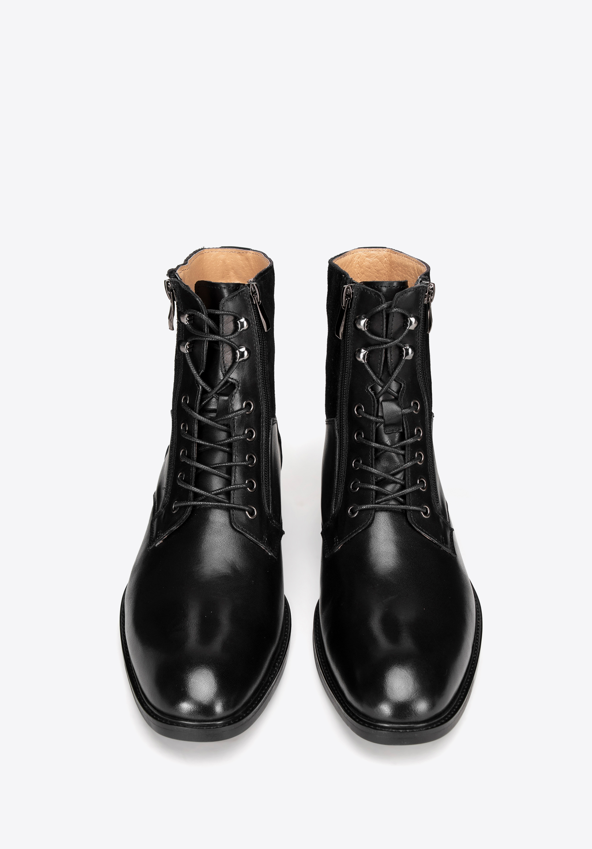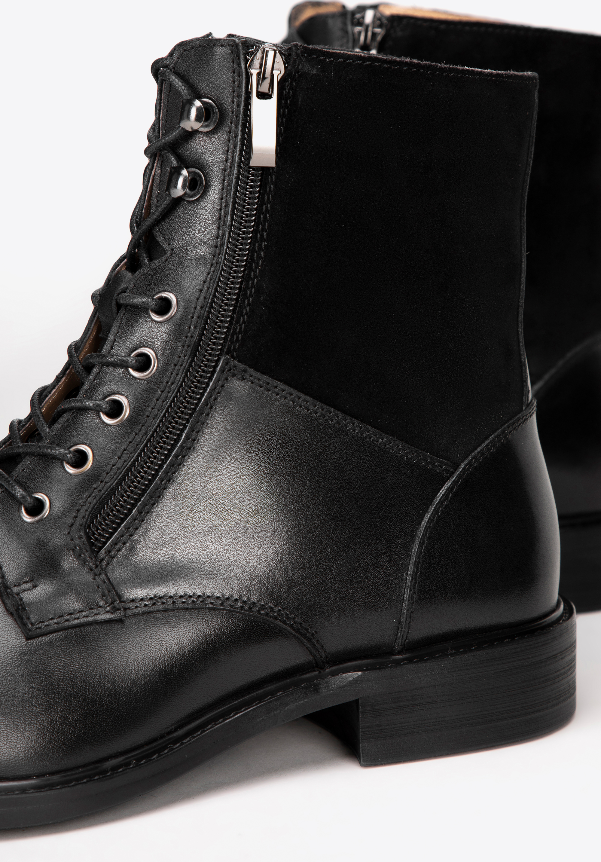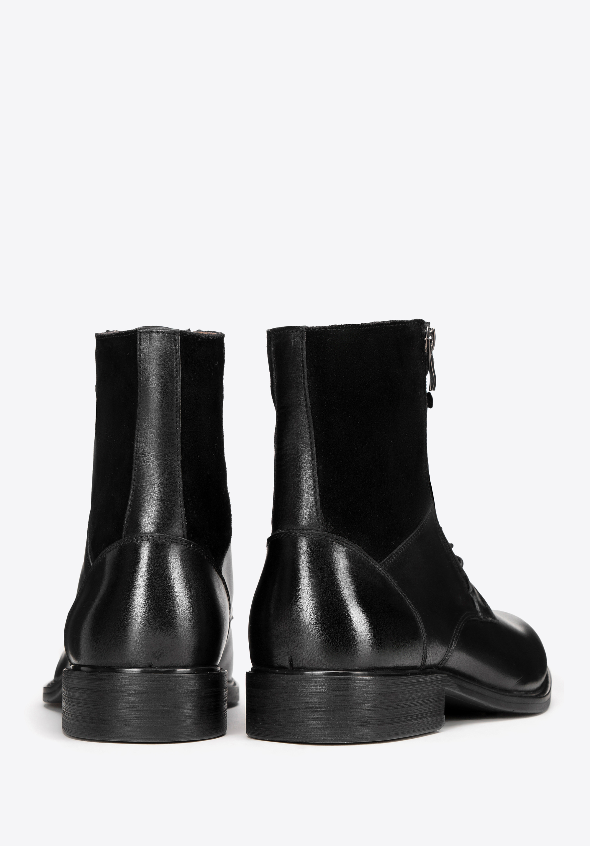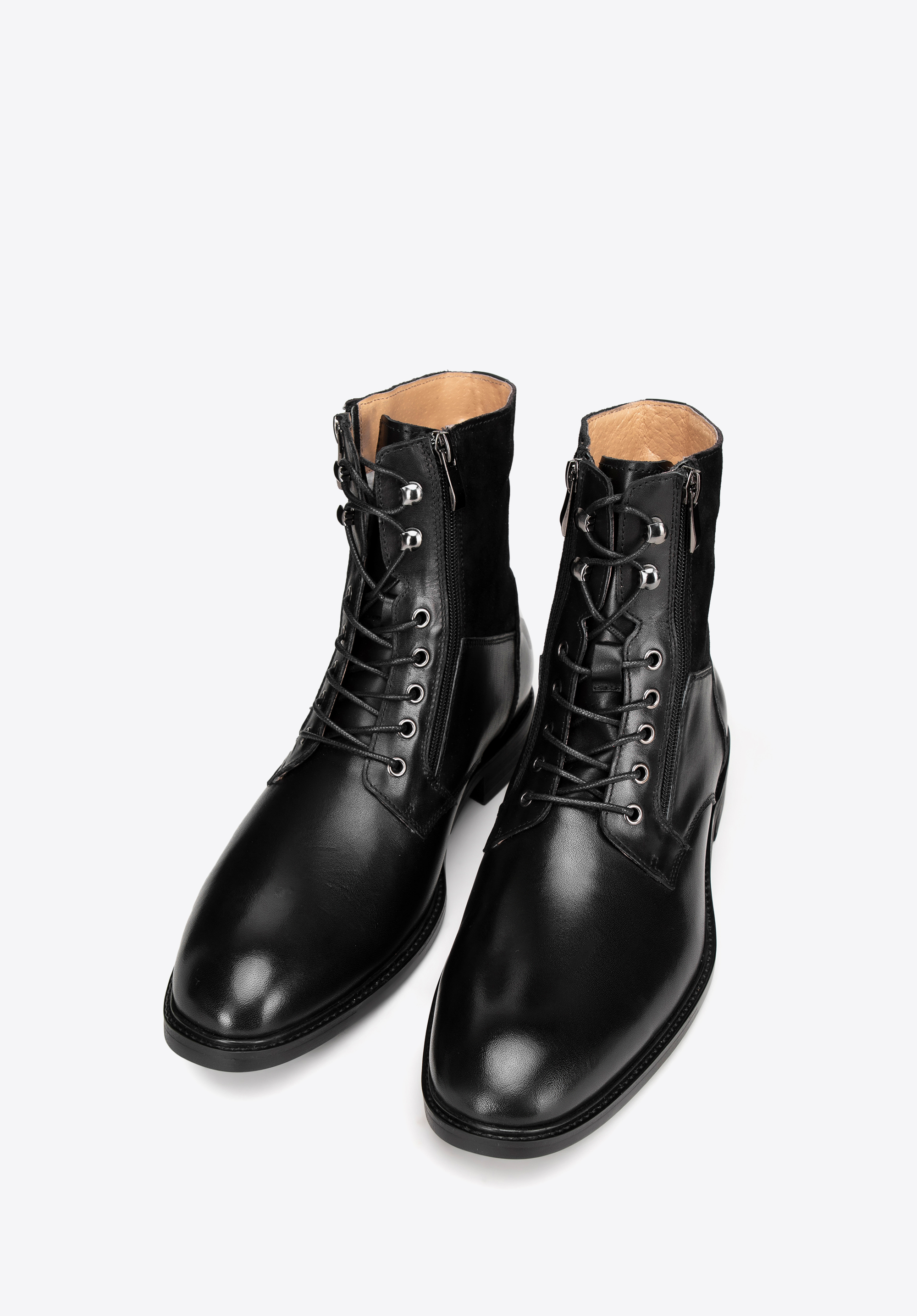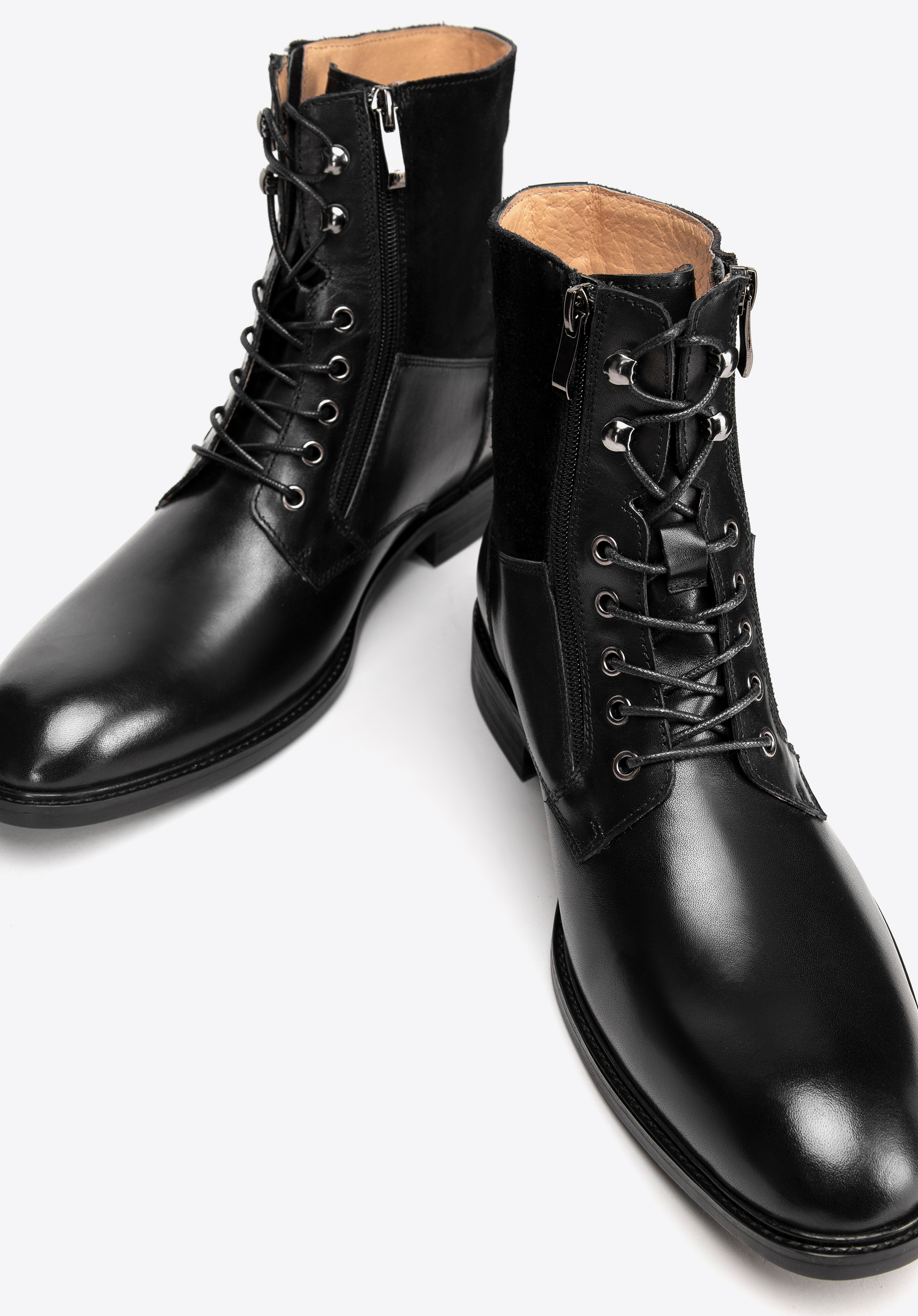 Матеріал: поєднання замші та натуральної шкіри пропонує елегантне поєднання текстур, що додає характеру черевикам.