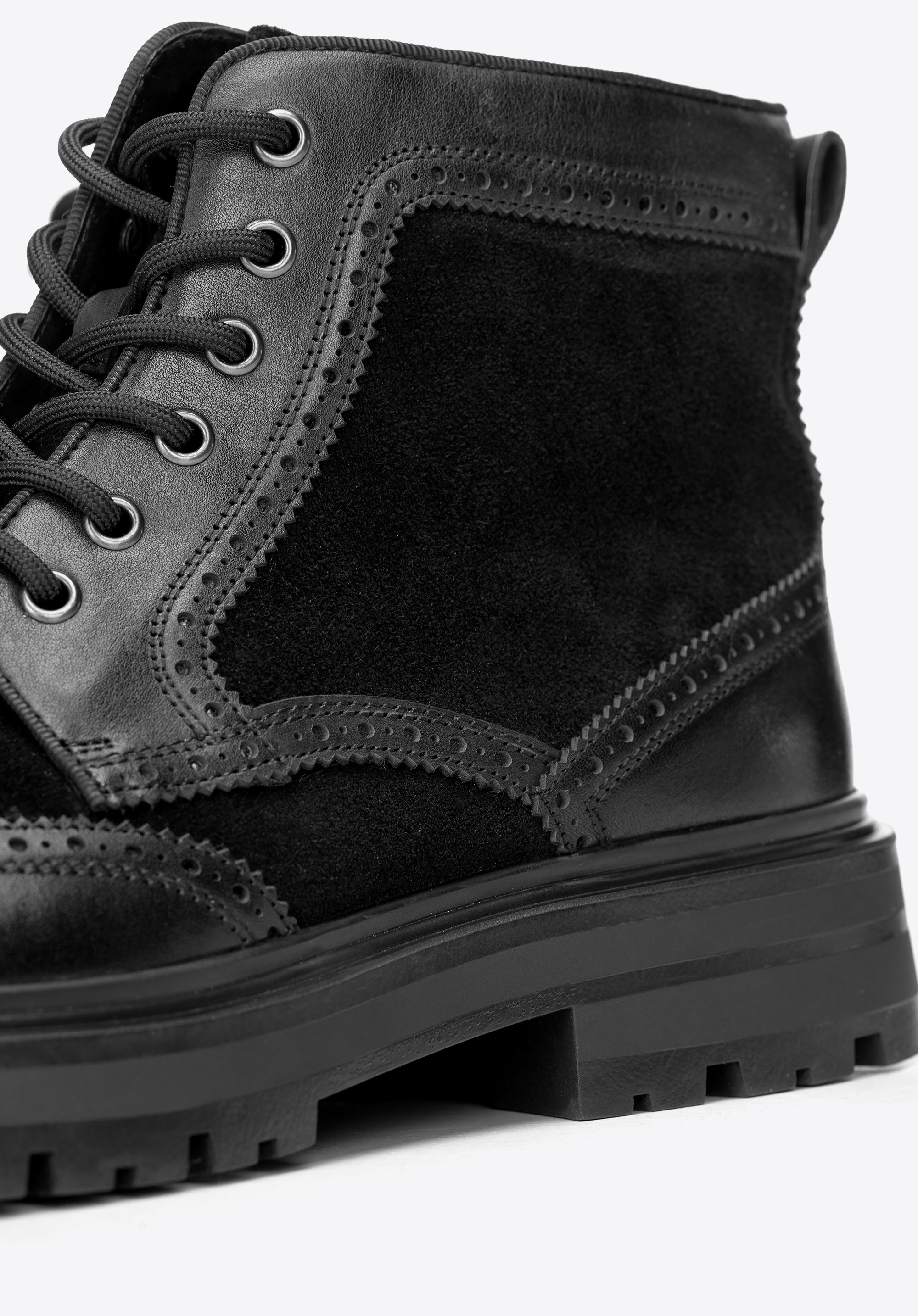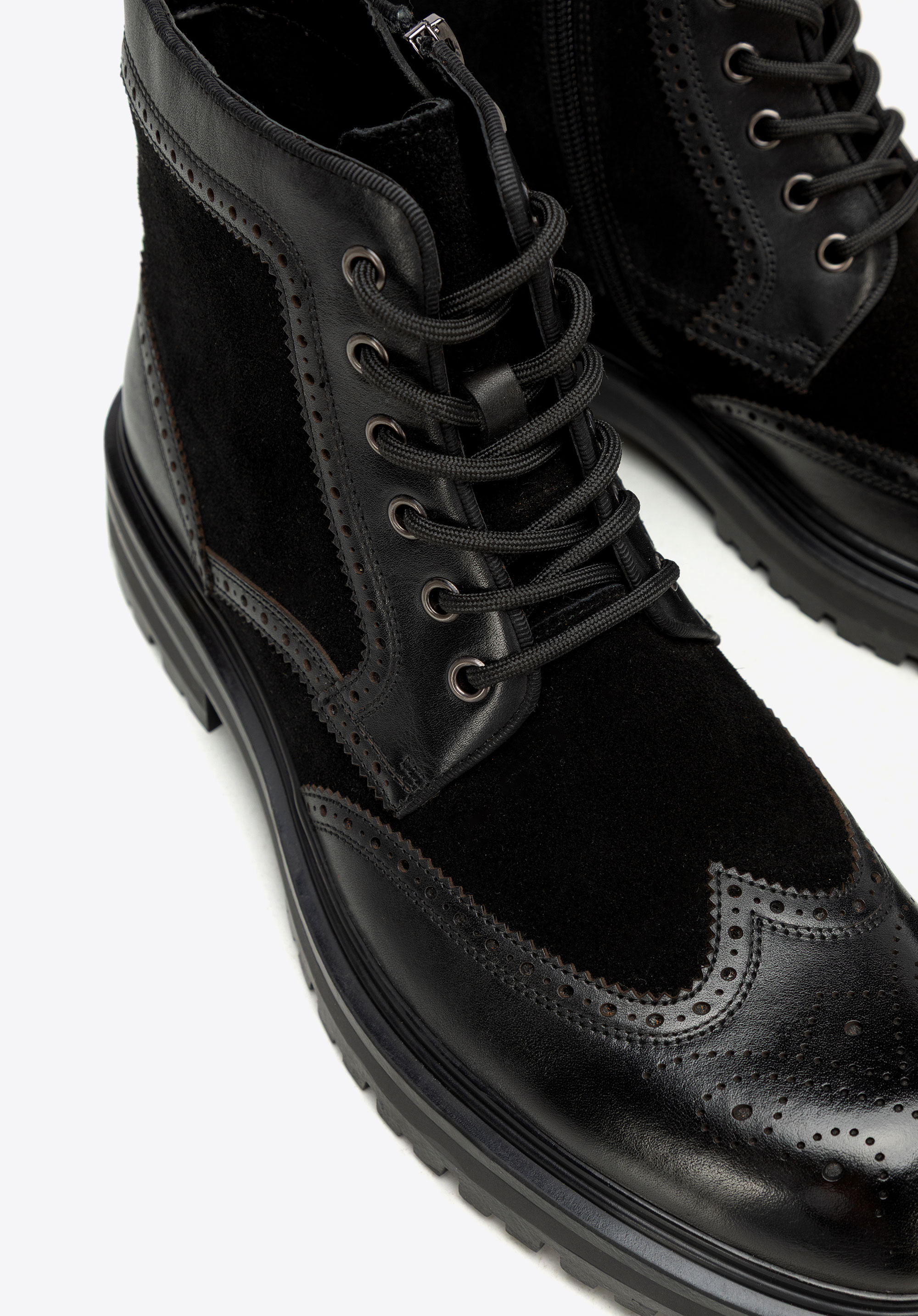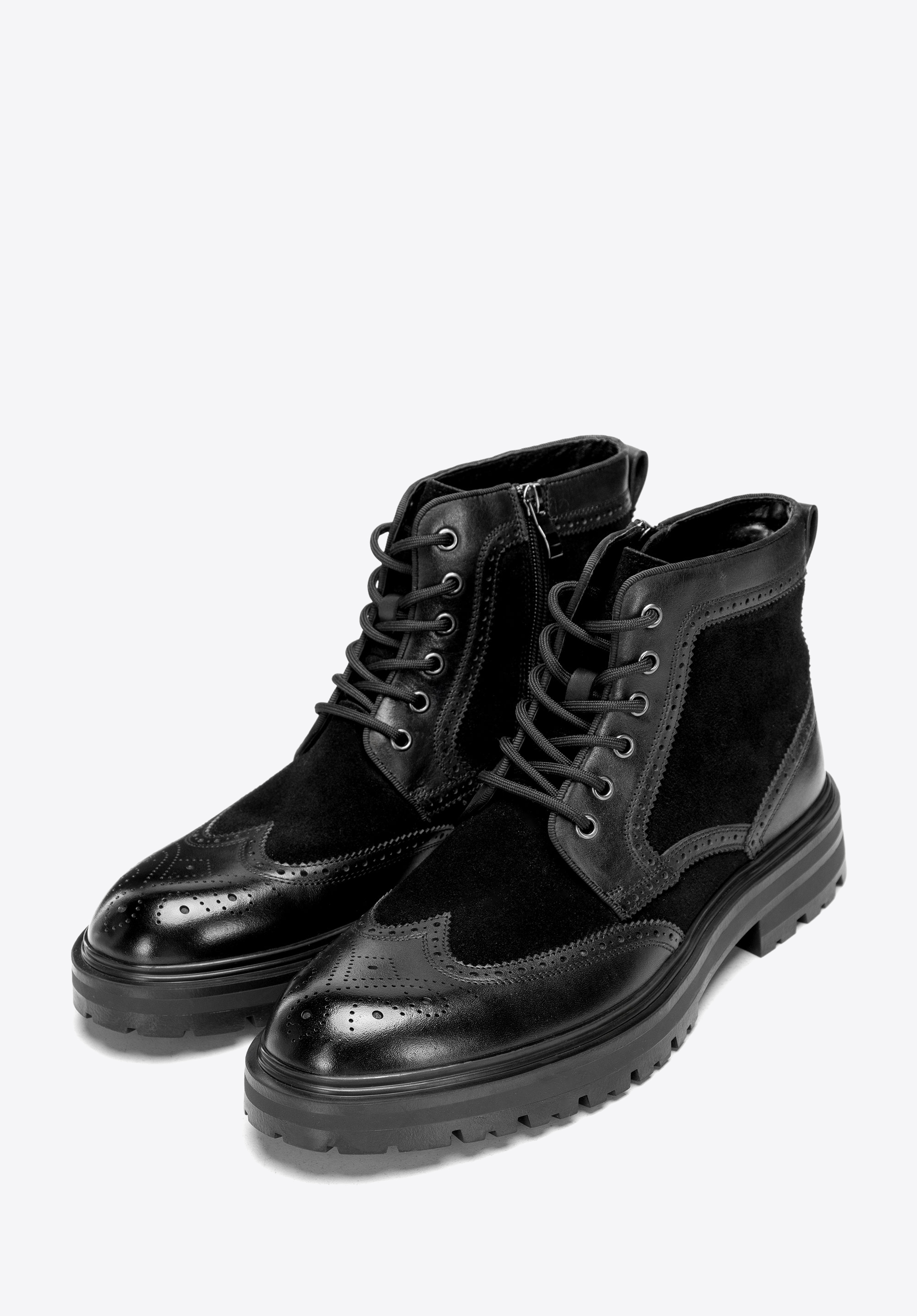 Чоловічі черевики з натуральної шкіри з перфорацією Колір: чорний