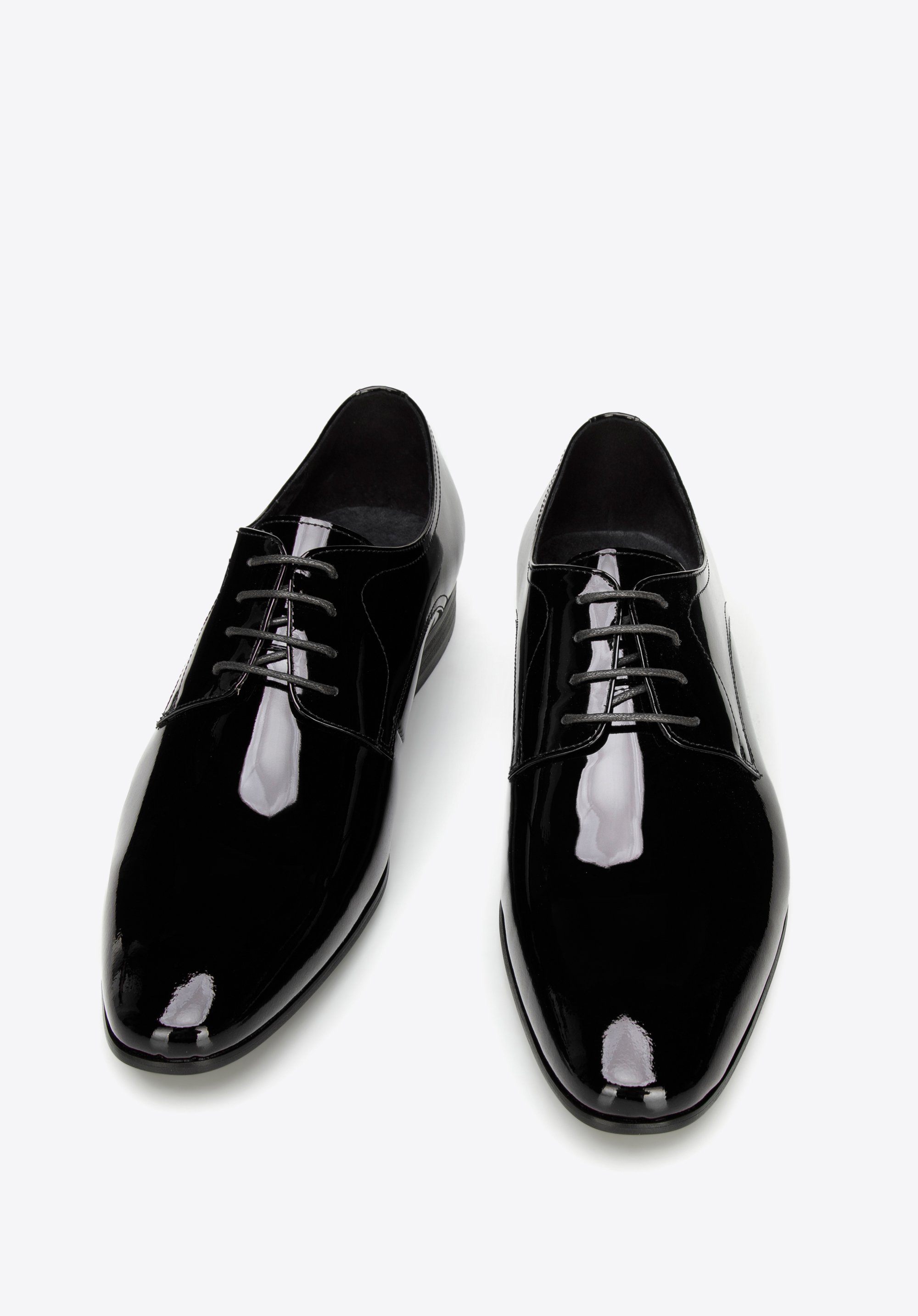 Це надзвичайно шикарне взуття чудово підкреслить ваш образ на будь-якому вишуканому святі. Вони виготовлені з високоякісної лакованої шкіри, тому прослужать вам довгі роки. Вони мають трохи подовжений мигдалеподібний носок і прямий фасон, який звужує стопу. Завдяки шкіряній устілці і м''якій підкладці в них можна комфортно ходити і танцювати багато годин. Чоловічі лаковані туфлі дербі чудово виглядатимуть з костюмом, який ви одягнете на весілля або ділову зустріч друзів. Ця вічна модель завжди буде модною.