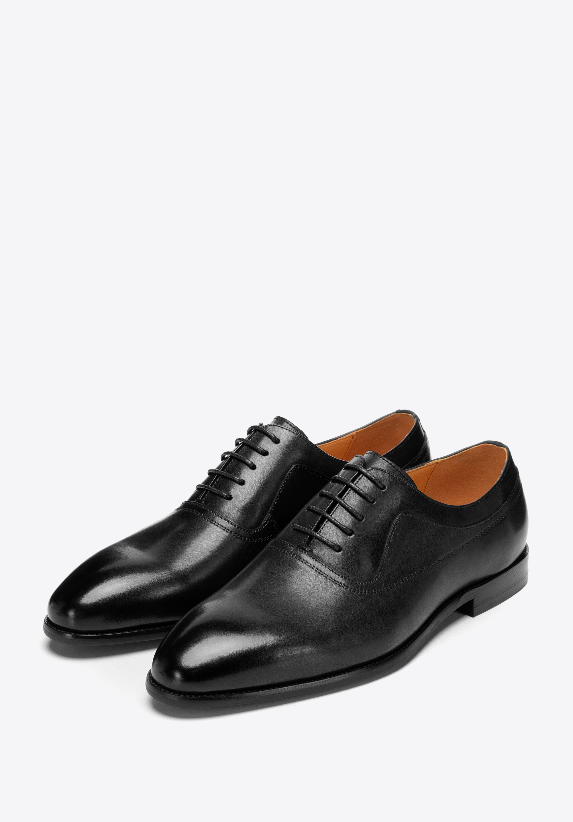 Відкрийте для себе чоловіче класичне взуття, яке ідеально поєднує класичну вишуканість з повсякденним комфортом. Виготовлене з натуральної шкіри, воно може похвалитися вишуканою естетикою та ретельною обробкою. Закрита носова частина гарантує ідеальне прилягання до стопи, а мигдалеподібний носок надає взуттю струнку лінію та тонко підкреслює його елегантний характер. Шнурівка дозволяє точно підігнати взуття до стопи, забезпечуючи комфорт протягом усього дня.