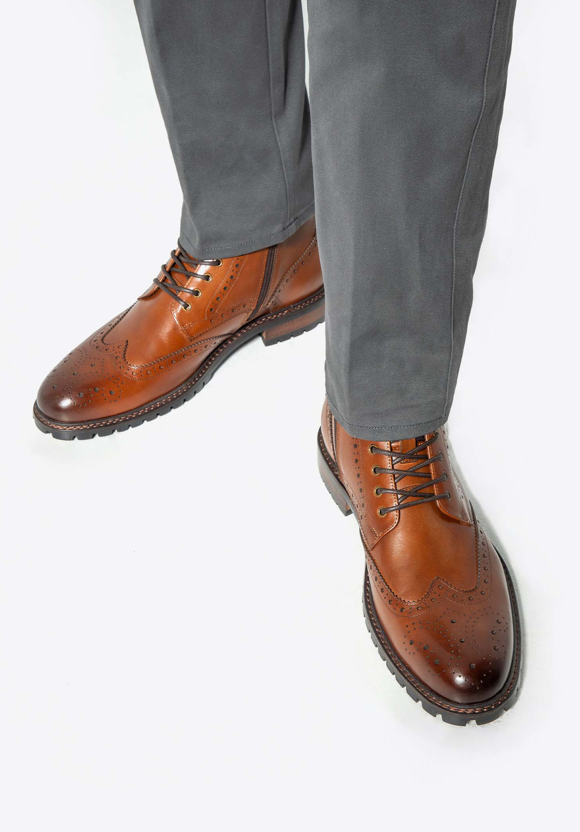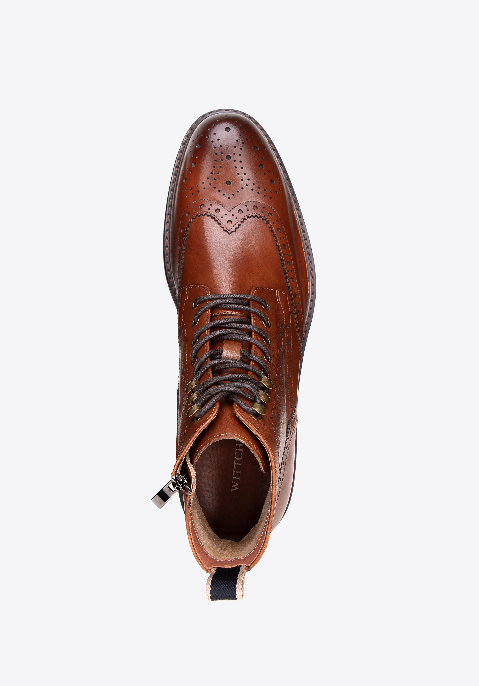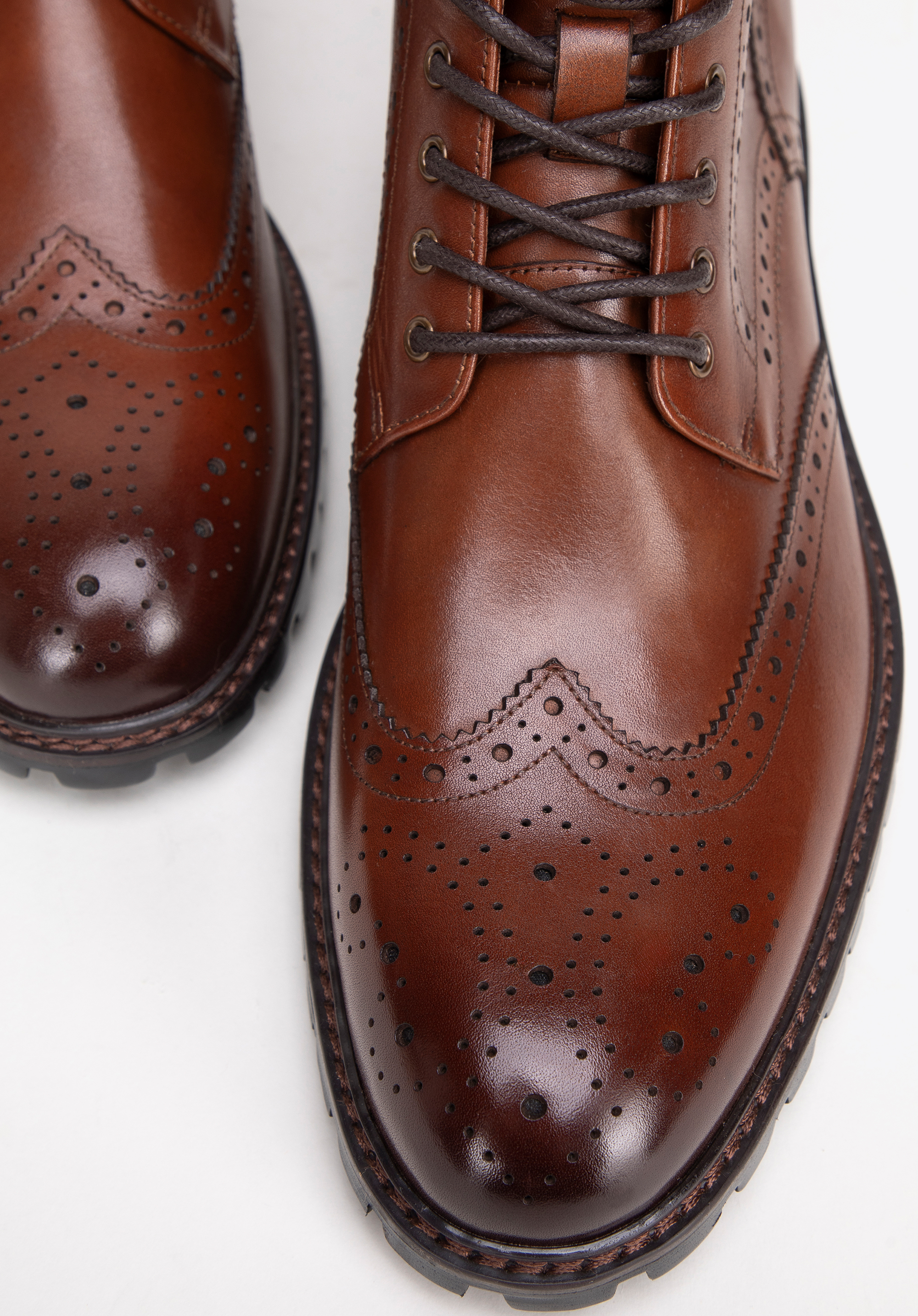 Чоловічі перфоровані шкіряні черевики на шнурівці Колір: коричневий