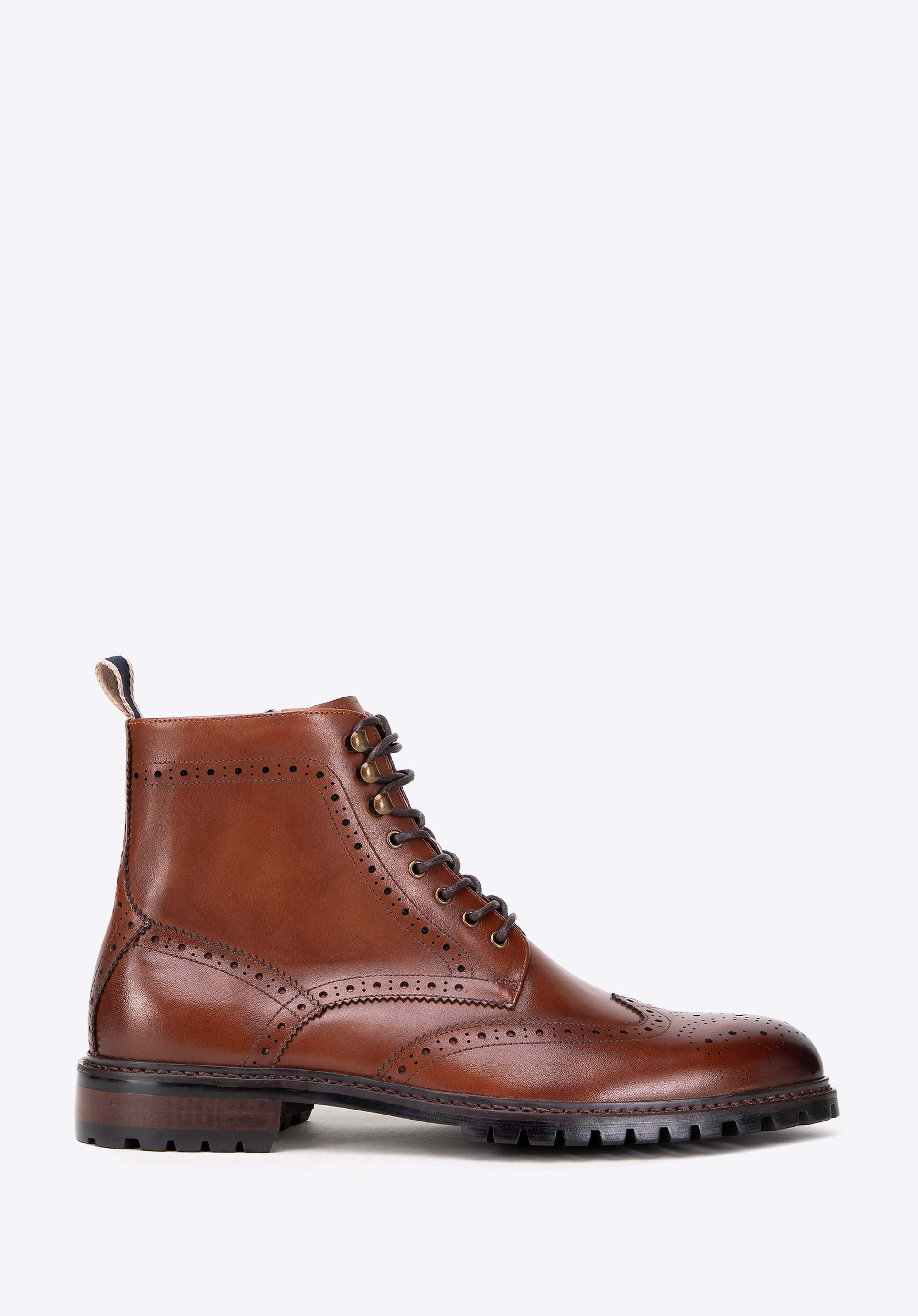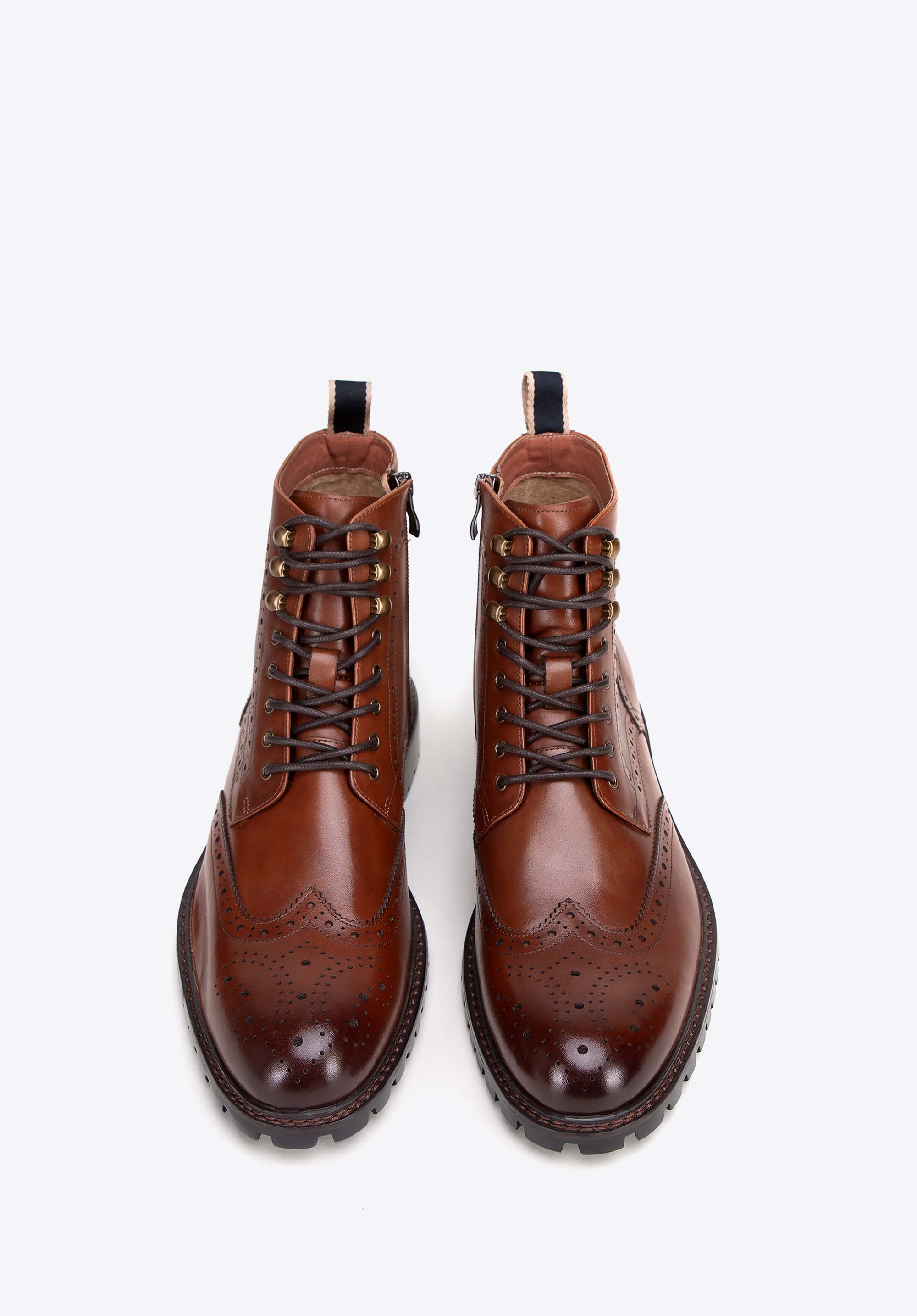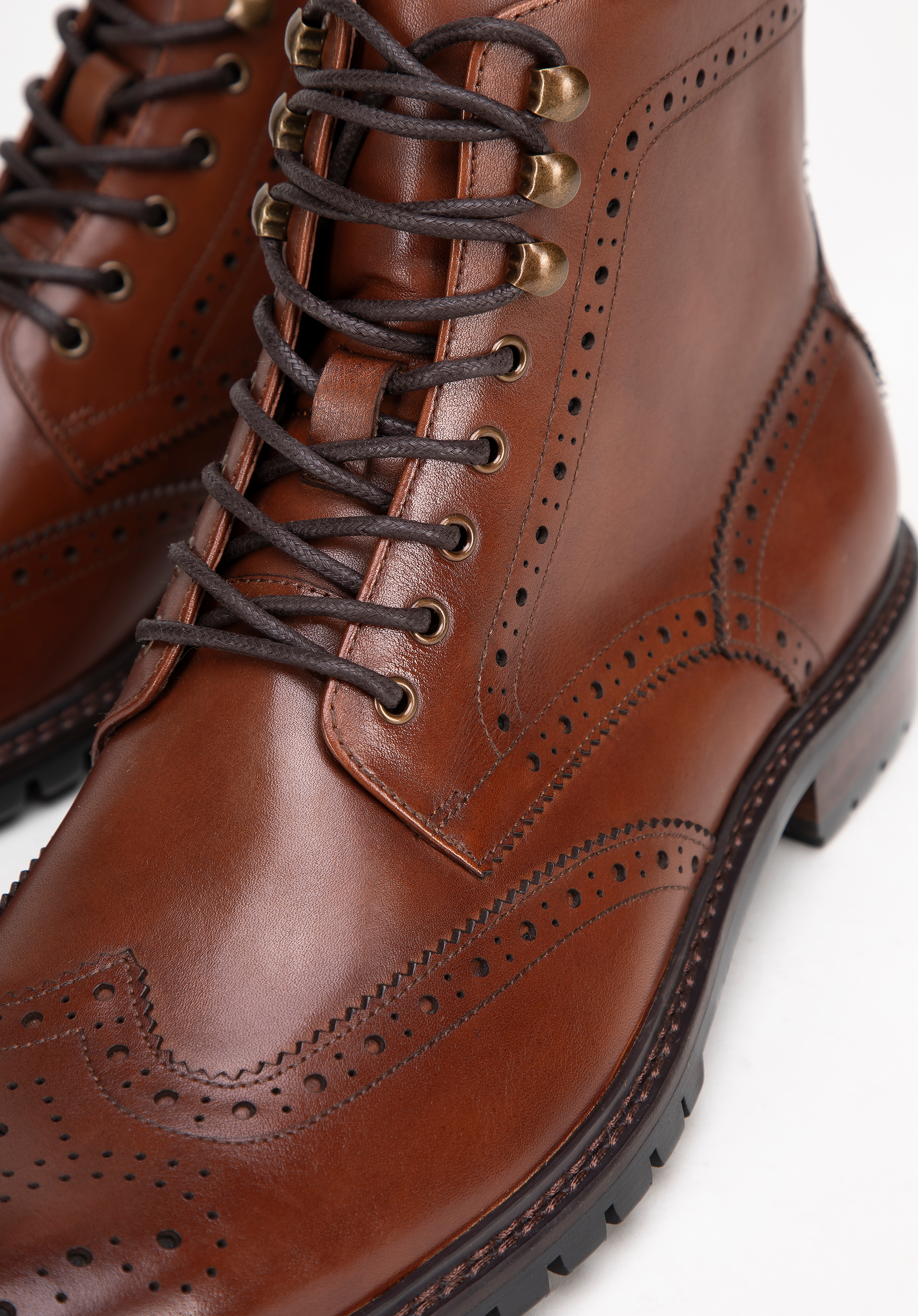Чоловічі перфоровані шкіряні черевики на шнурівці Колір: коричневий