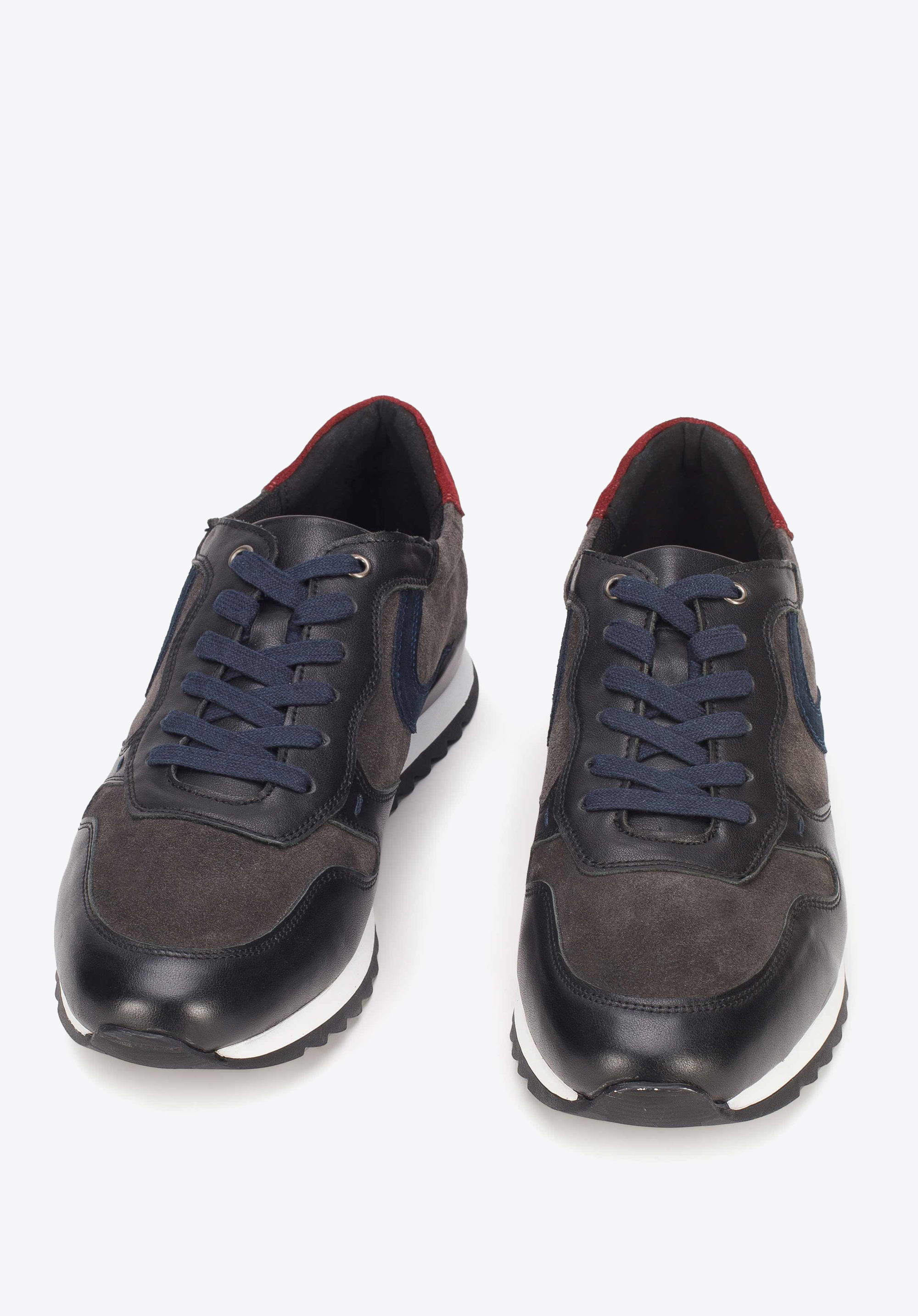Варто мати у своєму гардеробі хоча б одні шкіряні кросівки, які чудово підійдуть для далеких дистанцій, як повсякденних, так і вихідних. Вільний характер взуття доповнять повсякденні комплекти одягу. Ці кросівки виготовлені з двох видів натуральної шкіри: замші та зернистої шкіри, що гарантує комфорт і неповторний вигляд. Вони мають гумову підошву з контрастним поєднанням чорного і білого кольорів. Цікавим акцентом також є вставка іншого кольору на п''яті. Чоловічі різнокольорові шкіряні кросівки темних тонів чудово впишуться в осінню атмосферу.