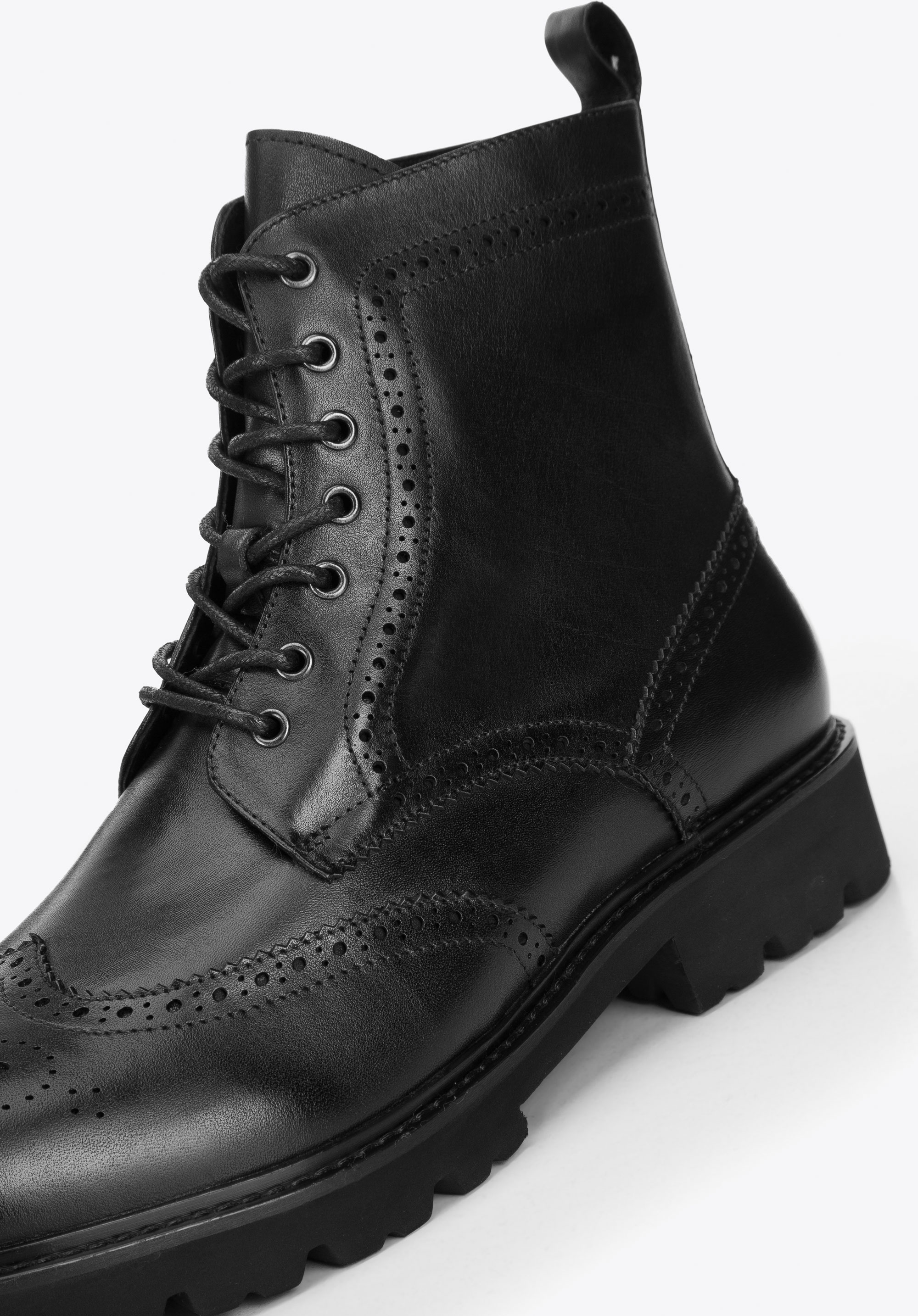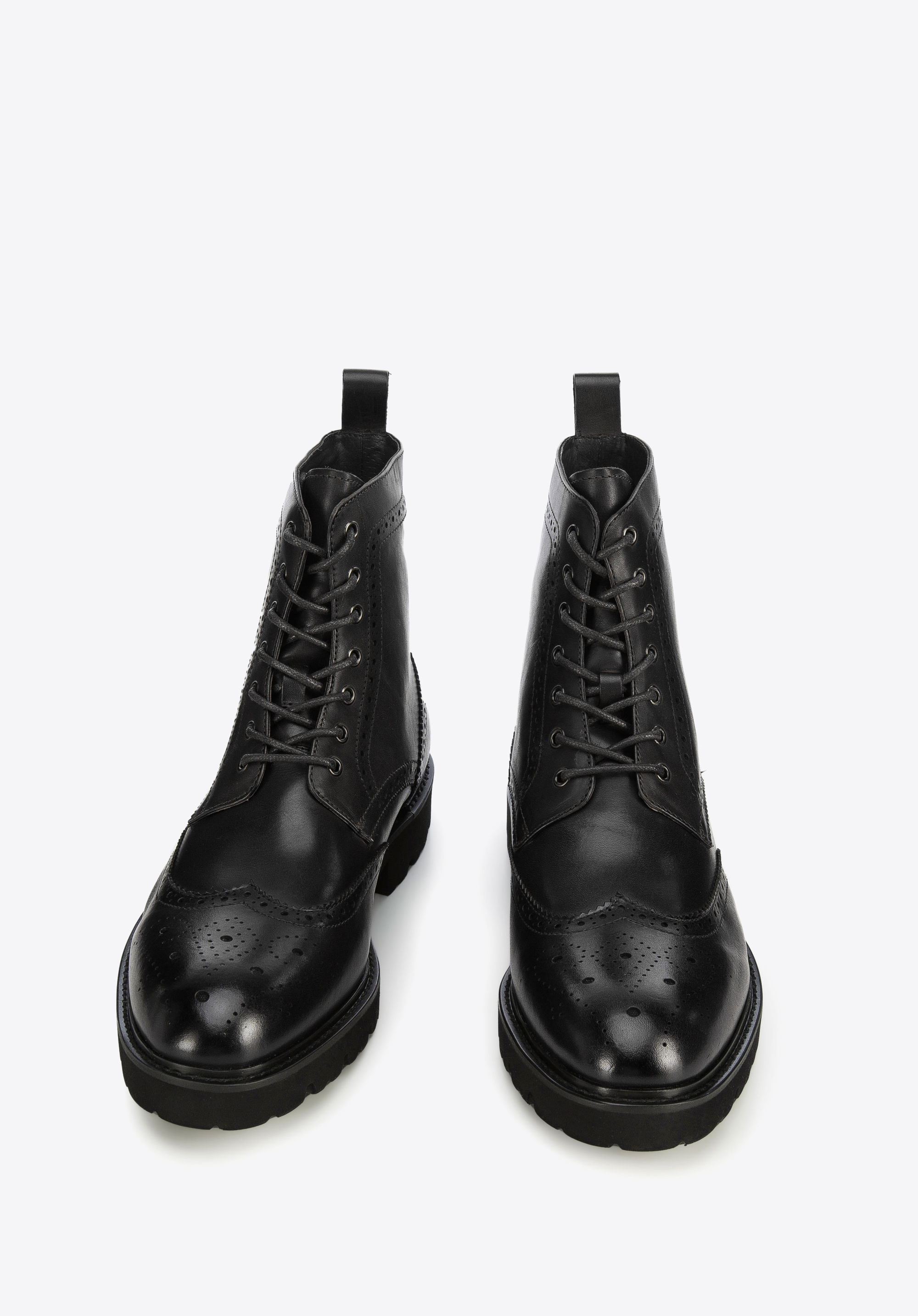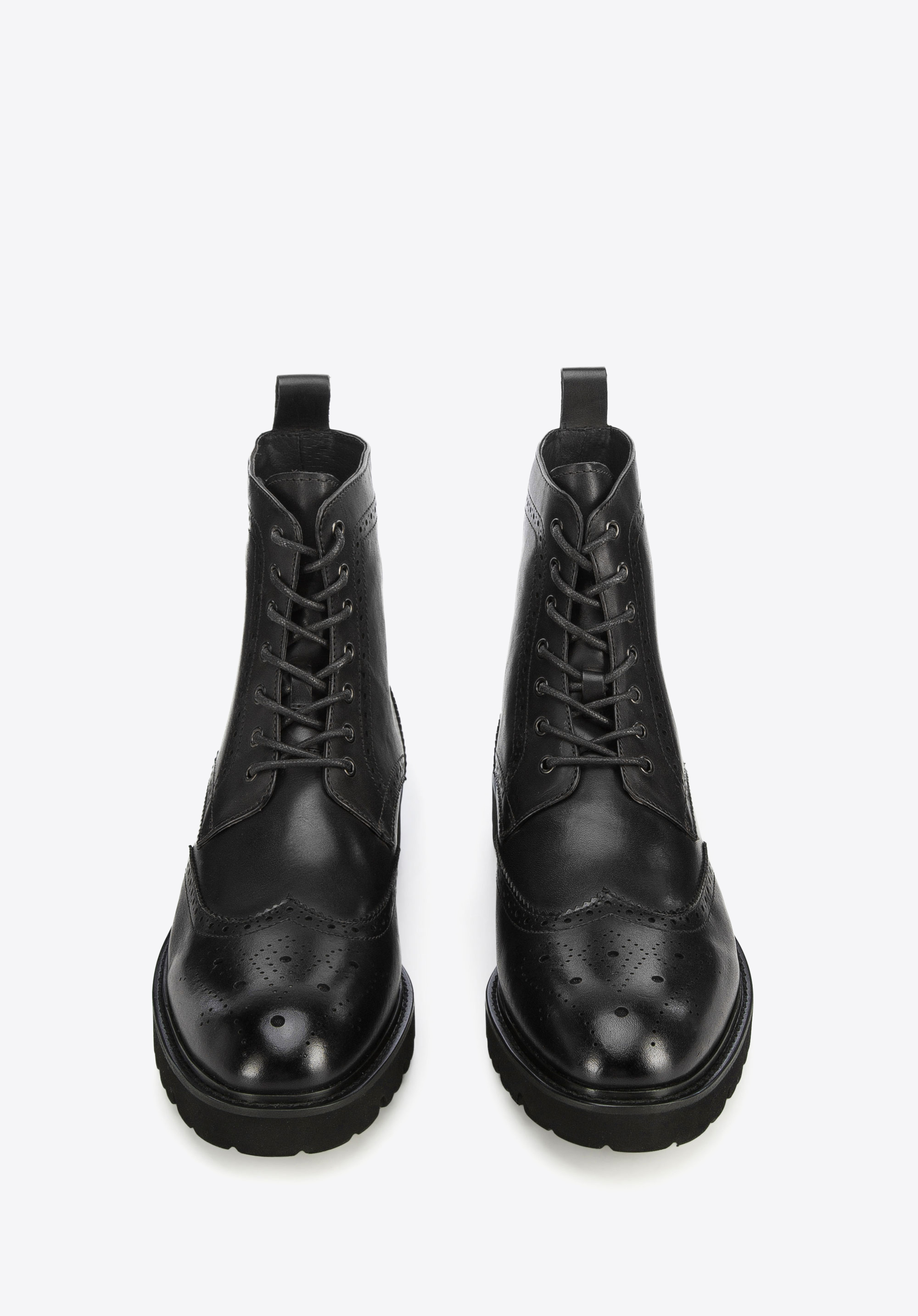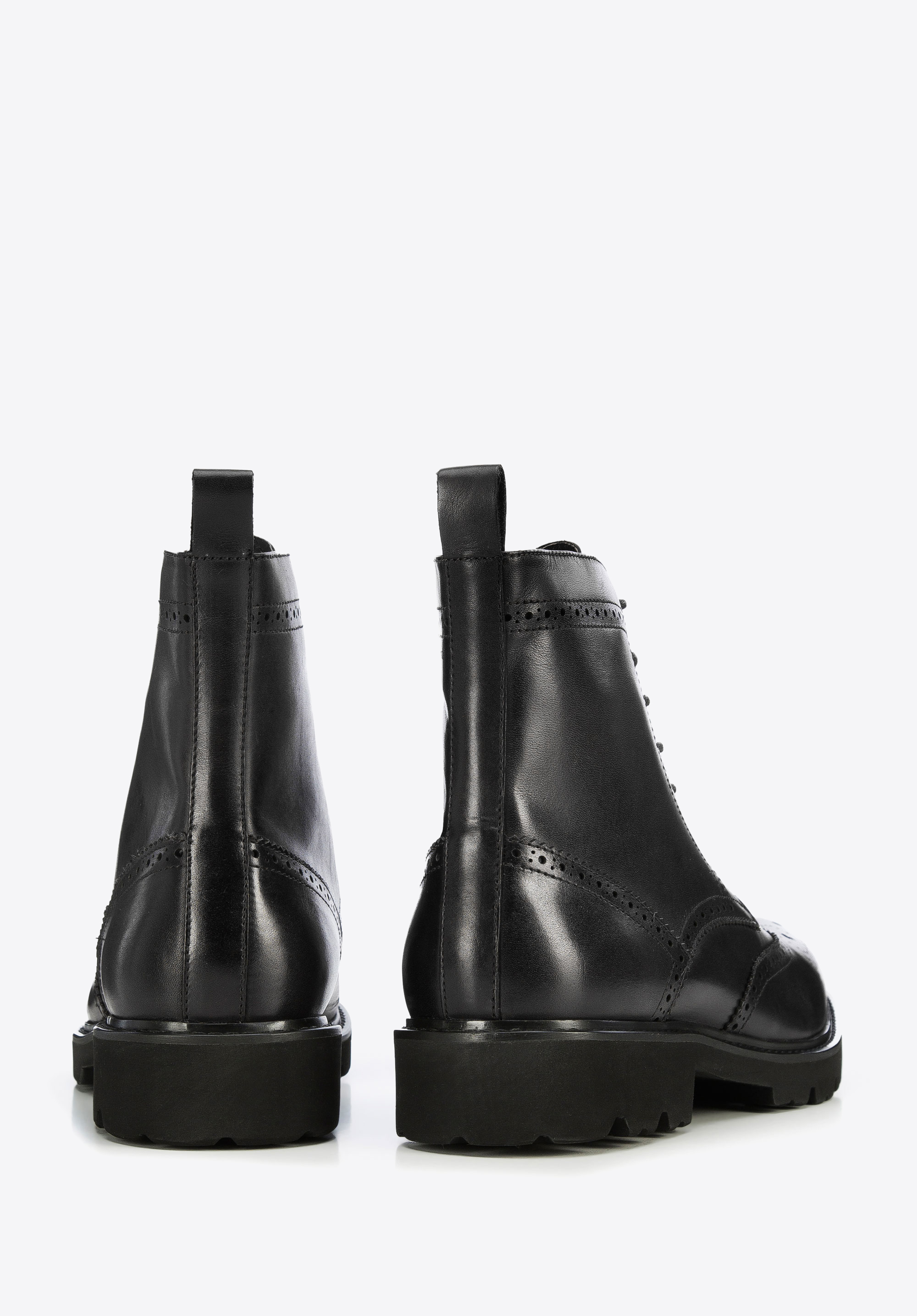 Стильне чоловіче взуття, класичного крою та характеру. Виготовлені з якісної натуральної шкіри з декором, що нагадує туфлі броги. Завдяки товстій підошві з яскраво вираженим протектором в них вам комфортно і стабільно в будь-яку погоду, зберігаючи елегантний стиль. Вони мають додаткові посилення на п''яті та носку, тому ці чоботи прослужать вам багато сезонів. Це чудова модель як до джинсів і косухи, так і до напівофіційного вбрання з сорочкою. Чоловічі шкіряні чоботи з декоративною перфорацією - унікальне доповнення вашого гардеробу на осінньо-зимовий період.