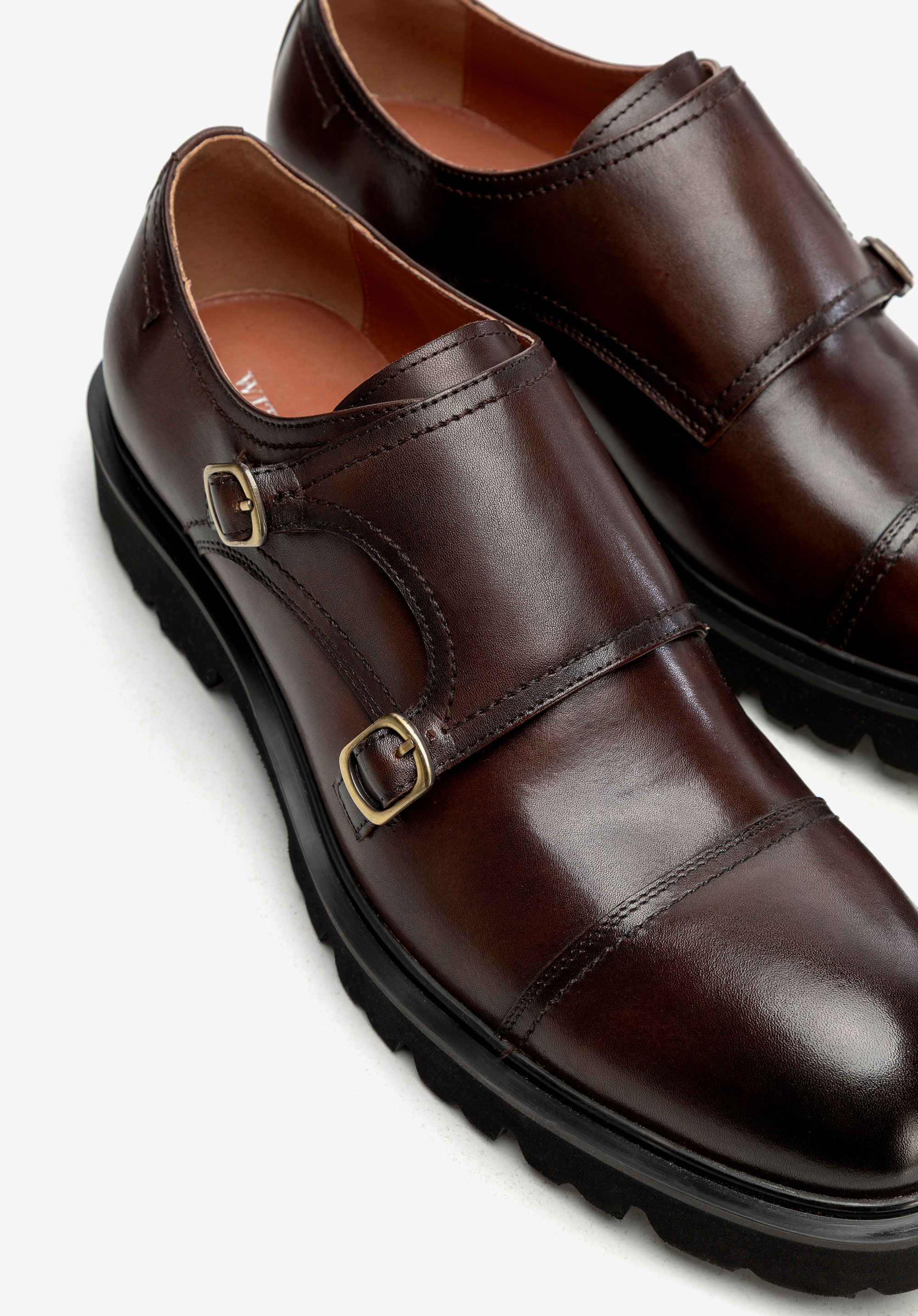 Оберіть позачасову класику з оновленим, сучасним відтінком. Ці чоловічі напівчеревики типу double monk виготовлені з високоякісної натуральної шкіри, що надає їм шляхетного вигляду та підкреслює ретельне оздоблення. Мигдалеподібний носок звужує стопу, а дві металеві застібки на пряжках додають виробу вишуканого характеру.