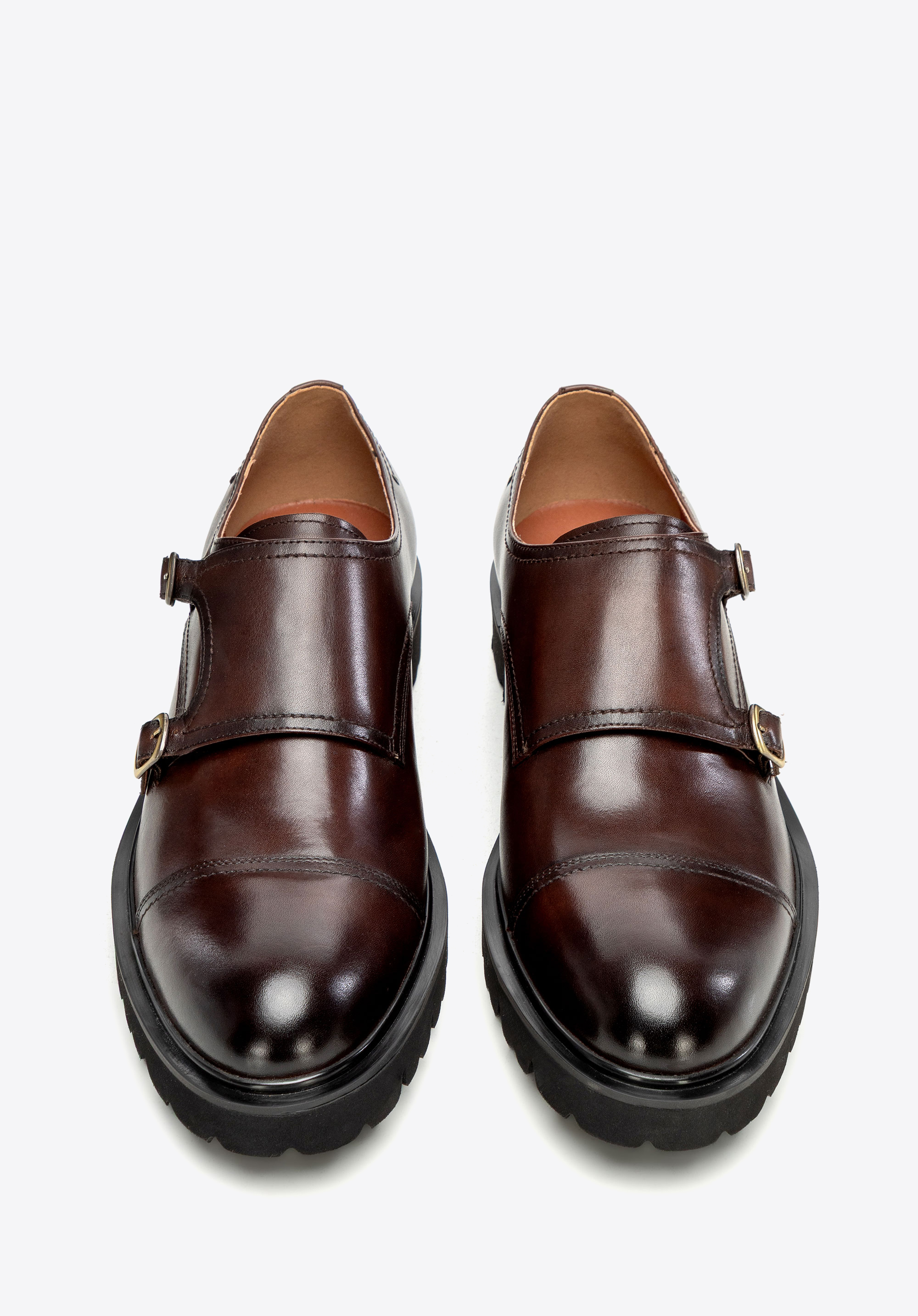 - Подвійна застібка на пряжки: стильна деталь, що виділяє модель серед класичних напівчеревиків.