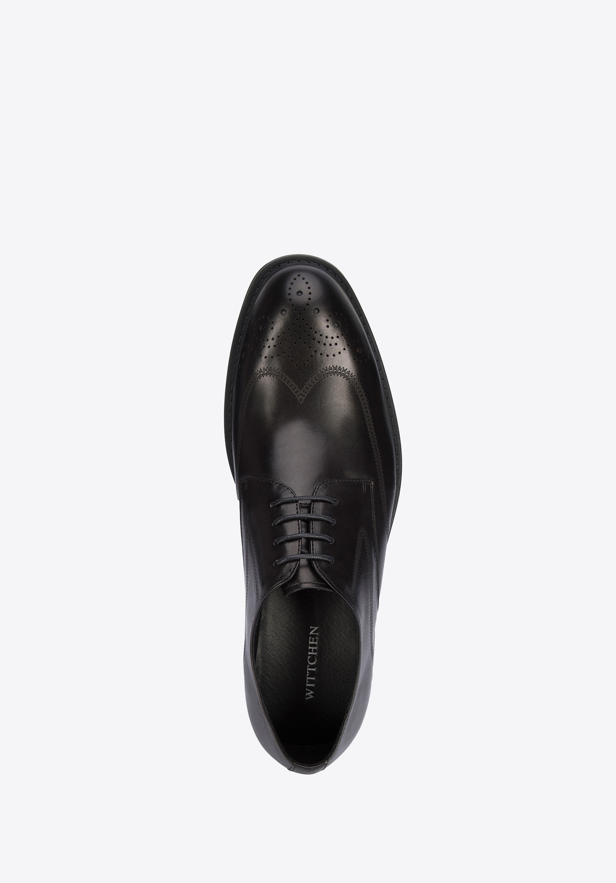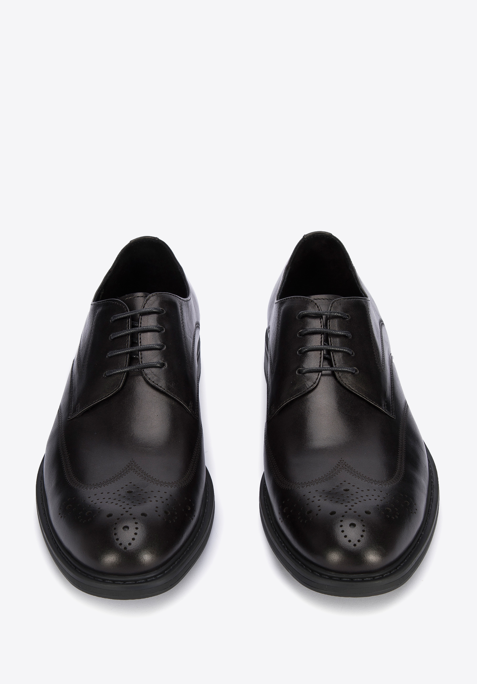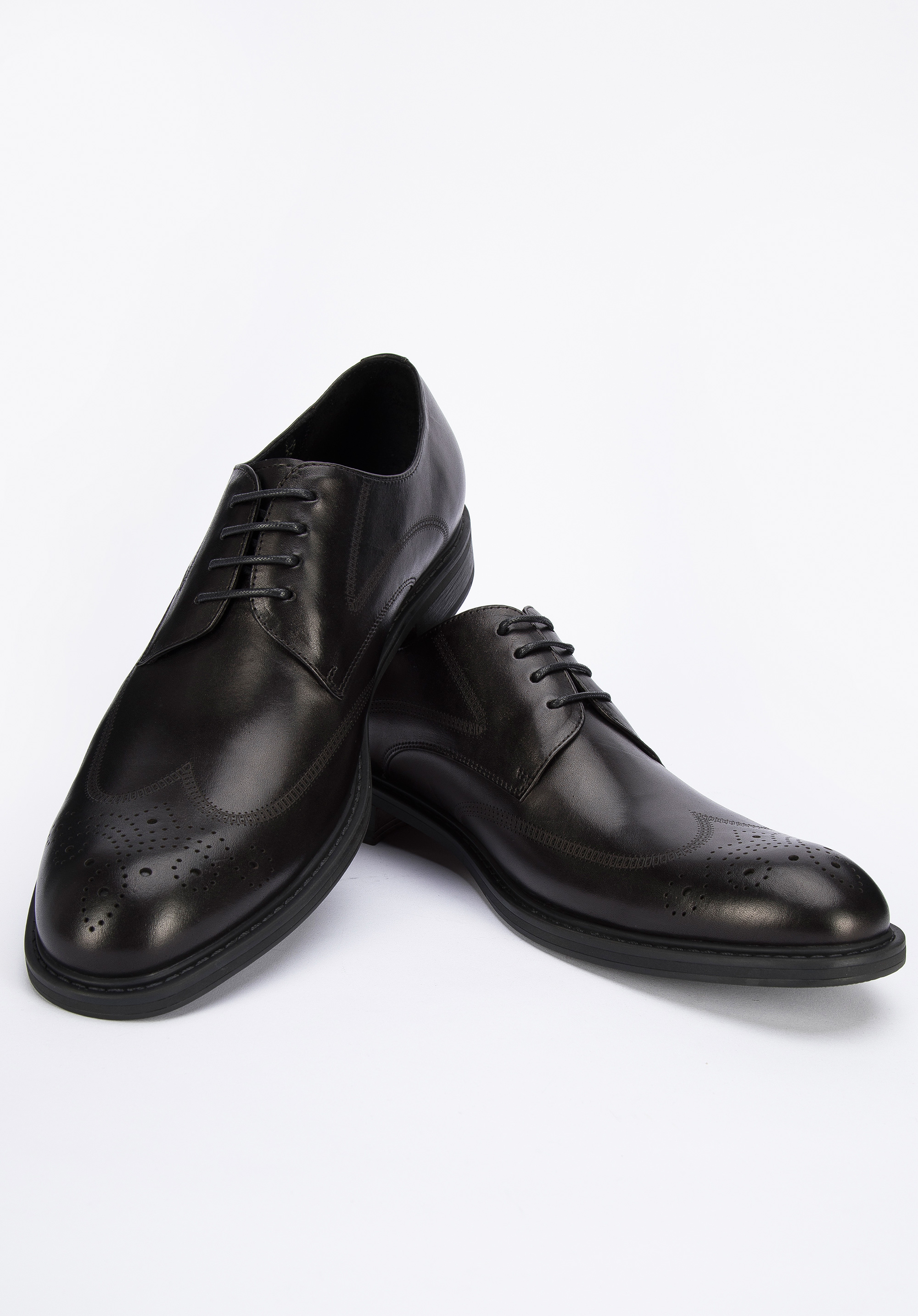 Ця стильна модель - це класика з сучасними відтінками. Виготовлені з високоякісної натуральної шкіри, з плоским швом, обробленим тисненням. Їх доповнює перфорований візерунок на носку взуття. Ви можете носити їх як для елегантних, так і для повсякденних укладок - вони завжди підкреслять ваш стиль. Чоловічі шкіряні туфлі дербі — чудовий вибір для чоловіків, які цінують унікальні та зручні аксесуари.