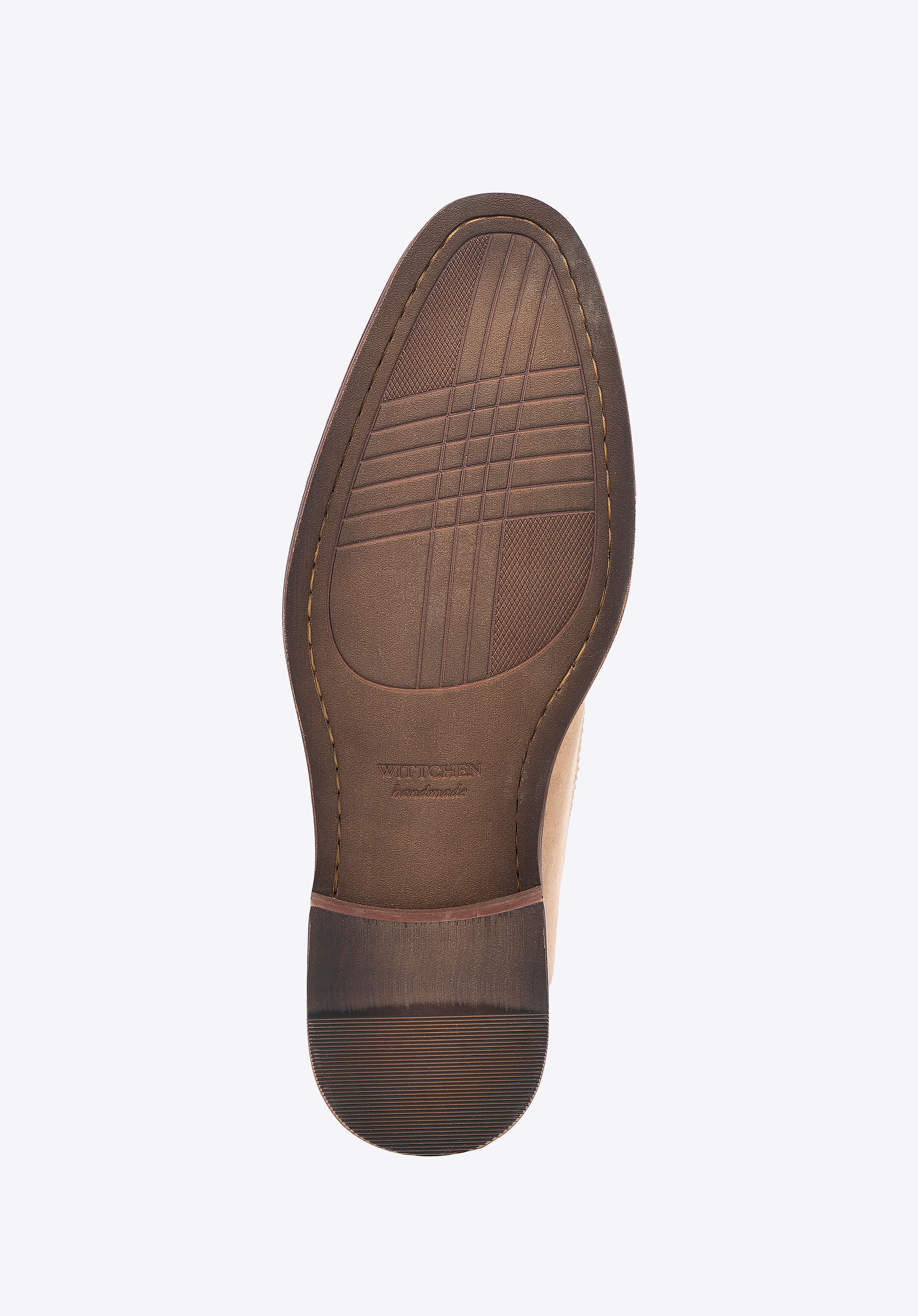 Ці стильні напівчоботи є втіленням елегантності та комфорту. Виготовлені із замшевої шкіри найвищої якості, вони вражають своєю м’якістю, довговічністю та перфорацією, яка додає унікальний штрих. Класичний мигдалеподібний носок і вишукані деталі роблять це взуття неодмінною частиною гардеробу чоловіків, які цінують позачасовий стиль.
