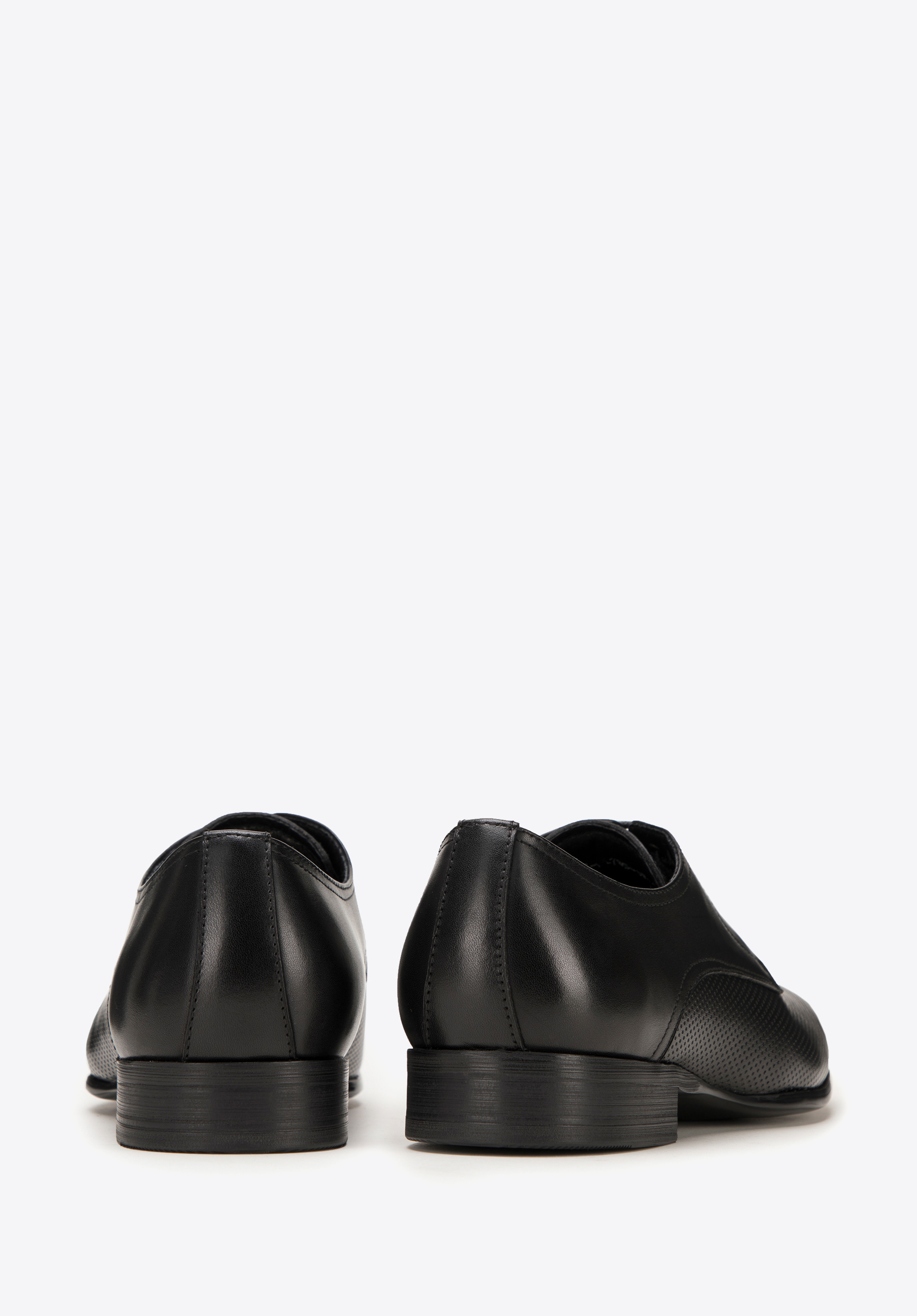 Ця пара чоловічого взуття має бути невід’ємною частиною гардеробу кожного сучасного джентльмена. Витончений дизайн, прикрашений перфорацією, є класикою чоловічого стилю. Ці туфлі стануть модним і універсальним доповненням до багатьох образів - як урочистих, так і нарядних повсякденних. М''''яка устілка забезпечує легку та комфортну ходьбу - навіть протягом дня. Добре профільована підошва і низький стійкий каблук забезпечують впевненість при кожному кроці. М''''яка натуральна шкіра ідеально адаптується до форми стопи.