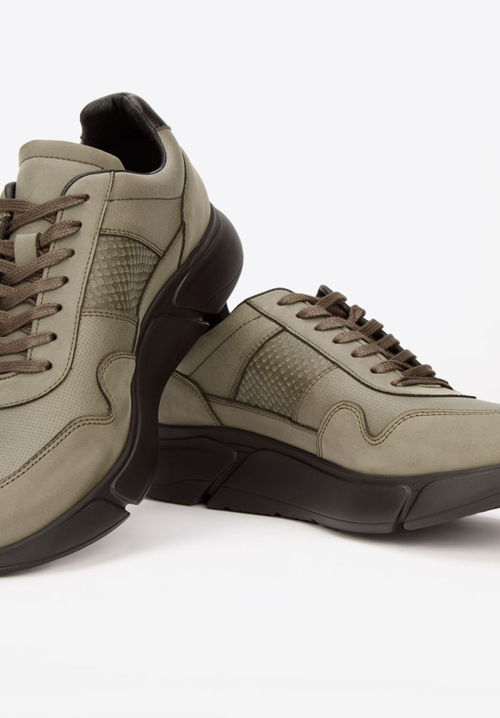 Чоловічі веганські шкіряні кросівки зі вставкою у вигляді lizard хакі