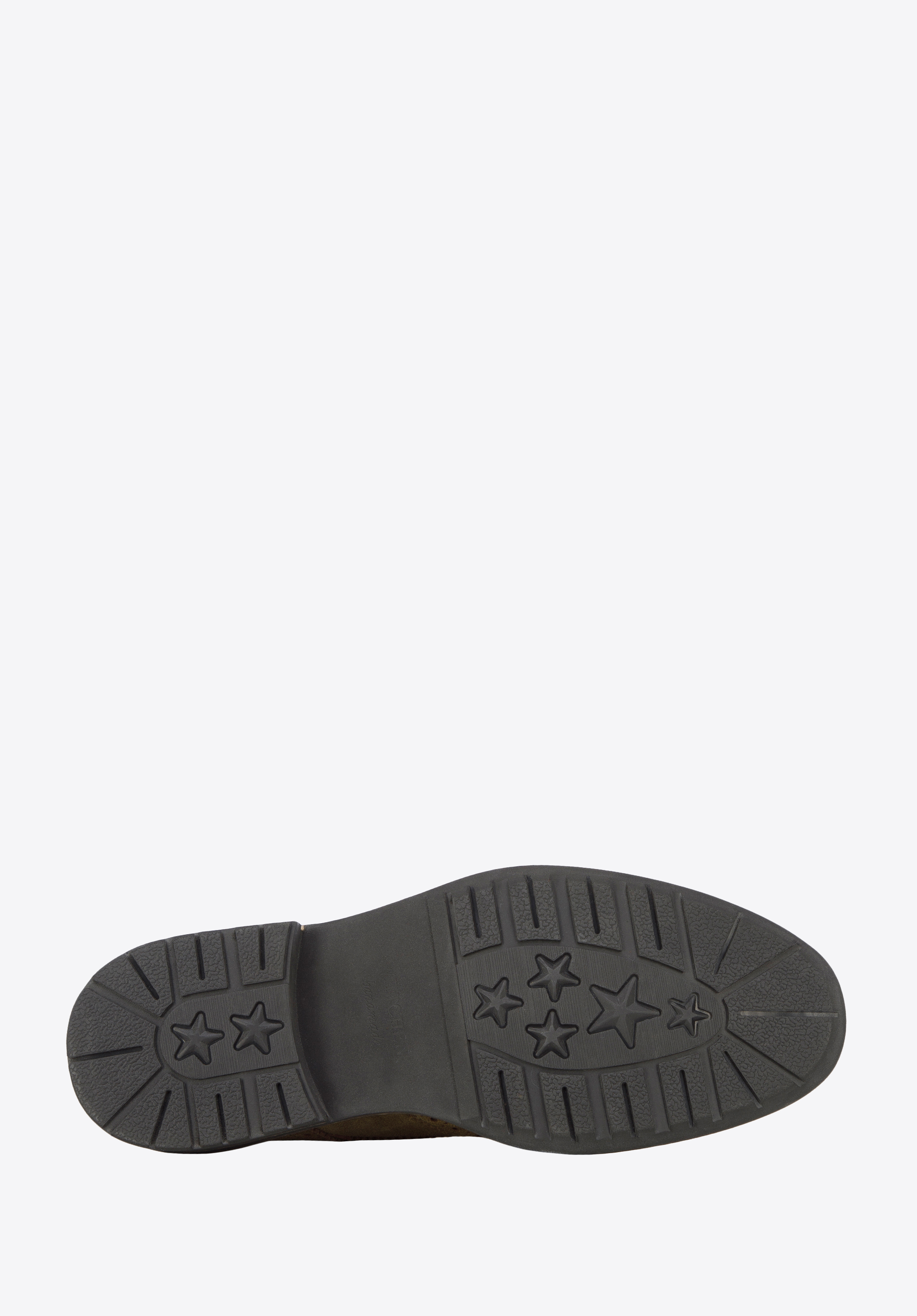 Перш ніж взути взуття вперше, захистіть його відповідними гідроізоляційними засобами, а під час носіння обмежте ії контакт з водою. М''яка замшева шкіра, з якої вони виготовлені, збереже свій чудовий зовнішній вигляд надовго при належному догляді.