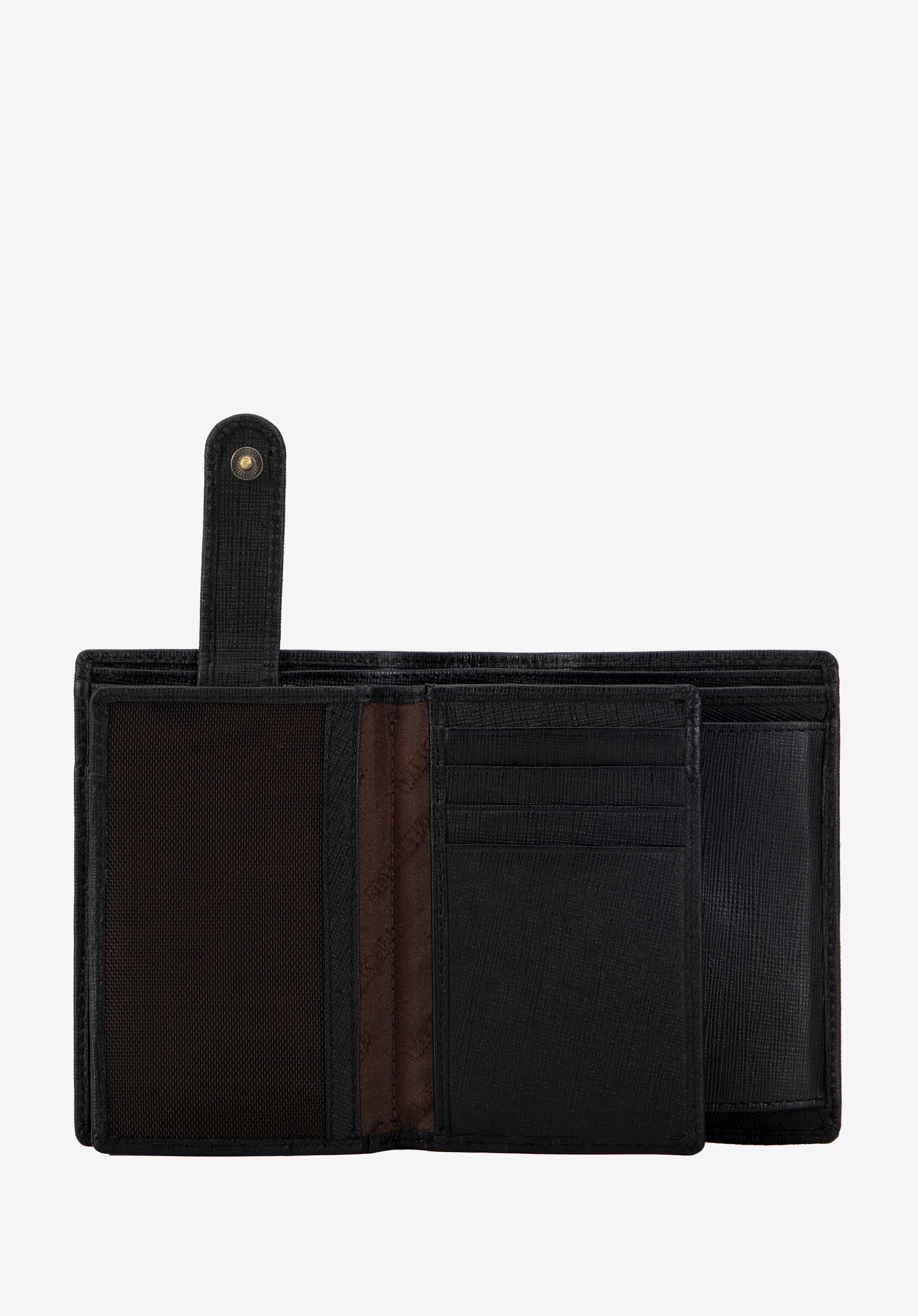 - Матеріал: натуральна шкіра з текстурою саф’яну міцна та стійка до подряпин, гарантуючи, що гаманець збереже свій елегантний вигляд протягом багатьох років.