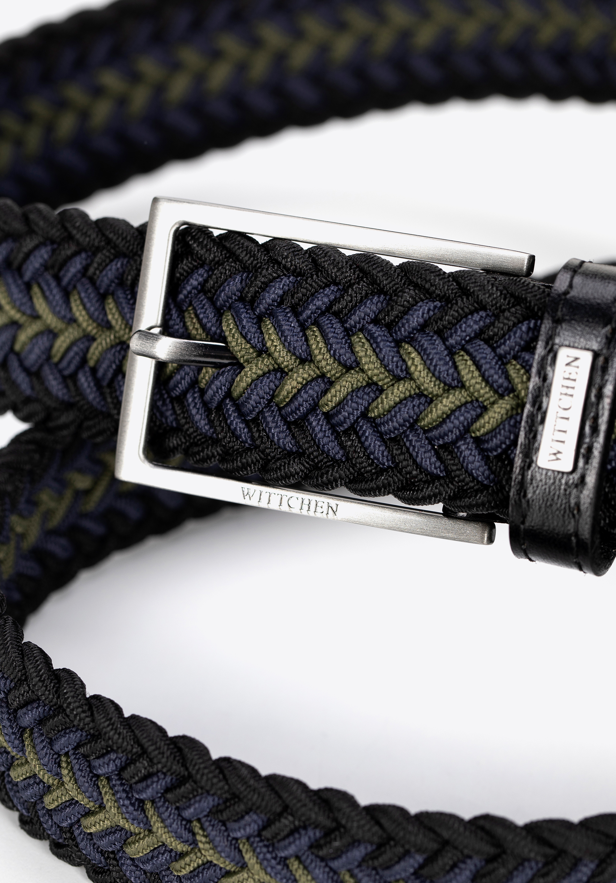 - Шкіряні деталі: Вставки з натуральної шкіри біля пряжки та на кінці ременя додають елегантності та збільшують його довговічність.