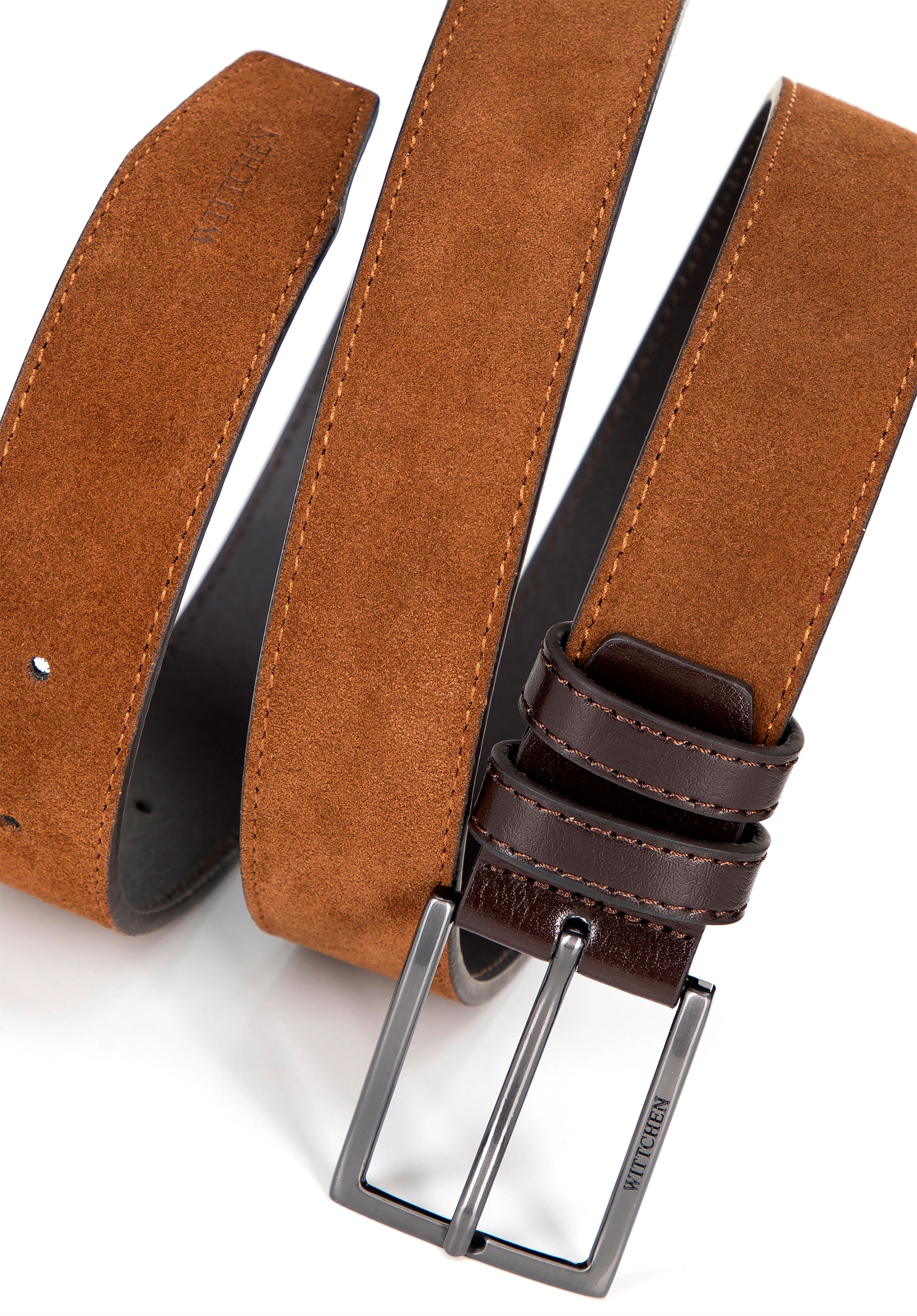 Цей винятковий чоловічий ремінь поєднує позачасовий стиль із сучасними деталями. Виготовлений із високоякісної натуральної шкіри з оксамитовою, замшевою текстурою, він захоплює своєю м''якістю та насиченим кольором, який з часом стає ще більш вишуканим. Металева прямокутна пряжка додає сучасний відтінок, підкреслюючи елегантний, але водночас неординарний характер цілого виробу.
